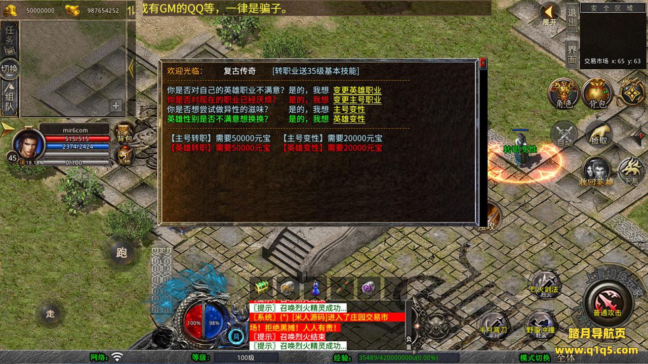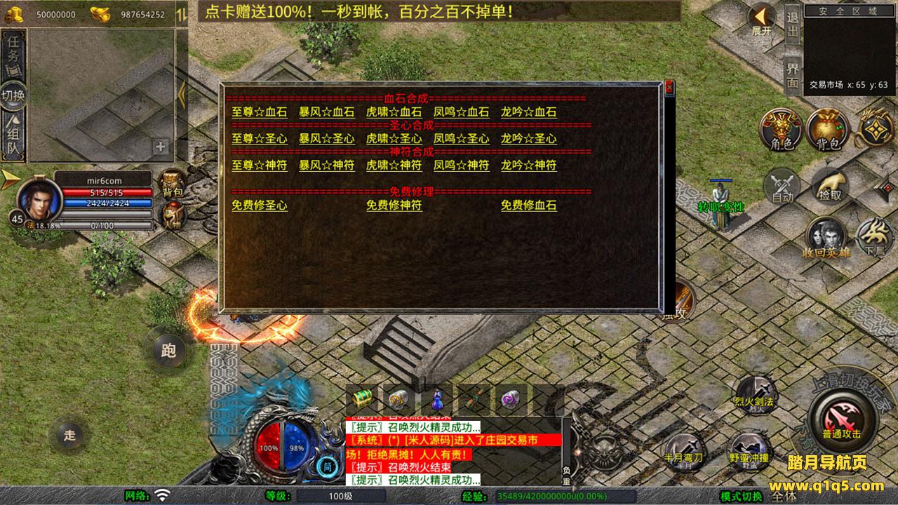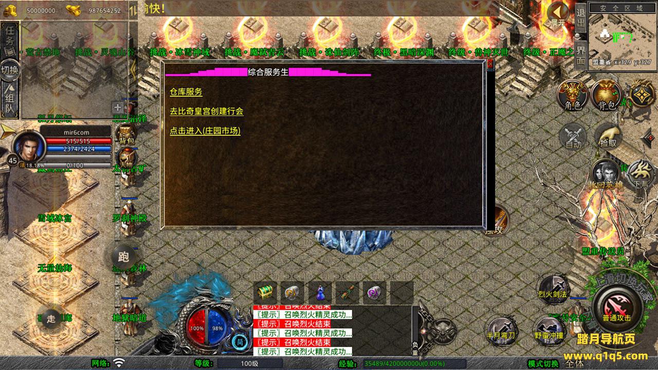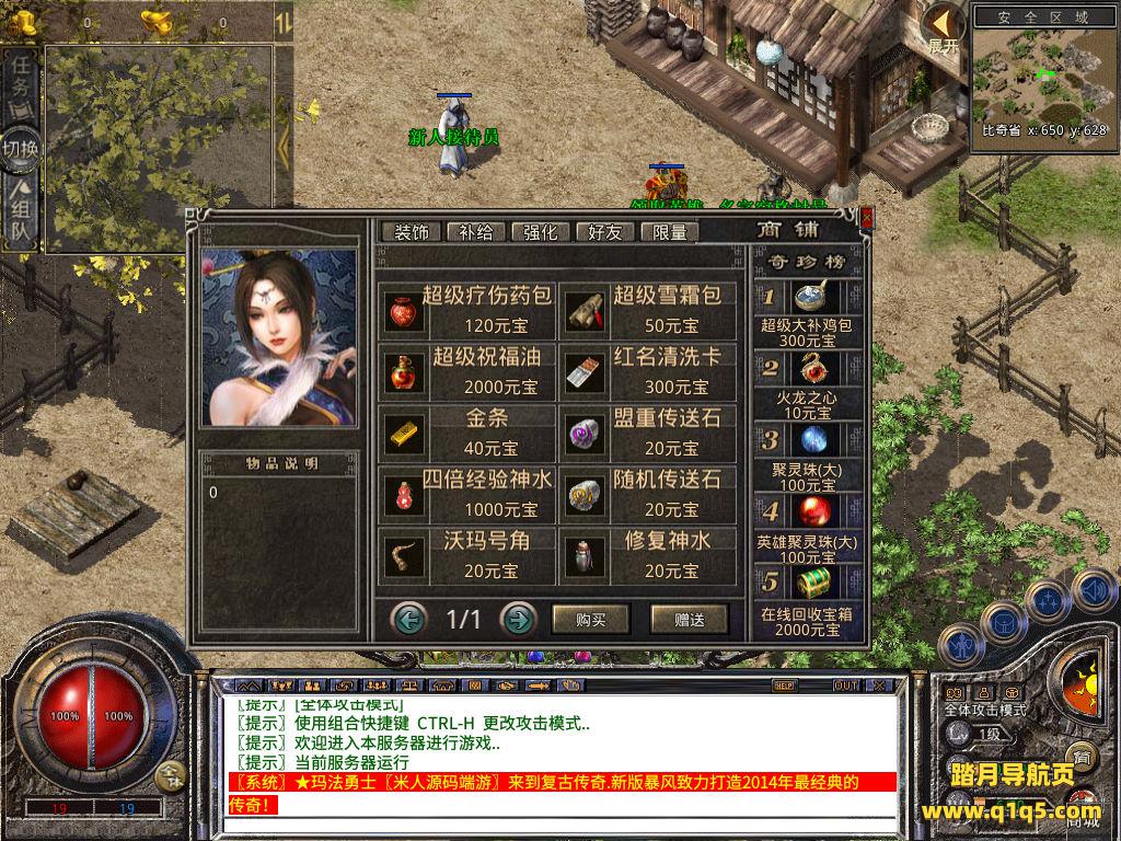 下面我们来测试下游戏里的功能看看吧。好了,其他功能就自行测试吧。更多的游戏资源可以访问www.q1q5.com下载,我们每款游戏资源均单独制作了独立的视频架设教程,让小白也可以快速上手游戏架设,快来体验自己做GM的乐趣吧!