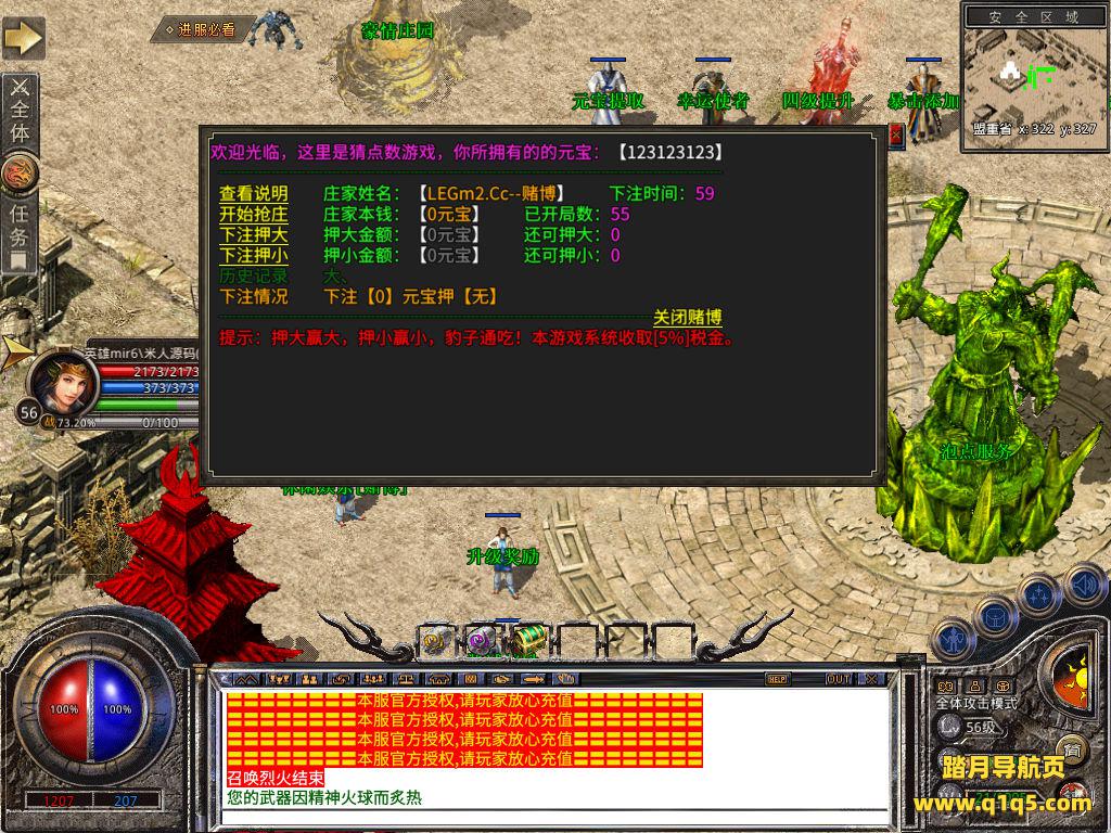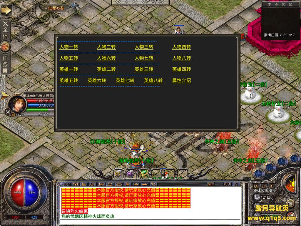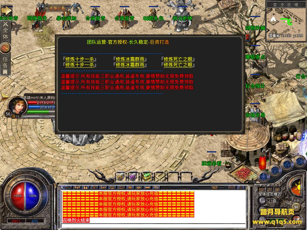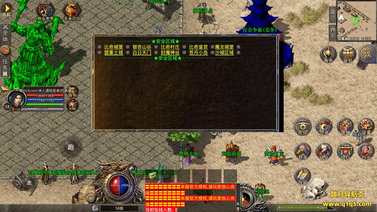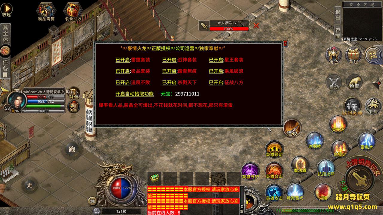 下面我们来测试下游戏里的功能。好了,其他功能就自行测试吧。更多的游戏资源可以访问www.q1q5.com下载,我们每款游戏资源均单独制作了独立的视频架设教程,让小白也可以快速上手游戏架设,快来体验自己做GM的乐趣吧!