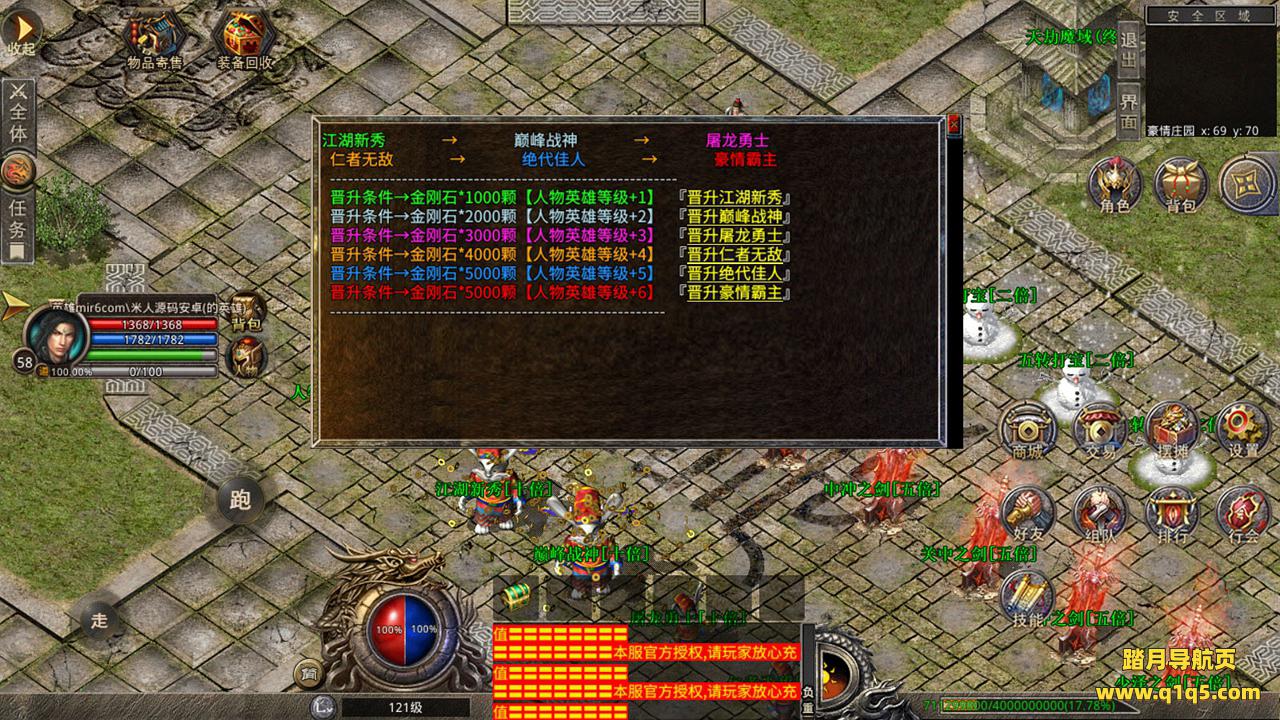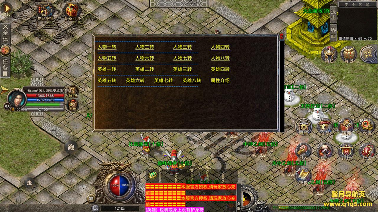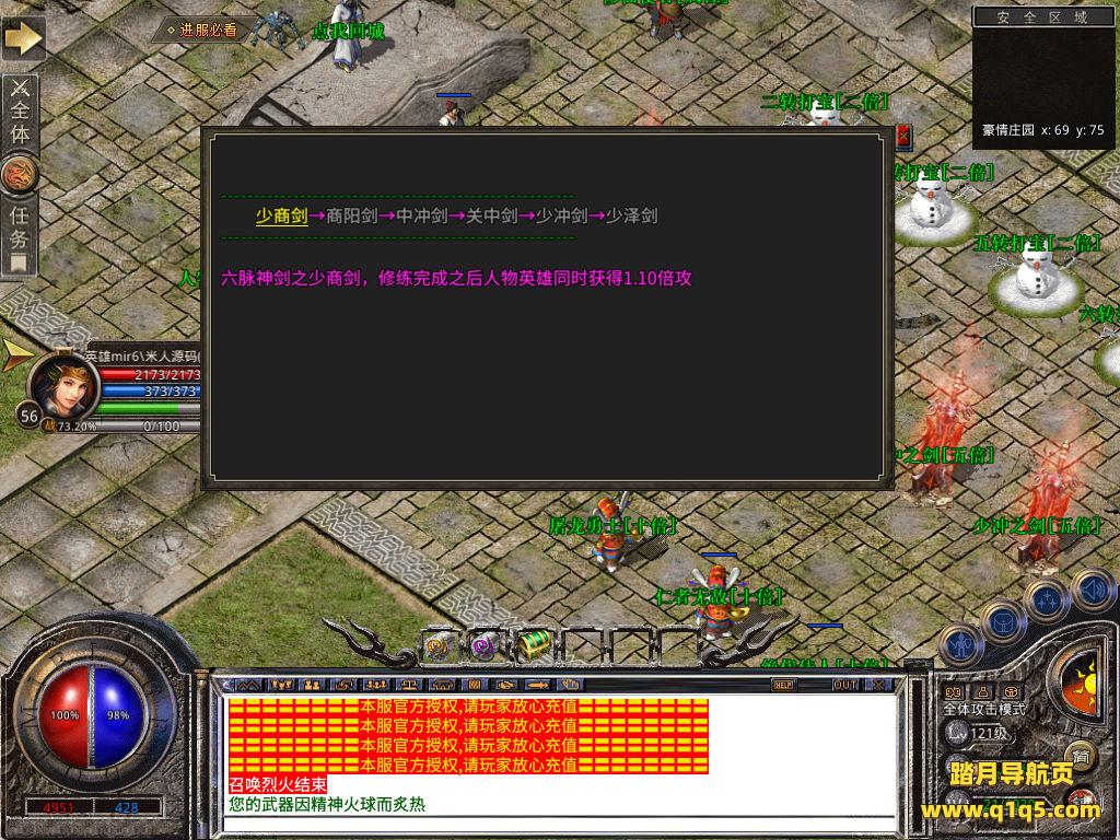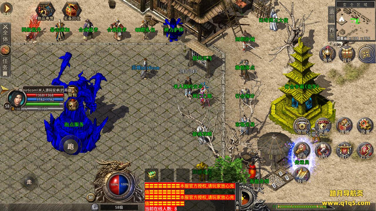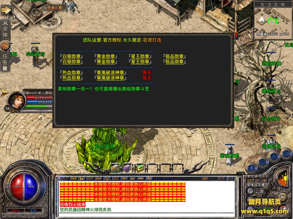 下面我们来测试下游戏里的功能。好了,其他功能就自行测试吧。更多的游戏资源可以访问www.q1q5.com下载,我们每款游戏资源均单独制作了独立的视频架设教程,让小白也可以快速上手游戏架设,快来体验自己做GM的乐趣吧!