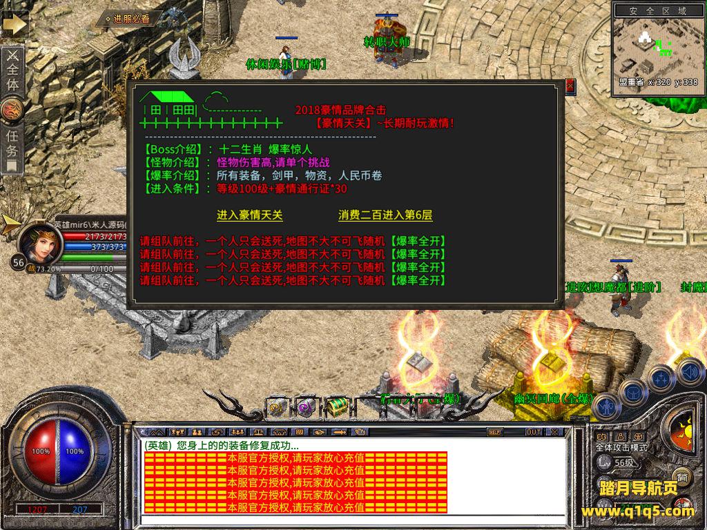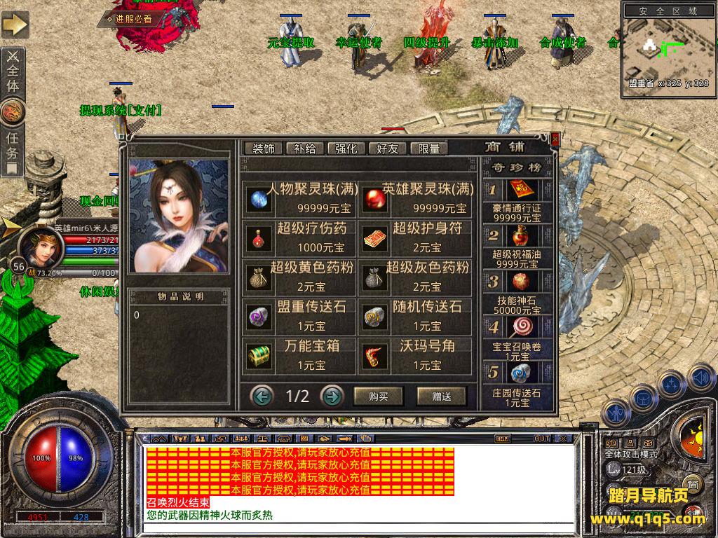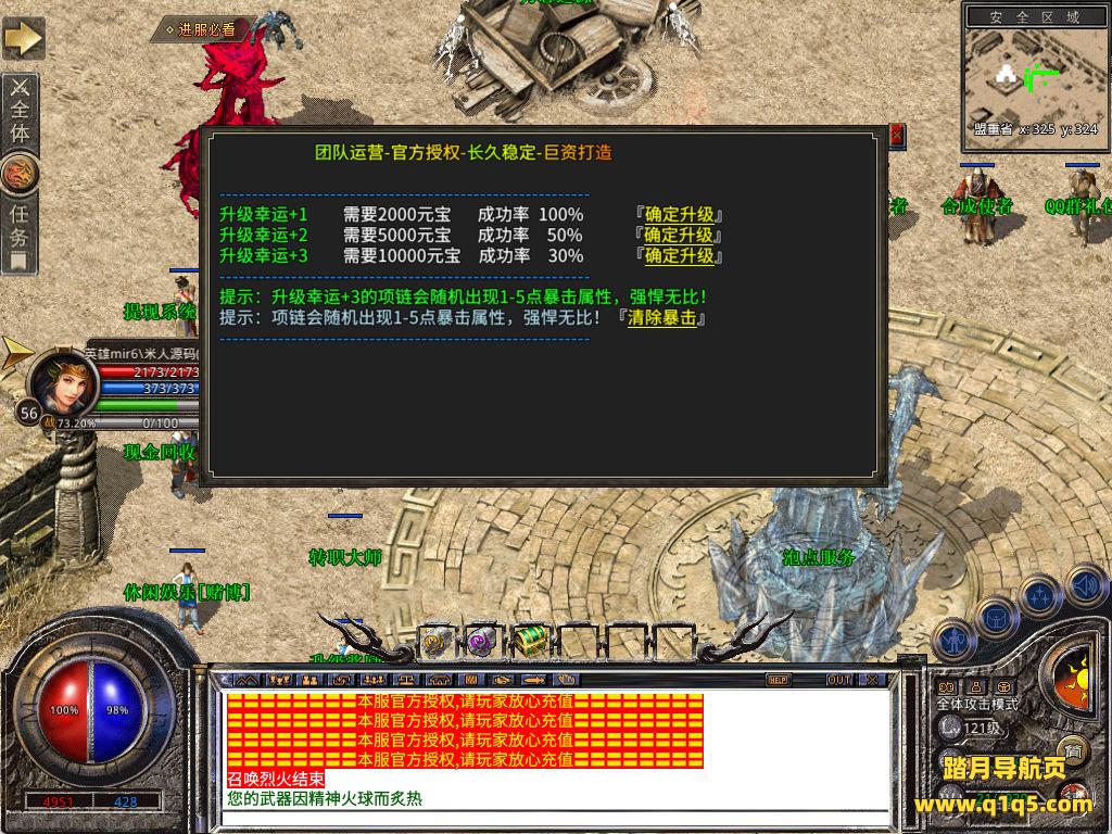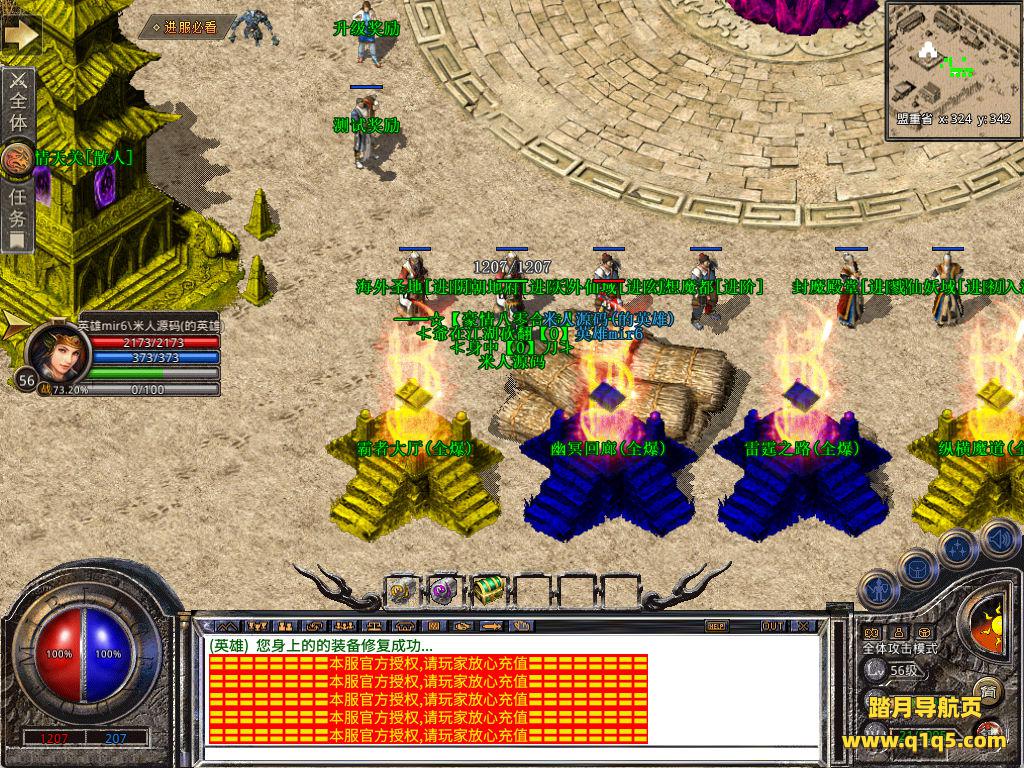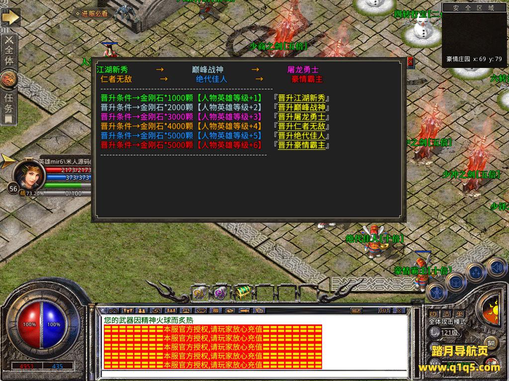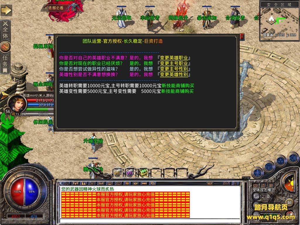 下面我们来测试下游戏里的功能。好了,其他功能就自行测试吧。更多的游戏资源可以访问www.q1q5.com下载,我们每款游戏资源均单独制作了独立的视频架设教程,让小白也可以快速上手游戏架设,快来体验自己做GM的乐趣吧!