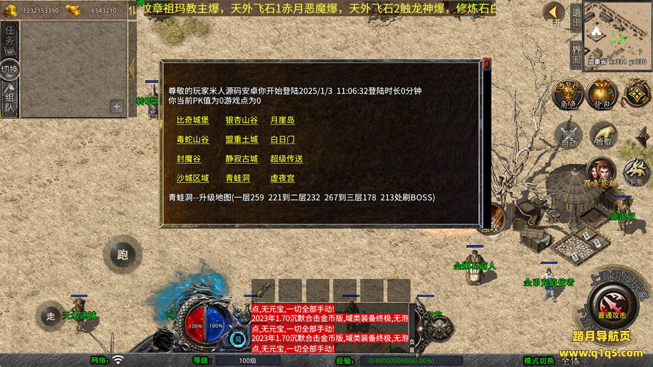 下面我们去测试下游戏里的功能吧。好了,其他功能就自行测试吧。更多的游戏资源可以访问www.q1q5.com下载我们每款游戏资源均单独制作了独立的视频架设教程,让小白也可以快速上手游戏架设,快来体验自己做GM的乐趣吧!