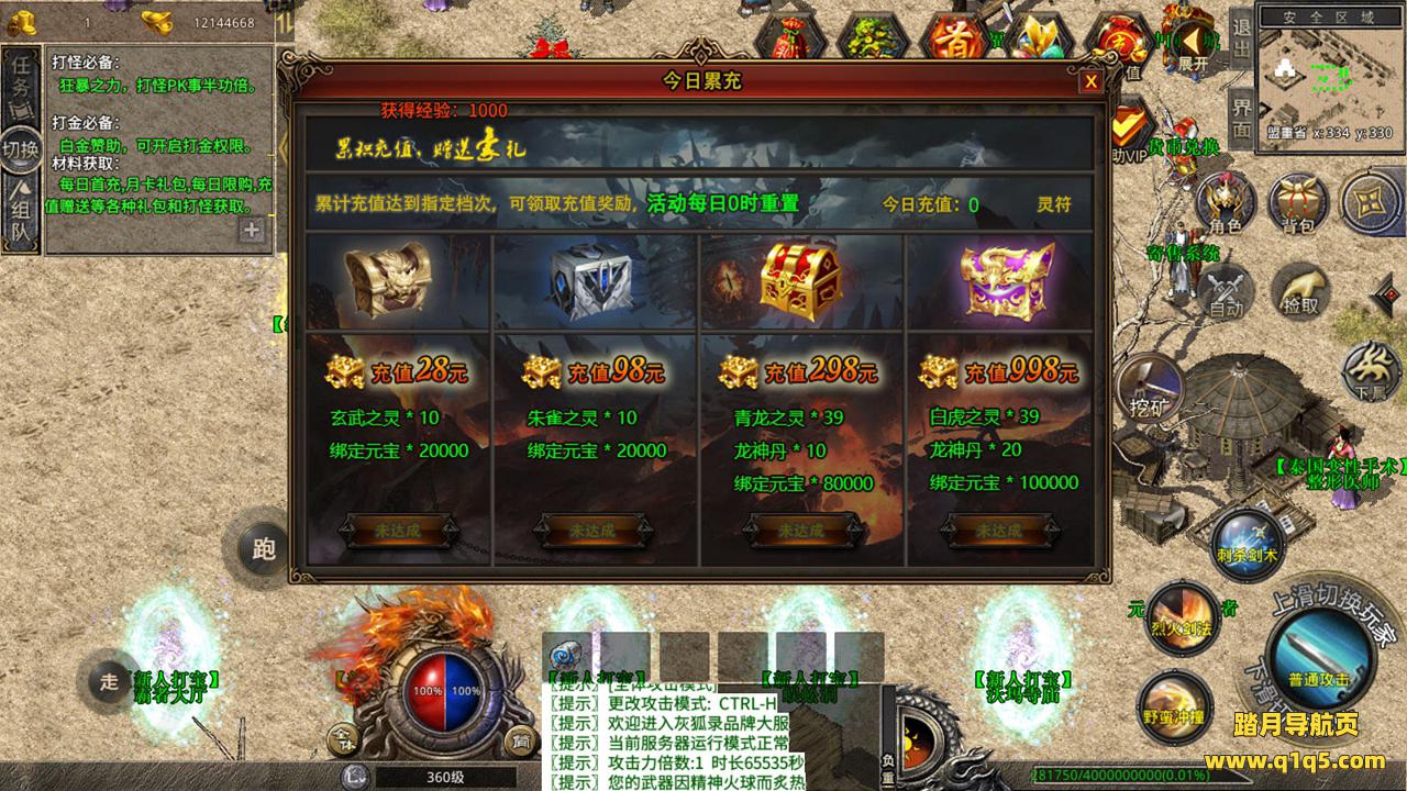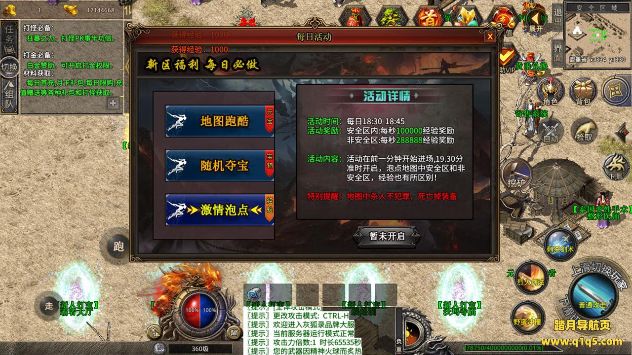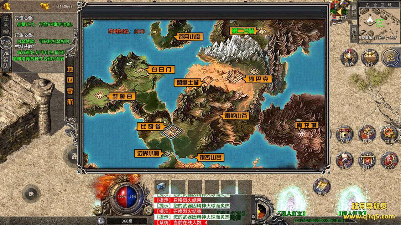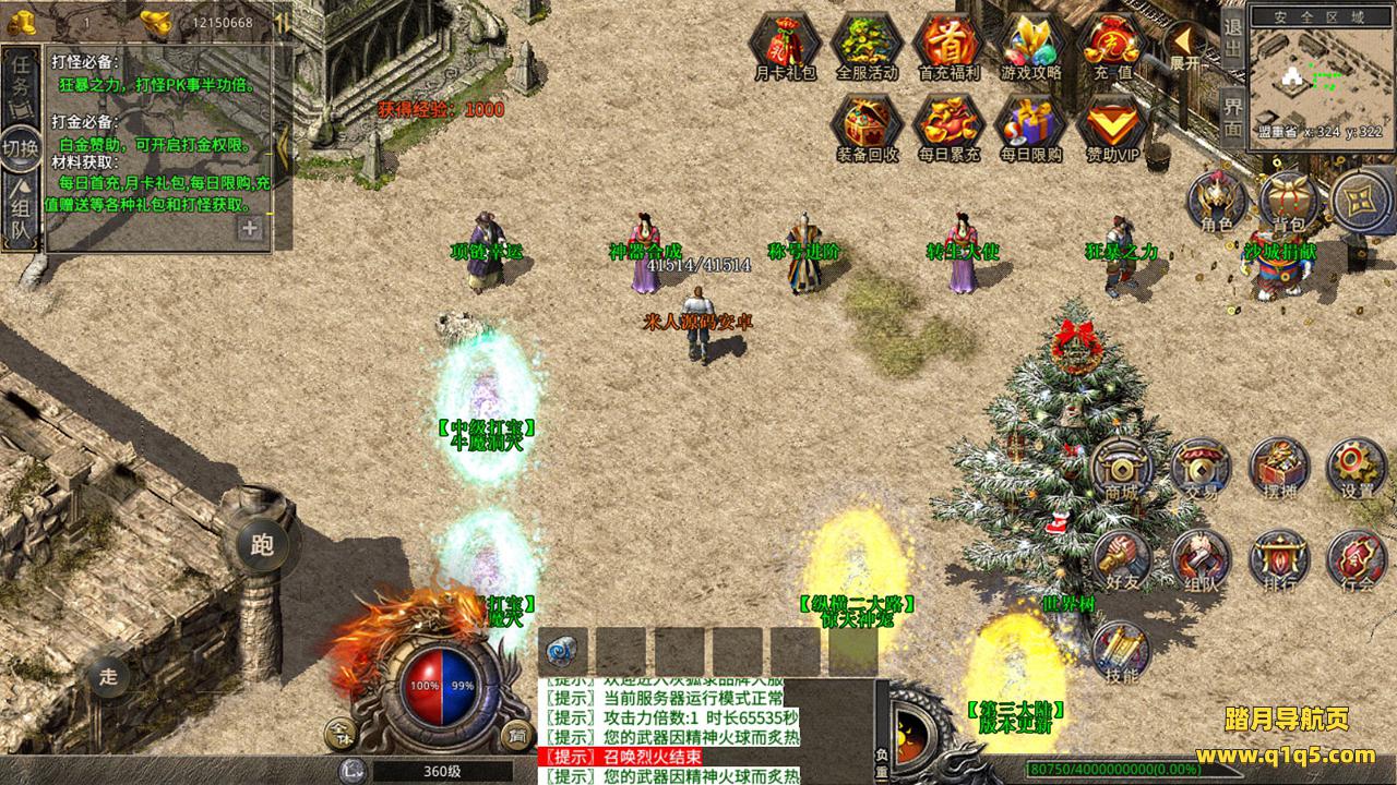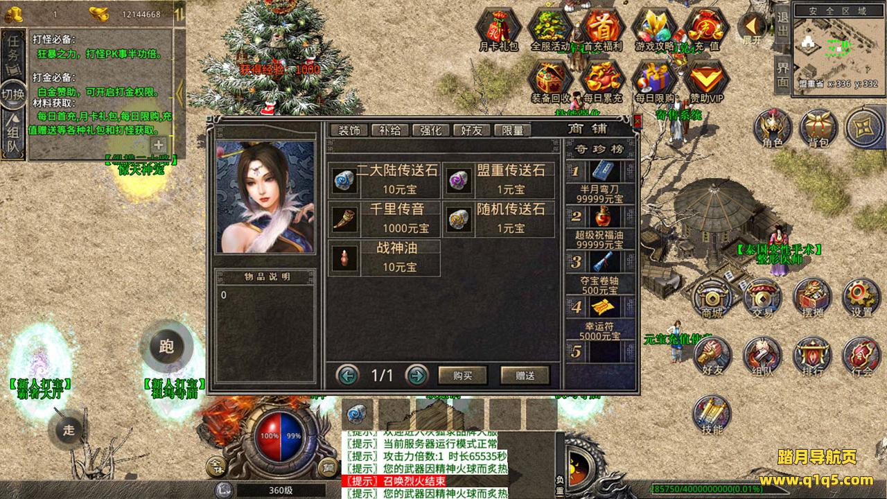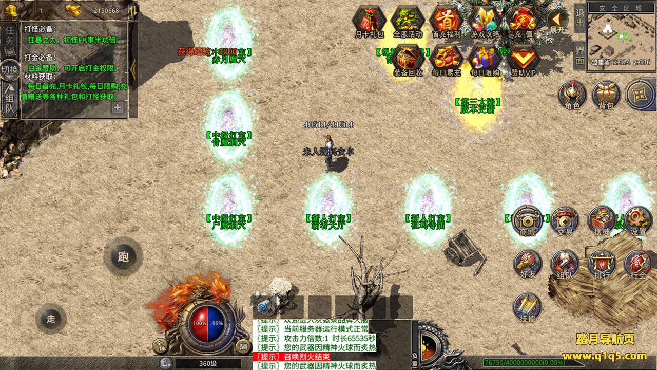 下面我们来测试下游戏里的功能吧。好了,其他功能就自行测试吧。更多的游戏资源可以访问www.q1q5.com下载,我们每款游戏资源均单独制作了独立的视频架设教程,让小白也可以快速上手游戏架设,快来体验自己做GM的乐趣吧!