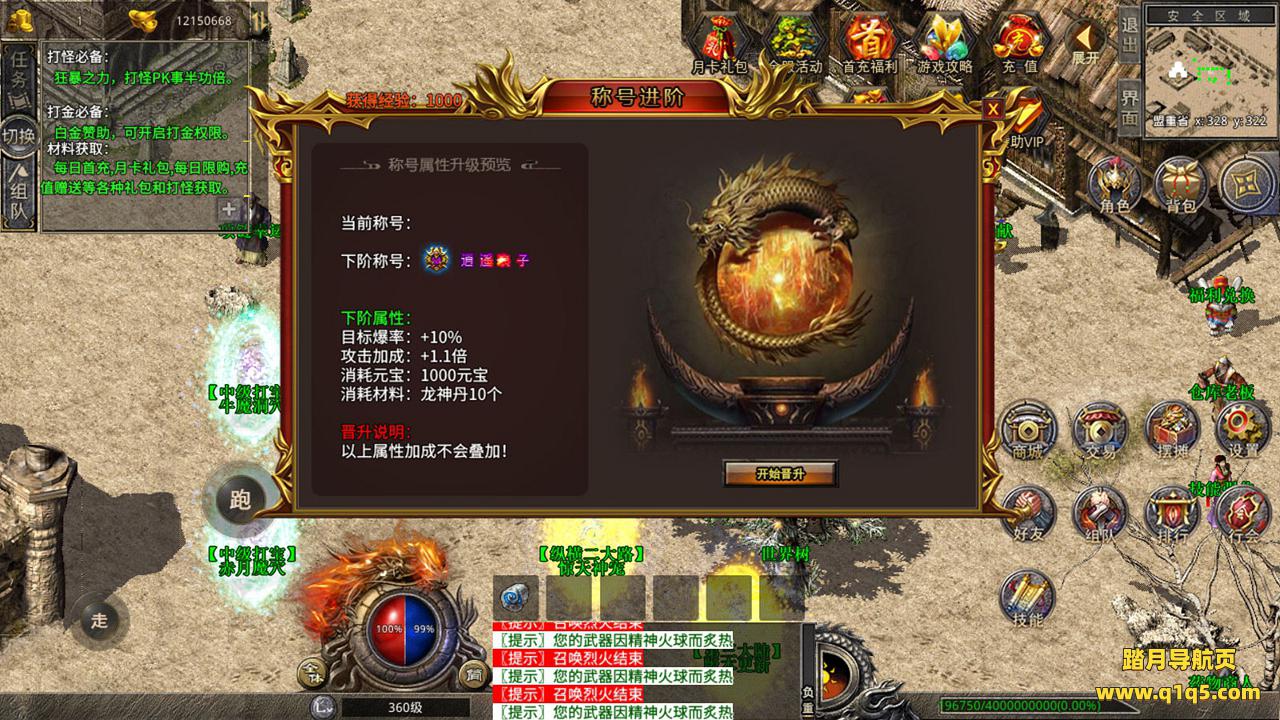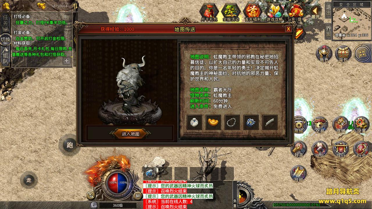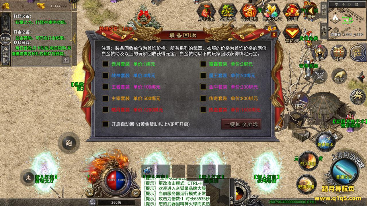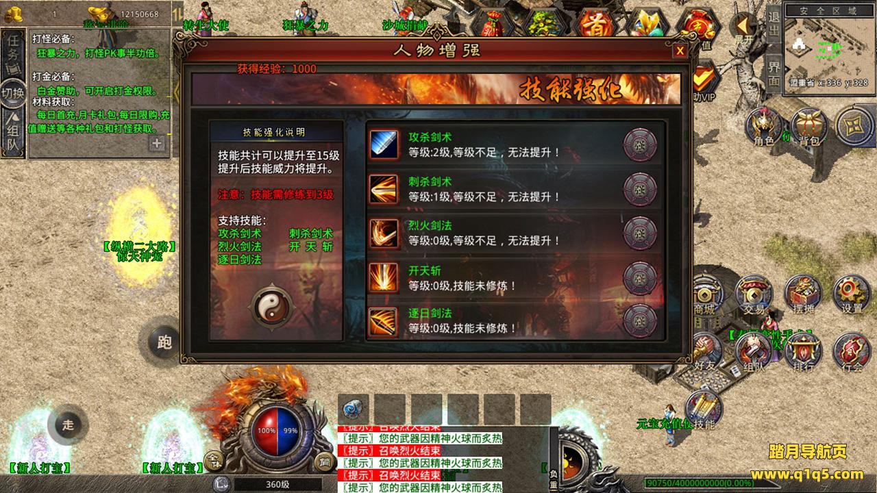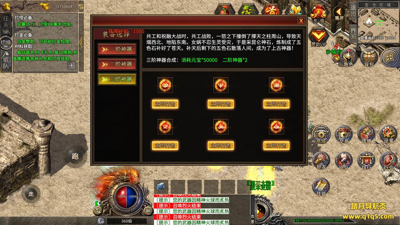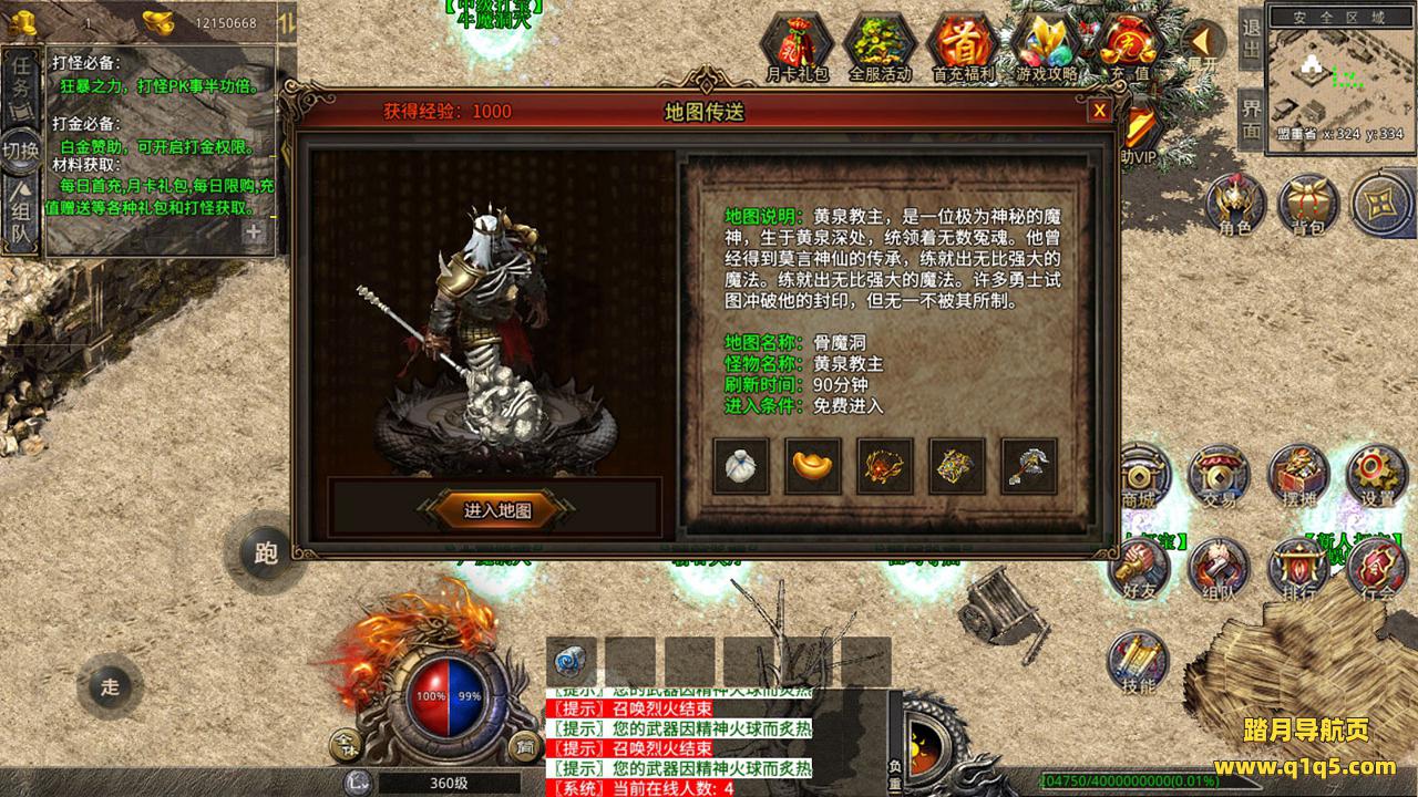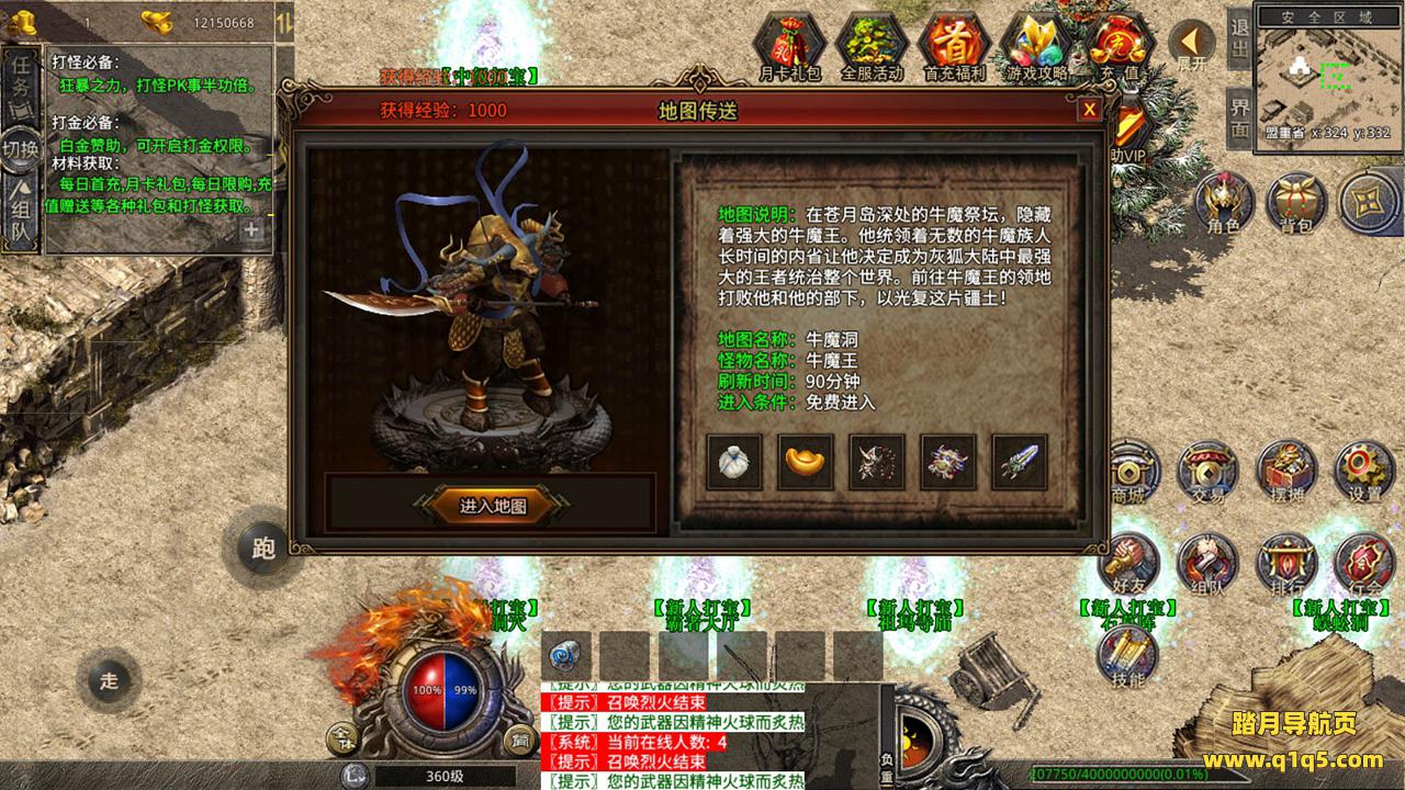 下面我们来测试下游戏里的功能吧。好了,其他功能就自行测试吧。更多的游戏资源可以访问www.q1q5.com下载,我们每款游戏资源均单独制作了独立的视频架设教程,让小白也可以快速上手游戏架设,快来体验自己做GM的乐趣吧!