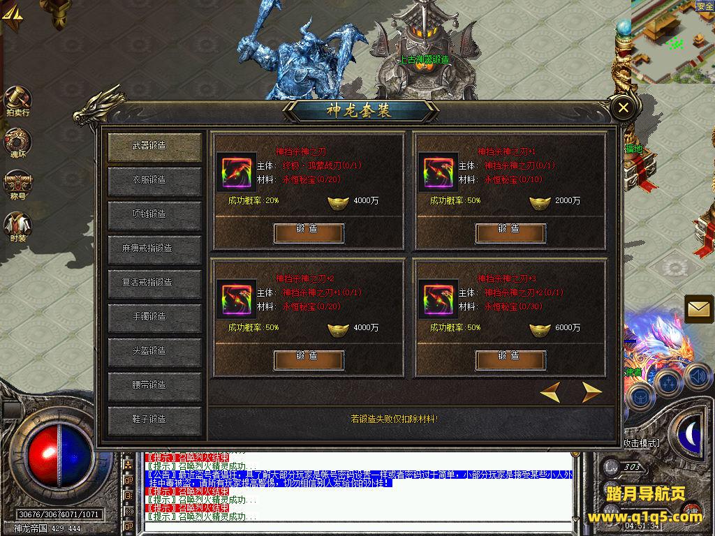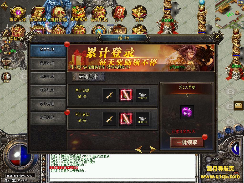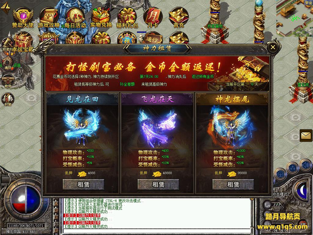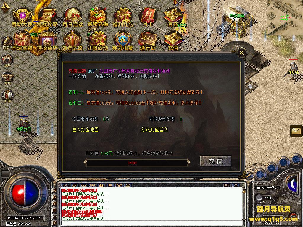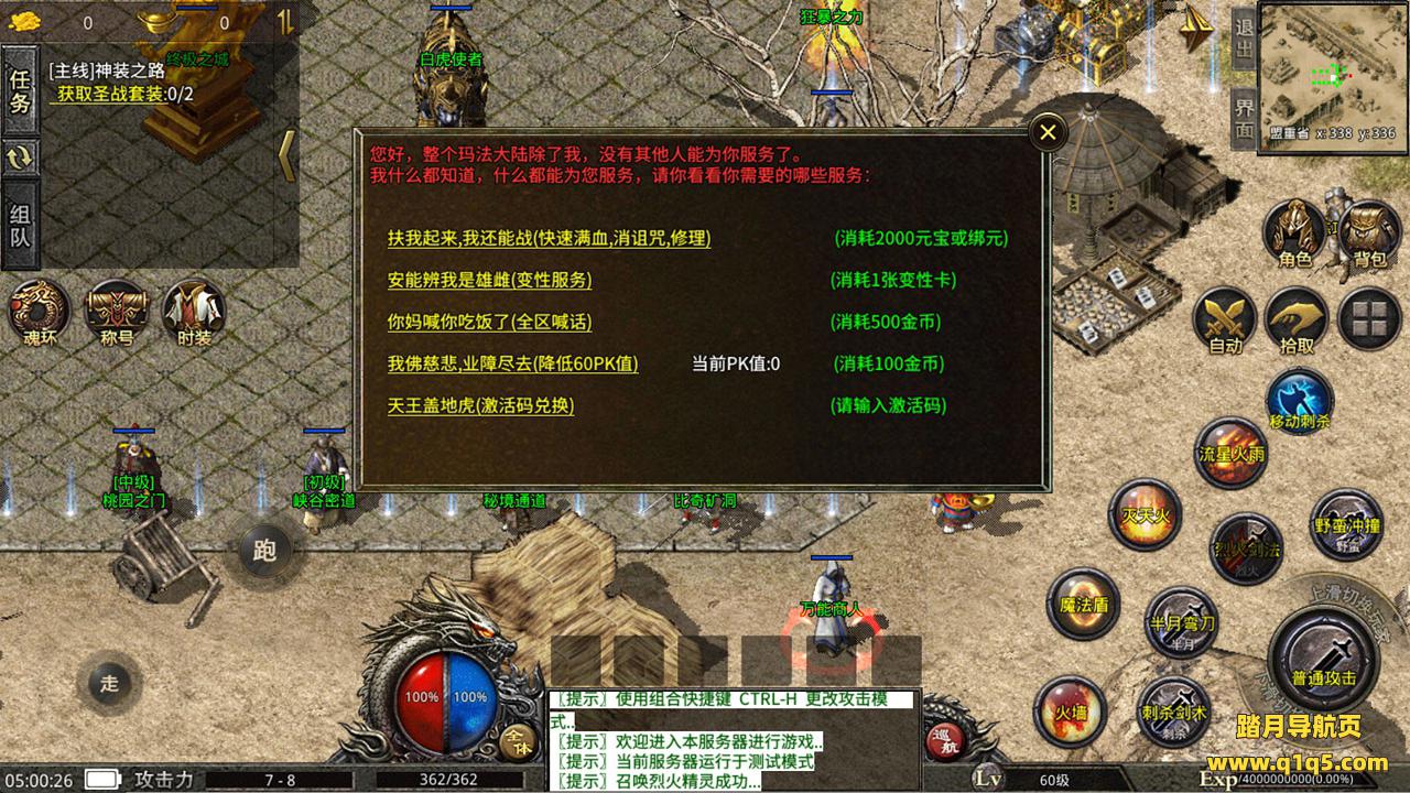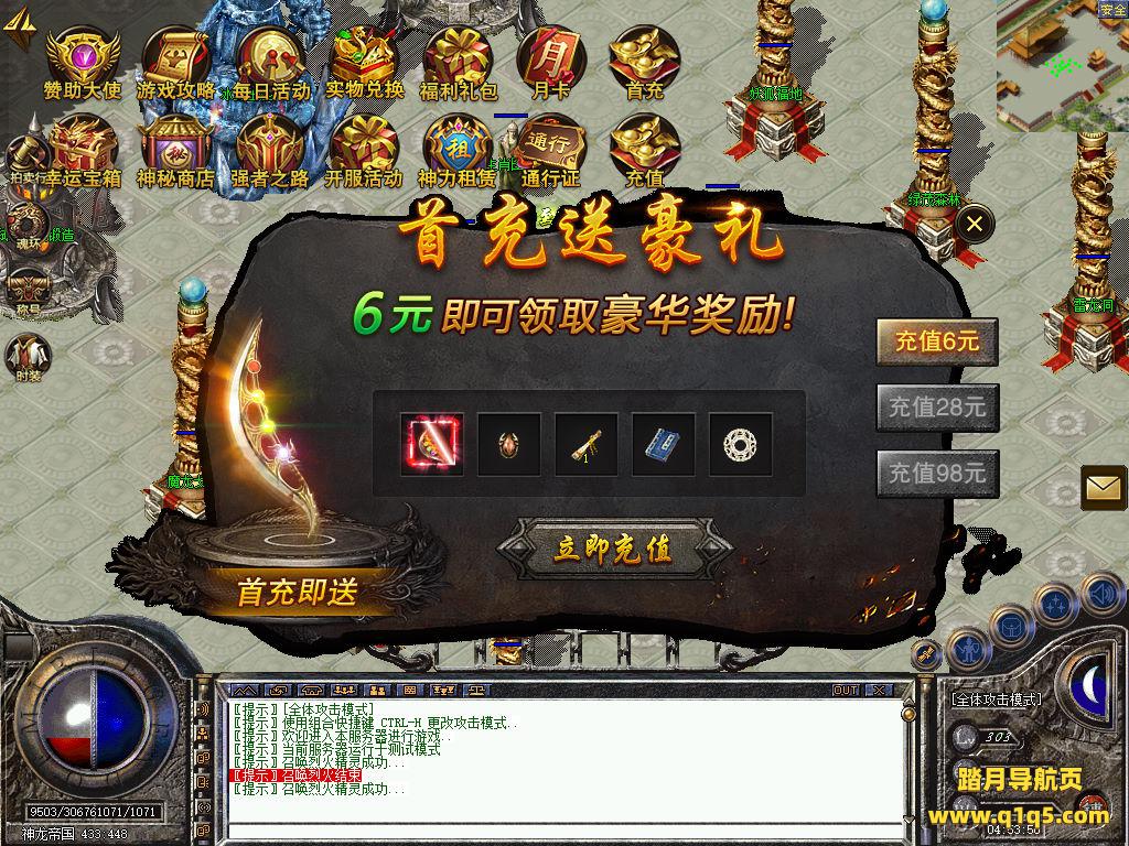 刚刚设置文本里的地方设置成你自己的角色名称,然后关闭引擎,引擎会自动启动好了。然后重新进入游戏。输入@make 物品名称 数量 来刷物品转生。行了。其他功能就自行测试吧。更多的游戏资源可以访问www.q1q5.com下载,我们每款游戏资源均单独制作了独立的视频架设教程,让小白也可以快速上手游戏架设,快来体验自己做GM的乐趣吧!