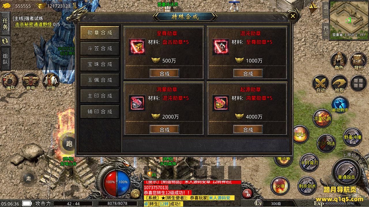 我们来设置下GM权限。转生后到新地图看看。