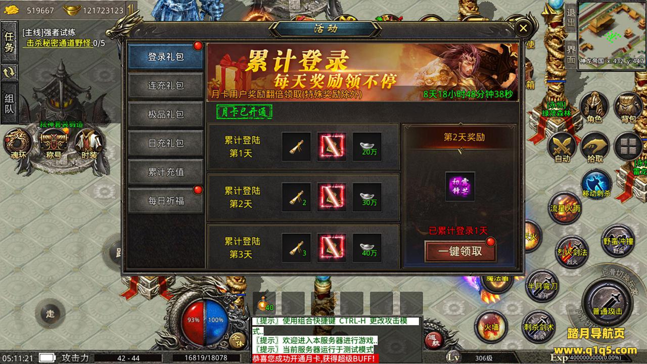 下面我们来测试下游戏里的功能,先简单在安卓里看看。然后详细还是进PC客户端看功能吧。因为我们给PC客户端替换了完整补丁,可以免去微端下载,测试看的界面要流畅些。下面我们进入PC客户端查看功能。