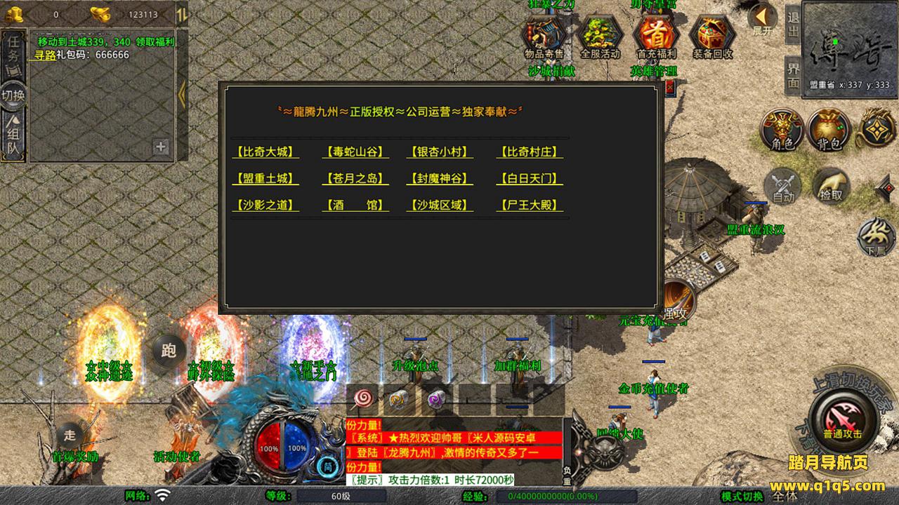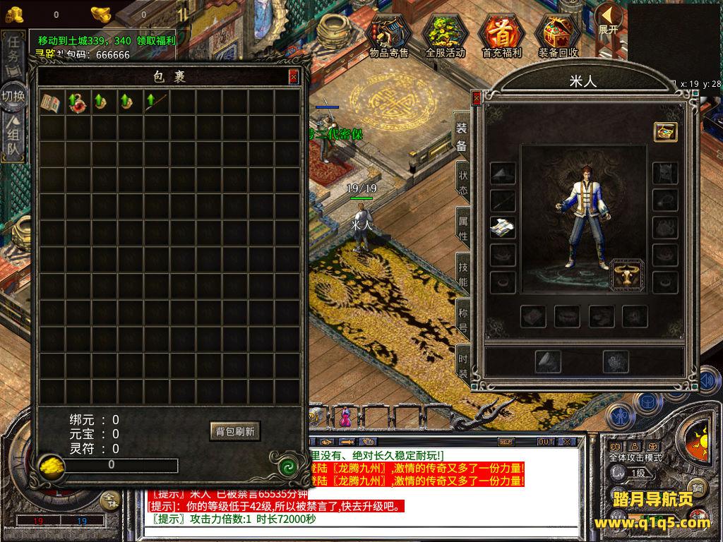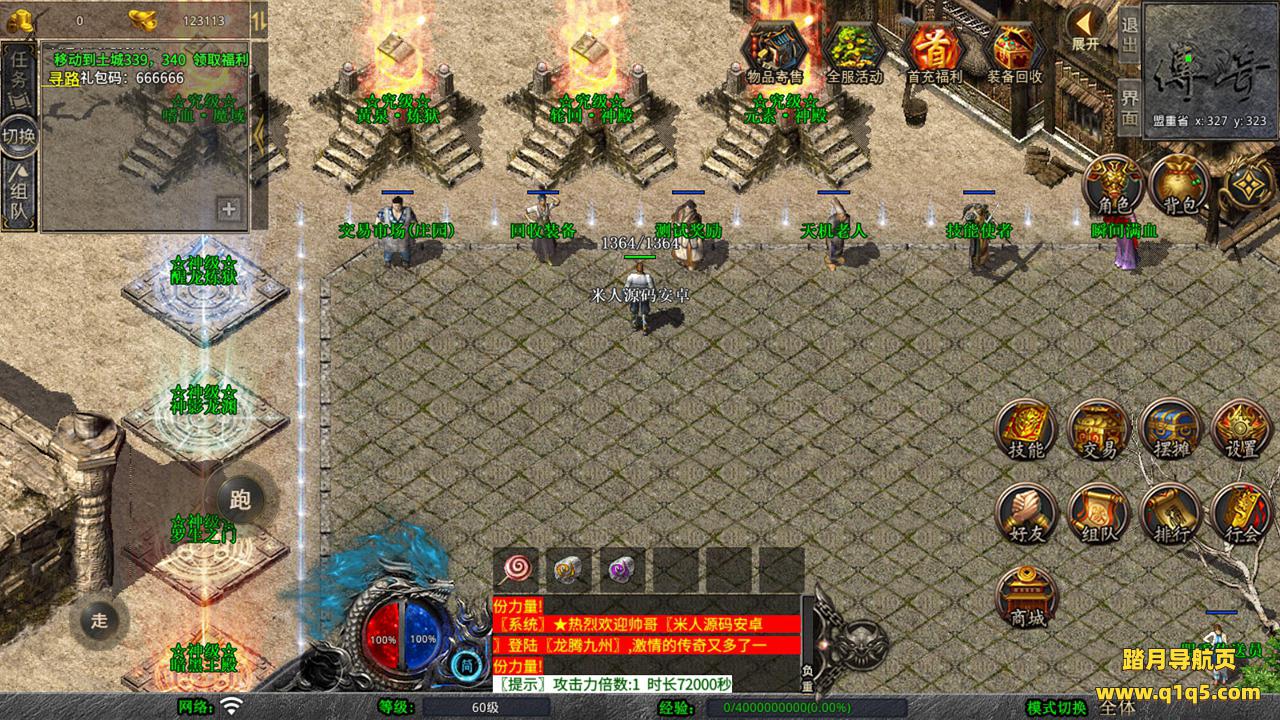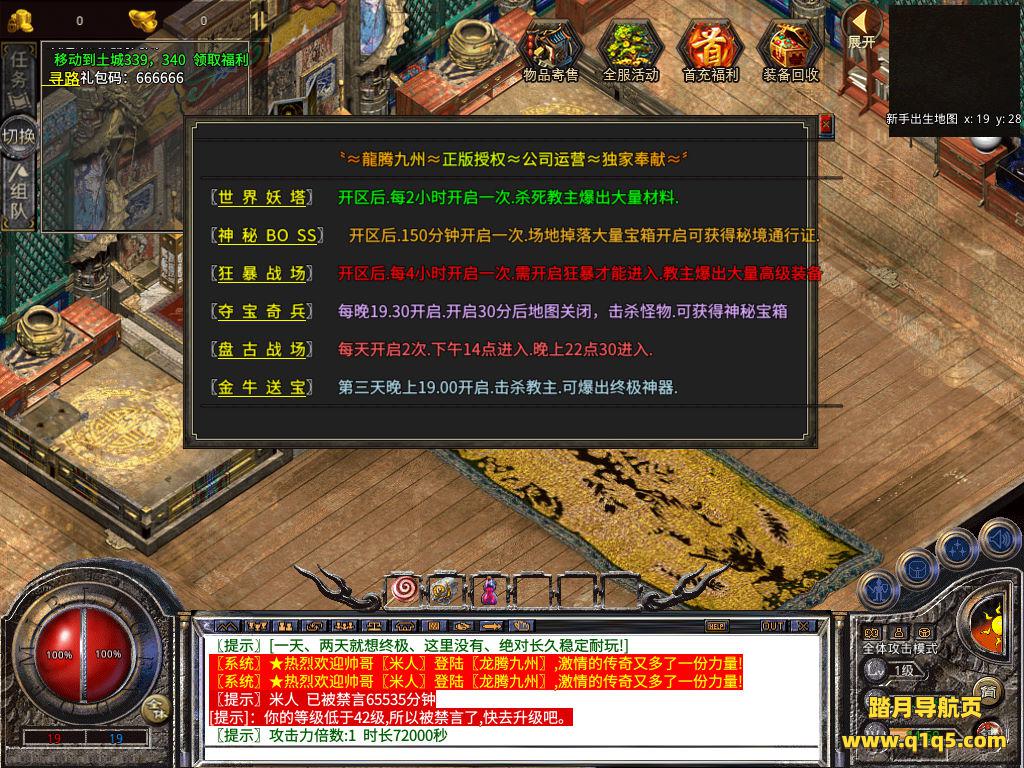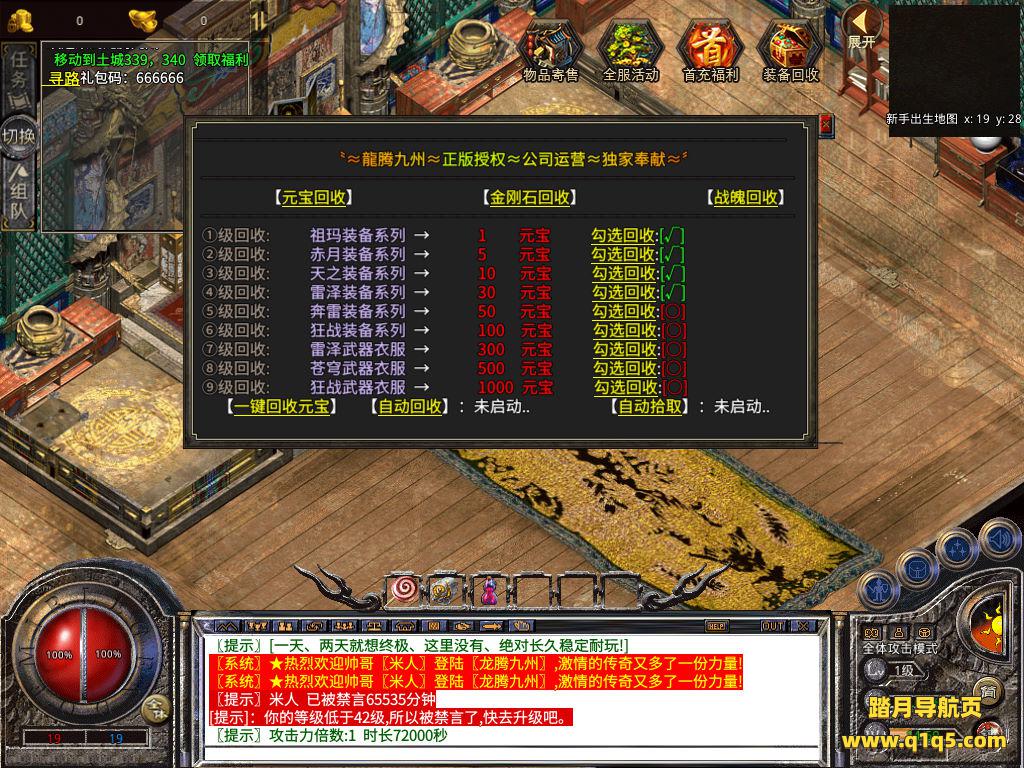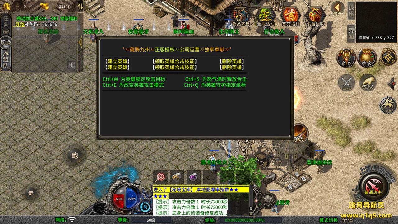 下面我们测试下游戏里的功能吧。好了,其他功能就自行测试吧。更多的游戏资源可以访问www.q1q5.com下载,我们每款游戏资源均单独制作了独立的视频架设教程,让小白也可以快速上手游戏架设,快来体验自己做GM的乐趣吧!