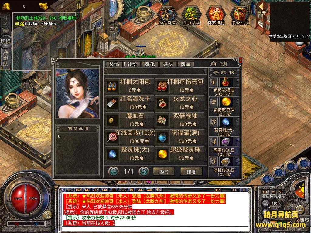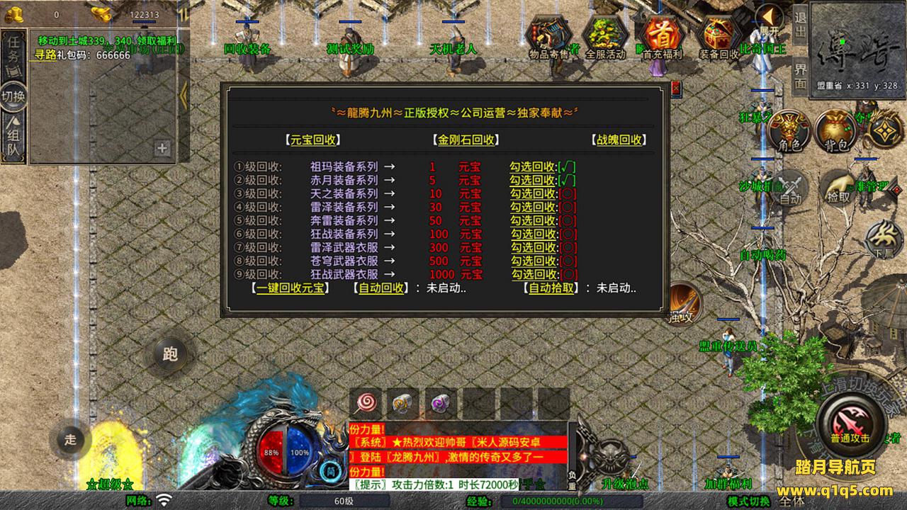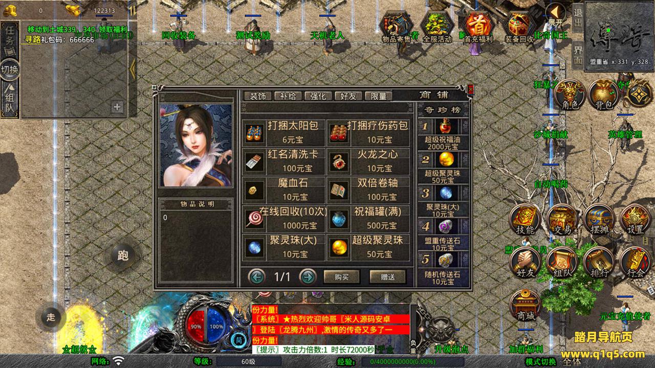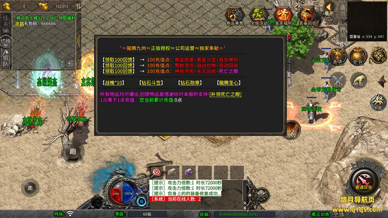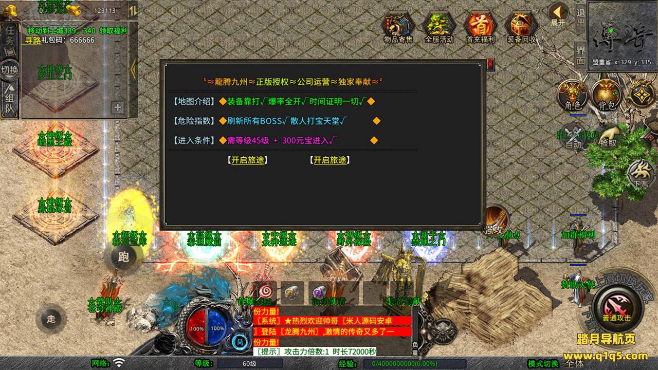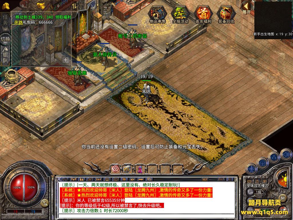 下面我们测试下游戏里的功能吧。好了,其他功能就自行测试吧。更多的游戏资源可以访问www.q1q5.com下载,我们每款游戏资源均单独制作了独立的视频架设教程,让小白也可以快速上手游戏架设,快来体验自己做GM的乐趣吧!