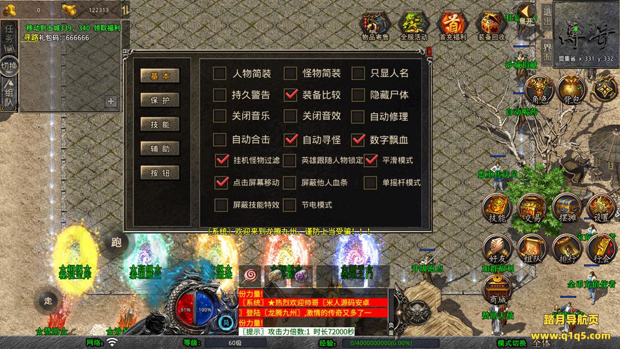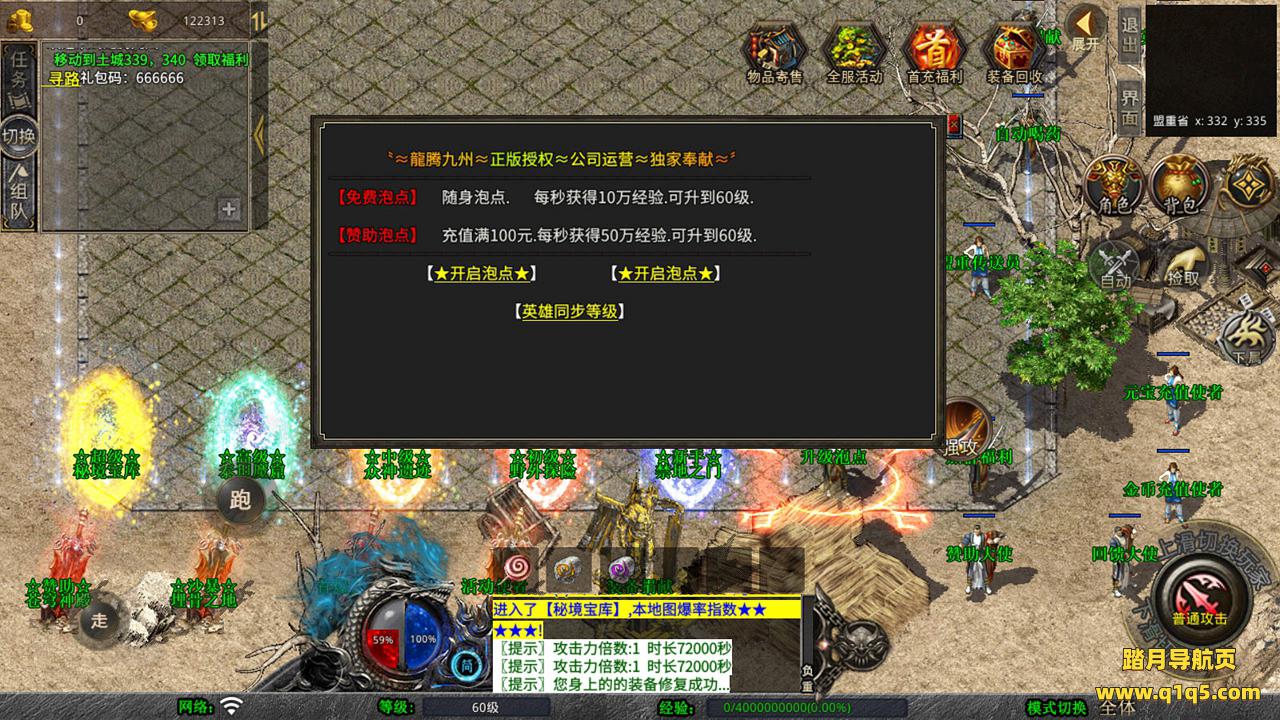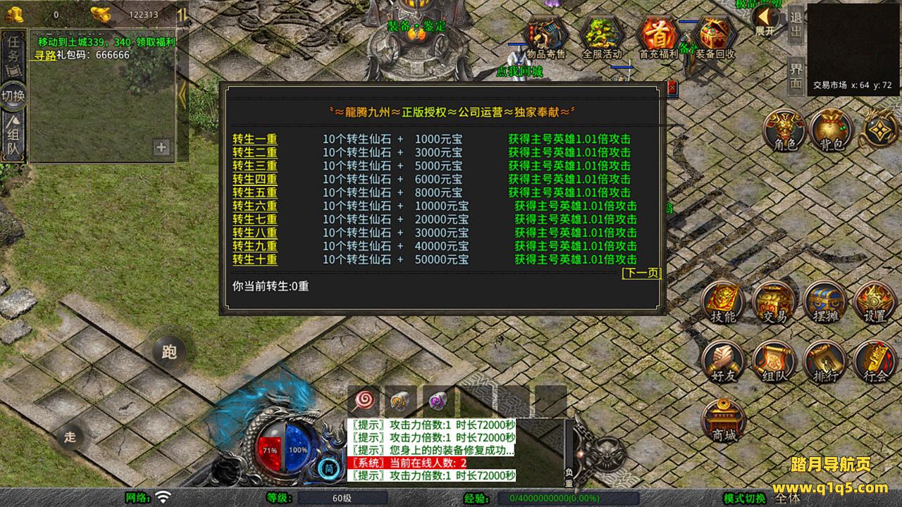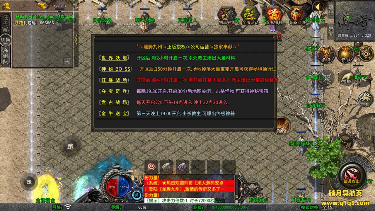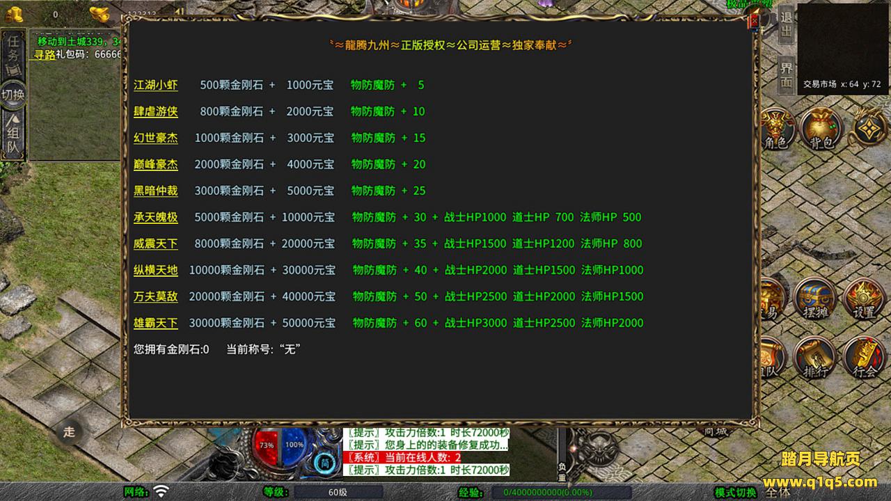 下面我们测试下游戏里的功能吧。好了,其他功能就自行测试吧。更多的游戏资源可以访问www.q1q5.com下载,我们每款游戏资源均单独制作了独立的视频架设教程,让小白也可以快速上手游戏架设,快来体验自己做GM的乐趣吧!