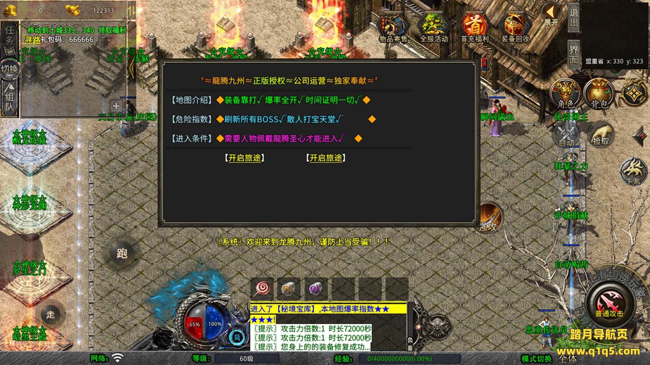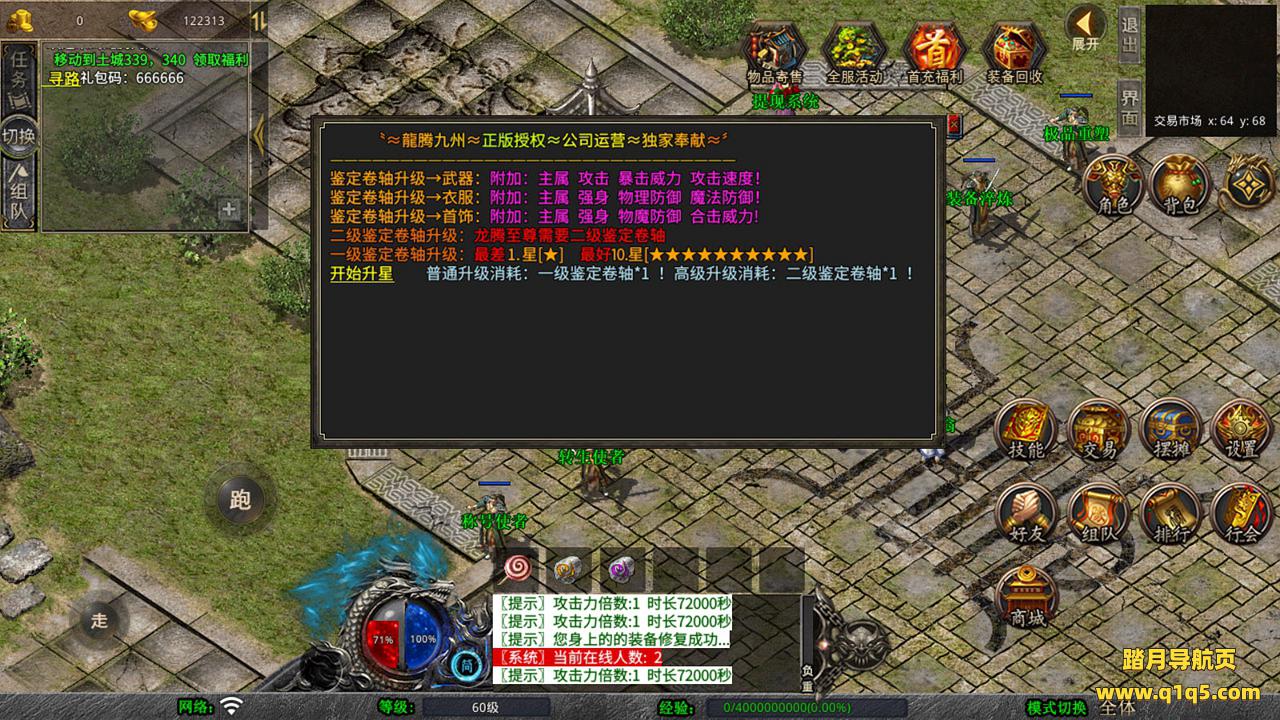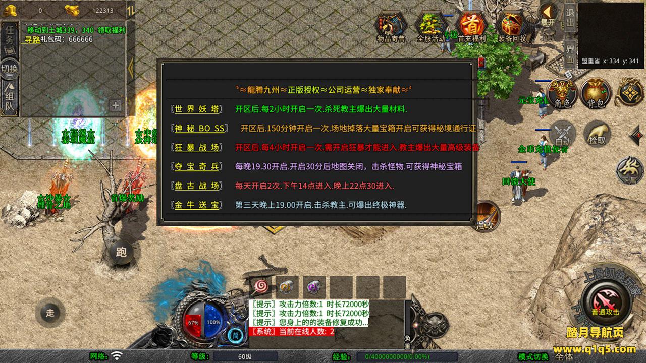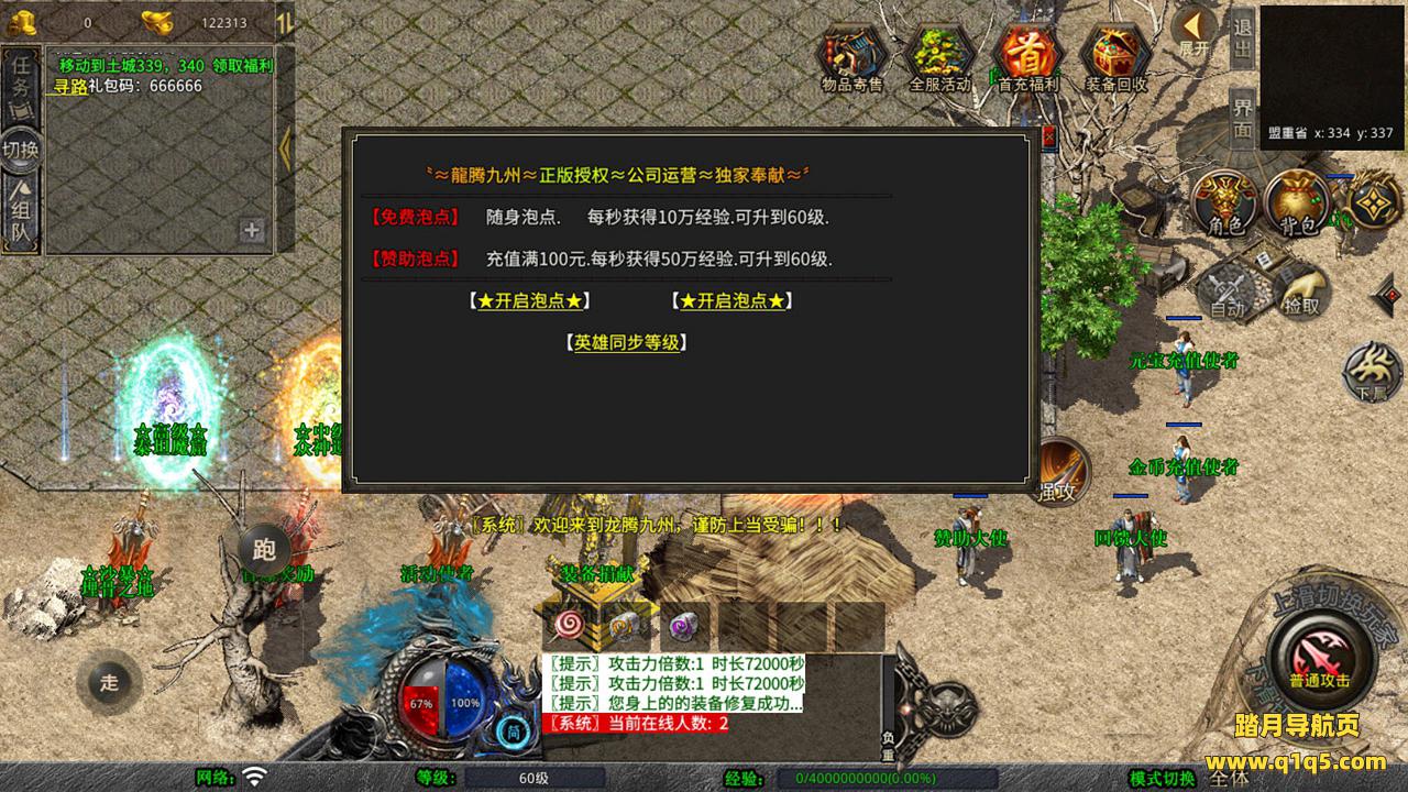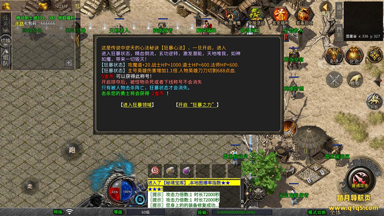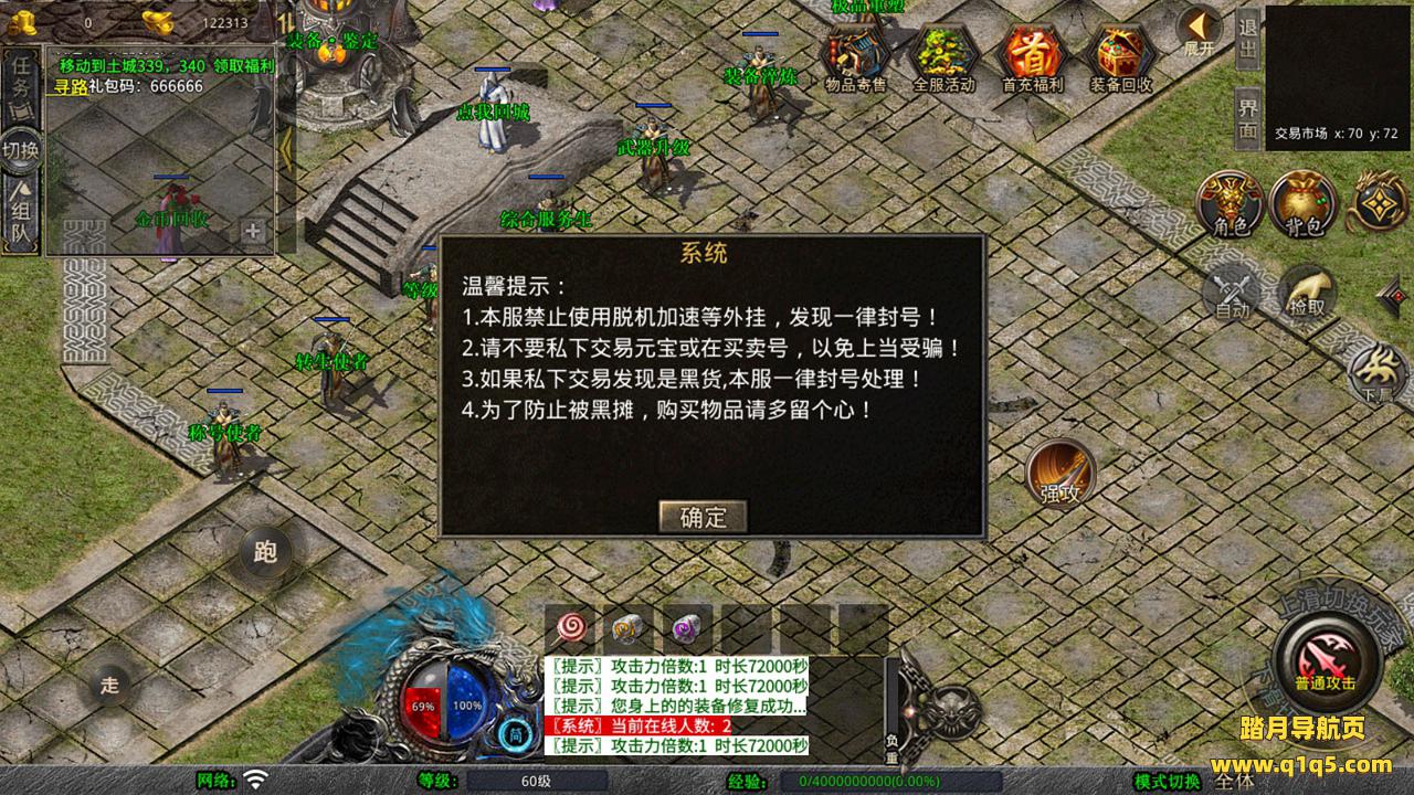 下面我们测试下游戏里的功能吧。好了,其他功能就自行测试吧。更多的游戏资源可以访问www.q1q5.com下载,我们每款游戏资源均单独制作了独立的视频架设教程,让小白也可以快速上手游戏架设,快来体验自己做GM的乐趣吧!