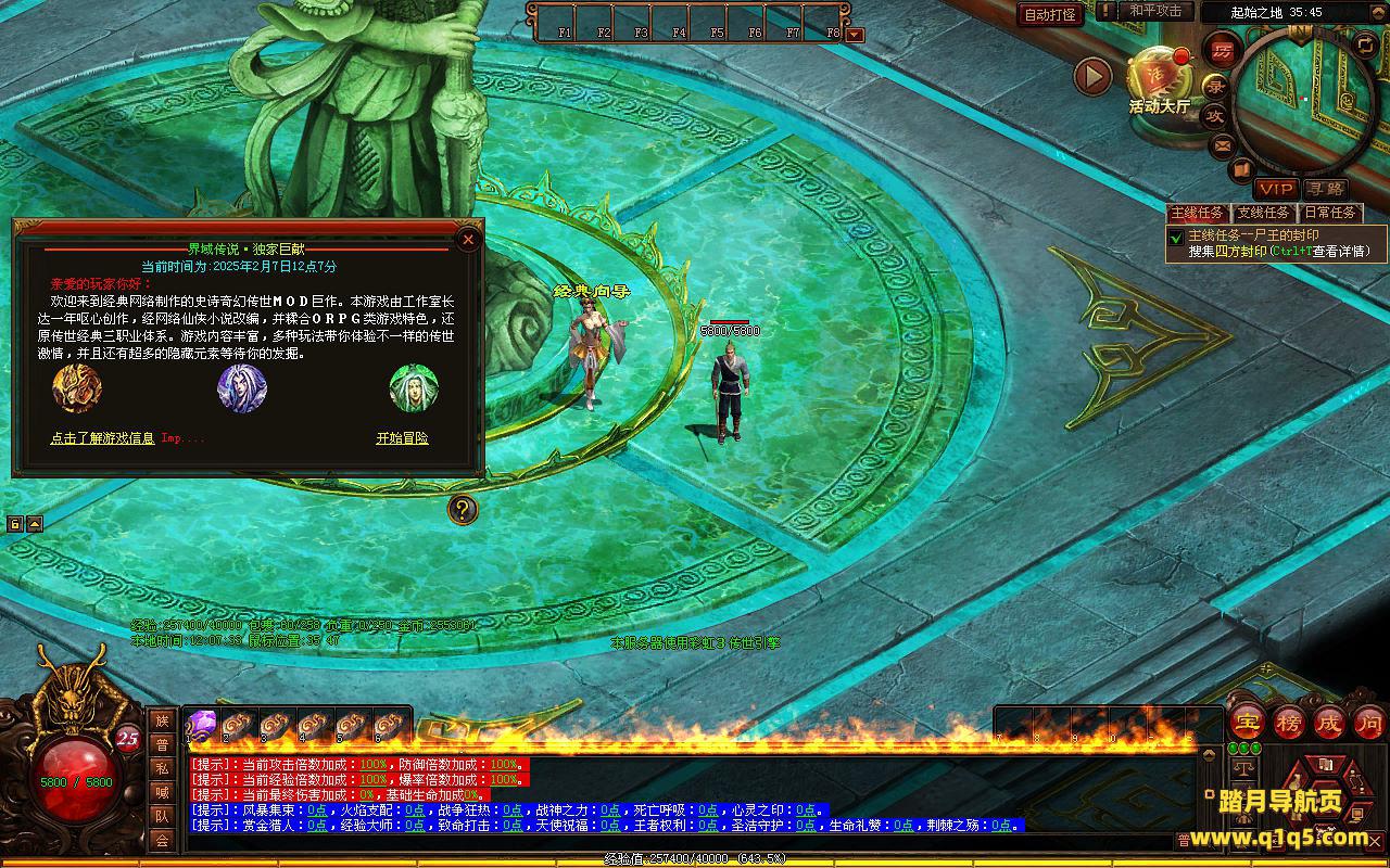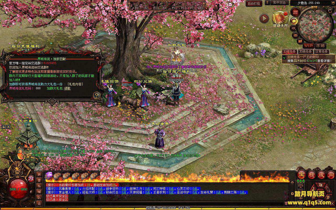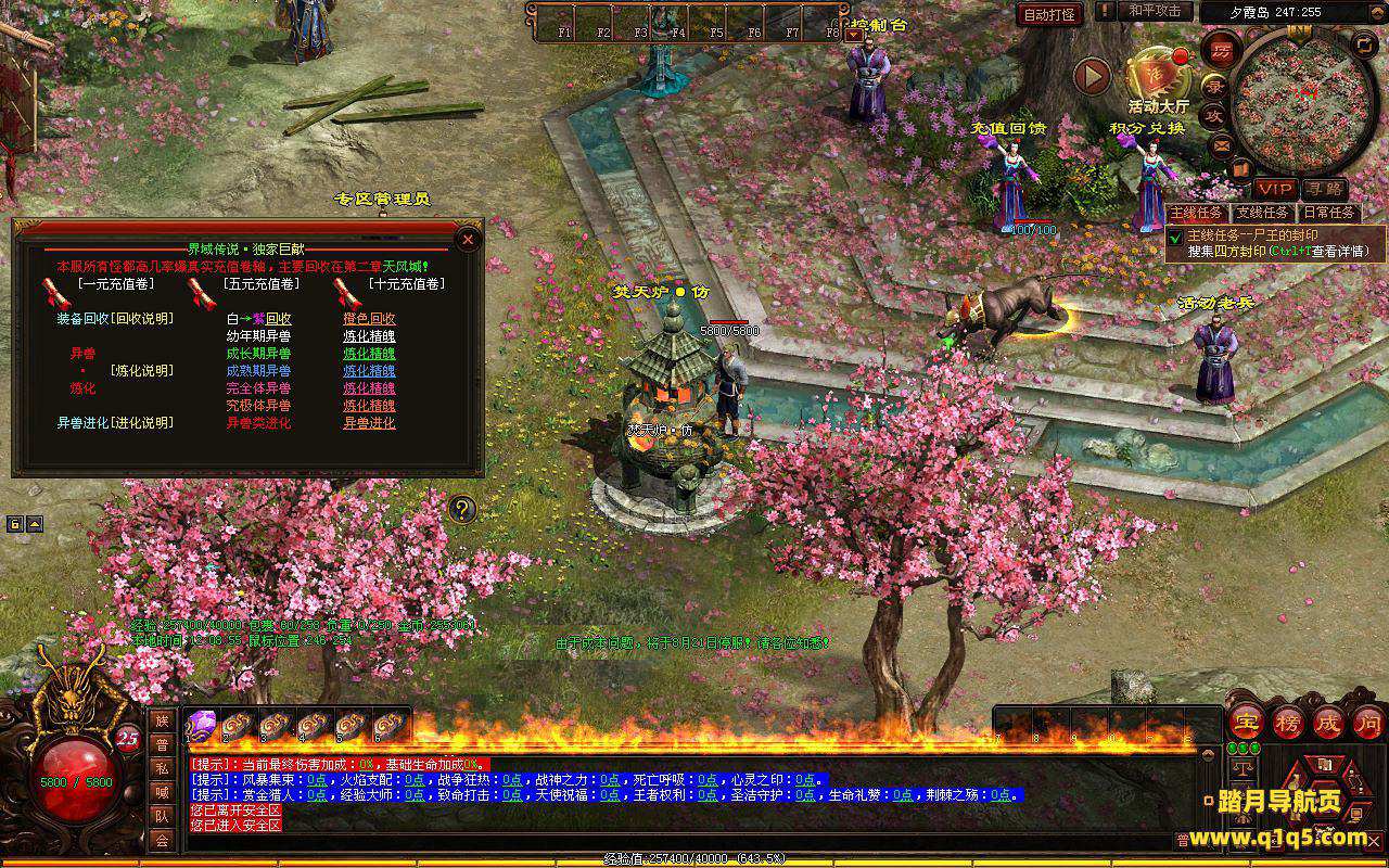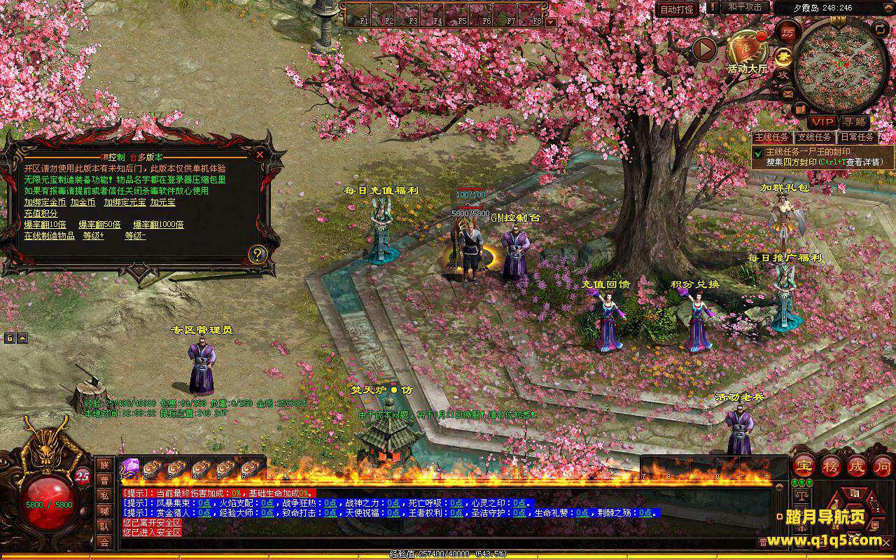 好了,下面我们来测试下游戏里的功能看看吧。好了。其他功能自己测试吧。更多的游戏资源可以访问www.q1q5.com下载,我们每款游戏资源均单独制作了独立的视频架设教程,让小白也可以快速上手游戏架设,快来体验自己做GM的乐趣吧!
