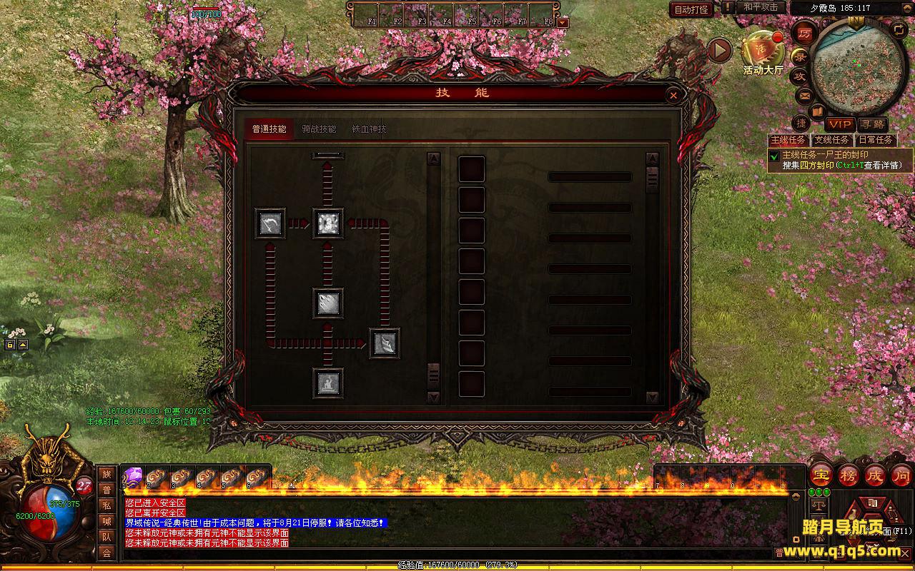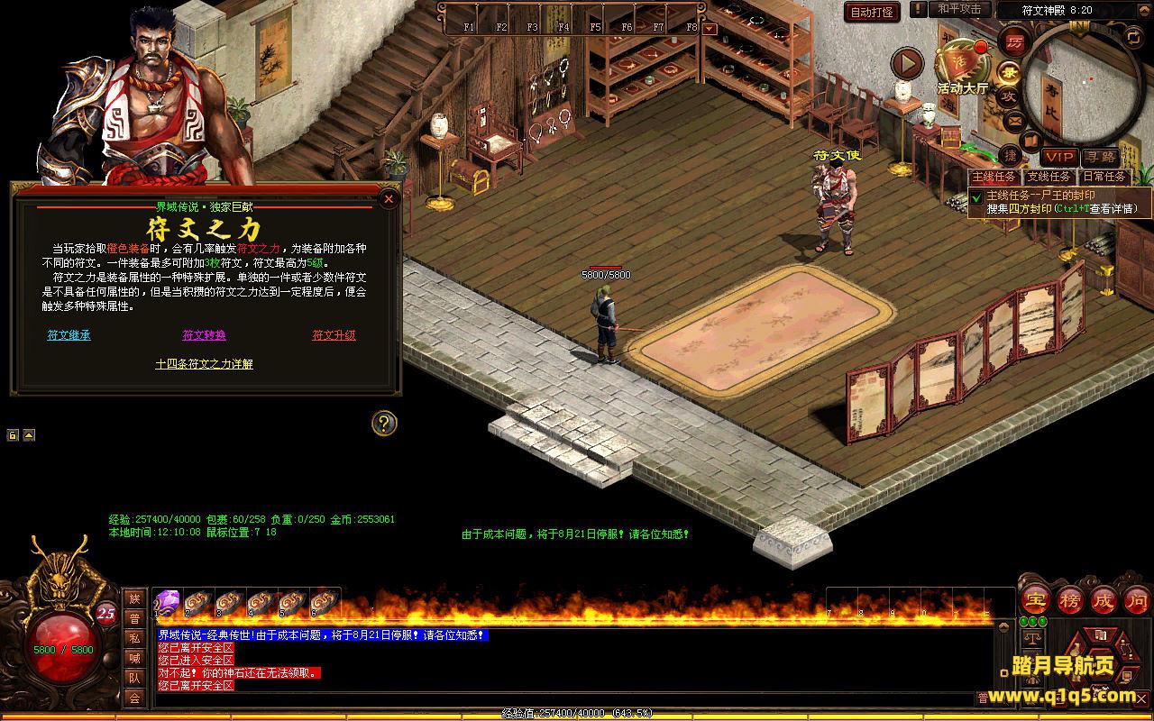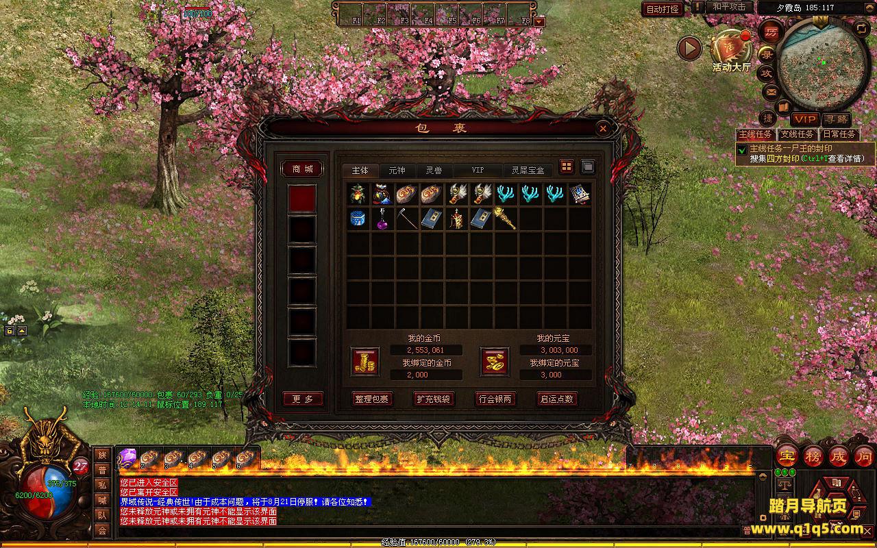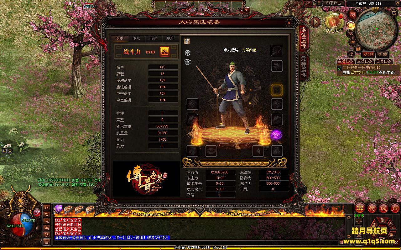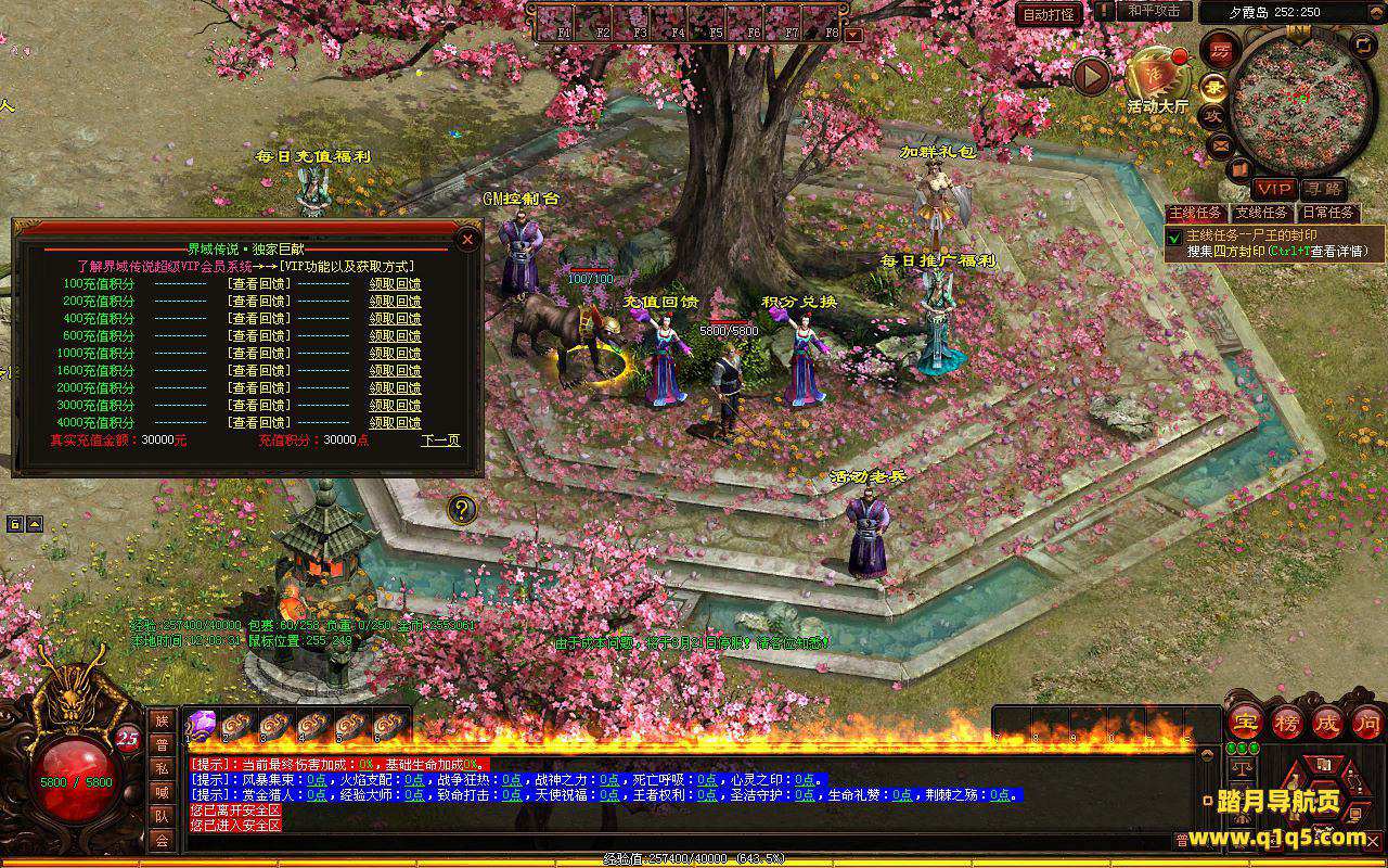 好了,下面我们来测试下游戏里的功能看看吧。好了。其他功能自己测试吧。更多的游戏资源可以访问www.q1q5.com下载,我们每款游戏资源均单独制作了独立的视频架设教程,让小白也可以快速上手游戏架设,快来体验自己做GM的乐趣吧!