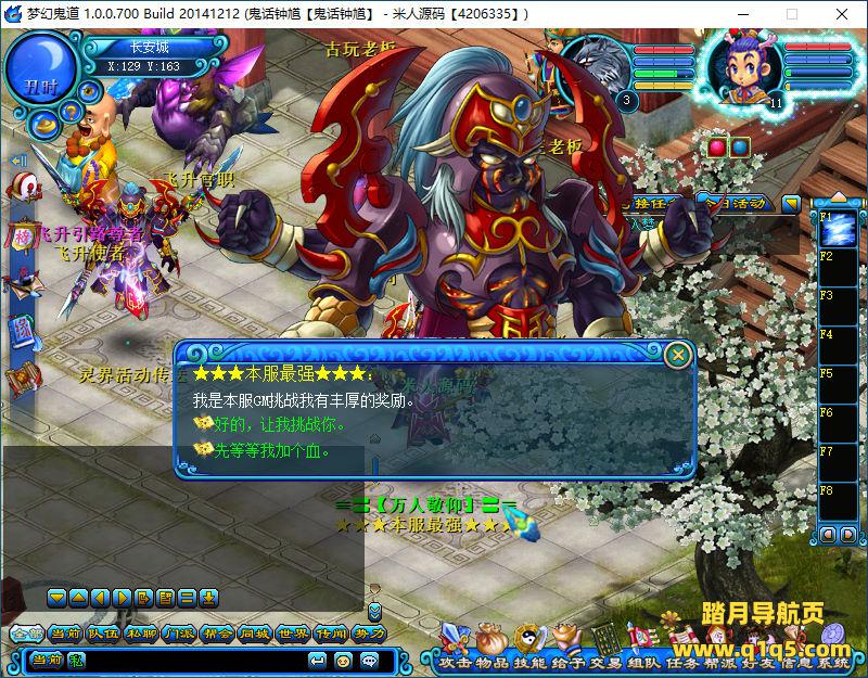 重新发送了。我们在进游戏看看。下面我们来测试下游戏里的功能看看。好了,其他功能就自行测试吧。更多的游戏资源可以访问www.q1q5.com下载,我们每款游戏资源均单独制作了独立的视频架设教程,让小白也可以快速上手游戏架设,快来体验自己做GM的乐趣吧!