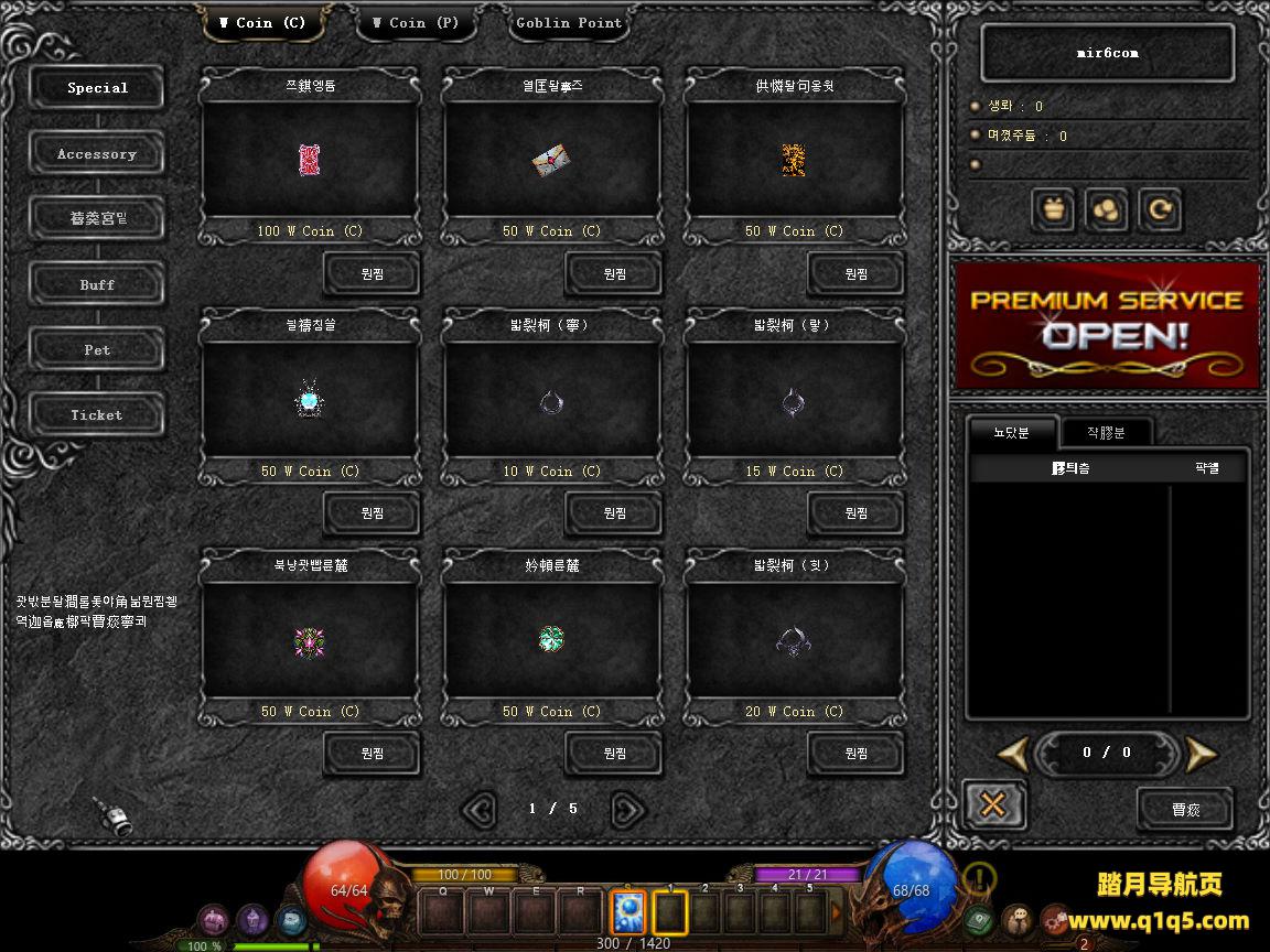 NPC及商城名称,还有登陆界面没汉化,都是韩文,不过熟悉的看图标应该知道买的是什么,或者买来看是中文