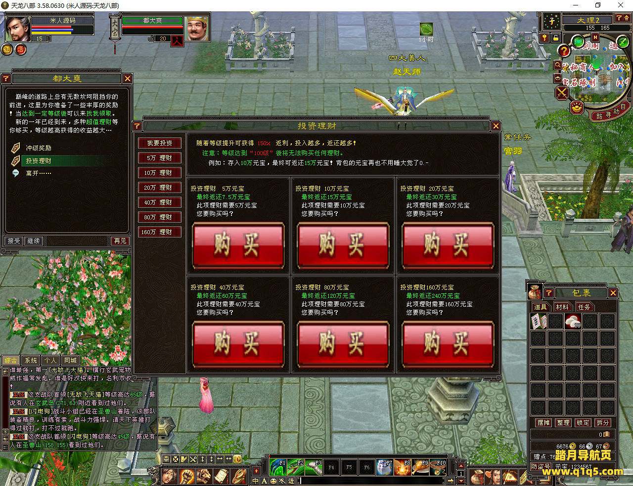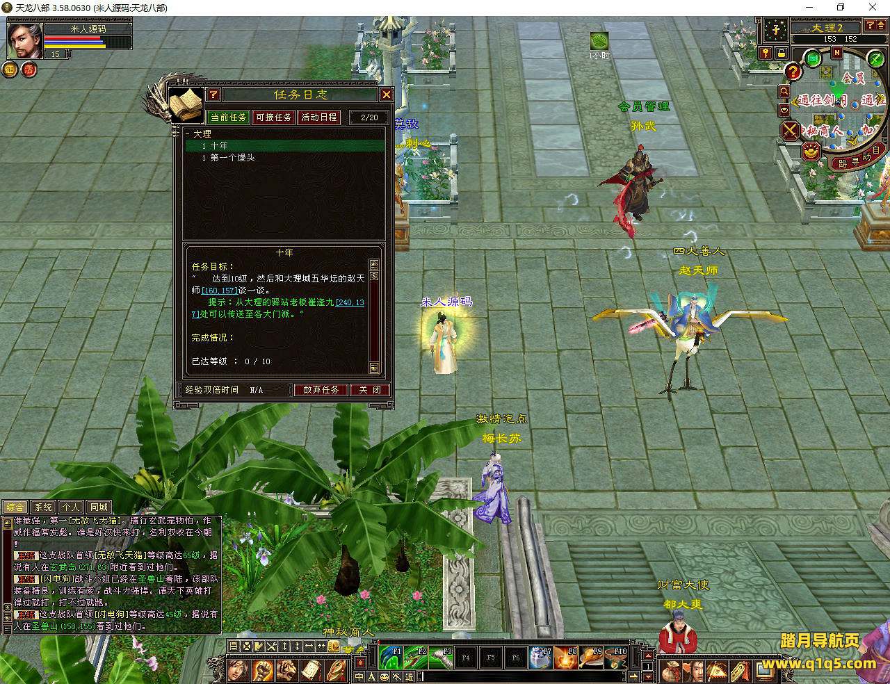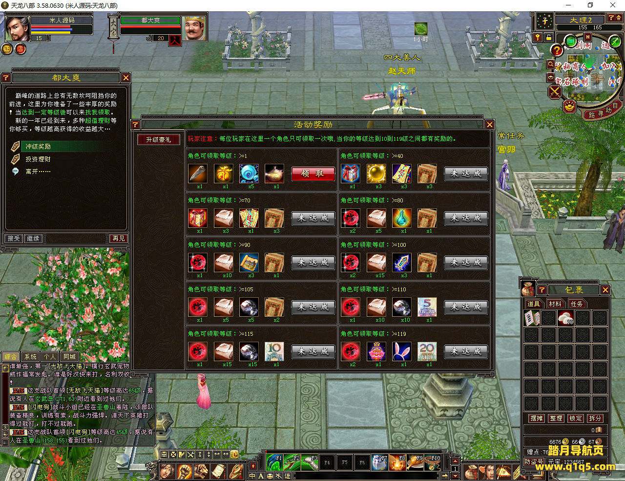 下面我们测试下游戏里的功能看看。任务太慢了。我们去调整下等级。好了。其他功能就自行测试吧。更多的游戏资源可以访问www.q1q5.com下载,我们每款游戏资源均单独制作了独立的视频架设教程,让小白也可以快速上手游戏架设,快来体验自己做GM的乐趣吧!