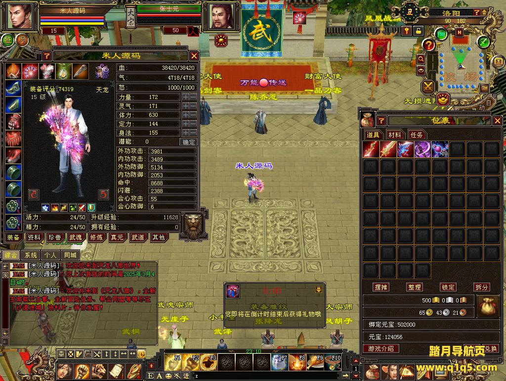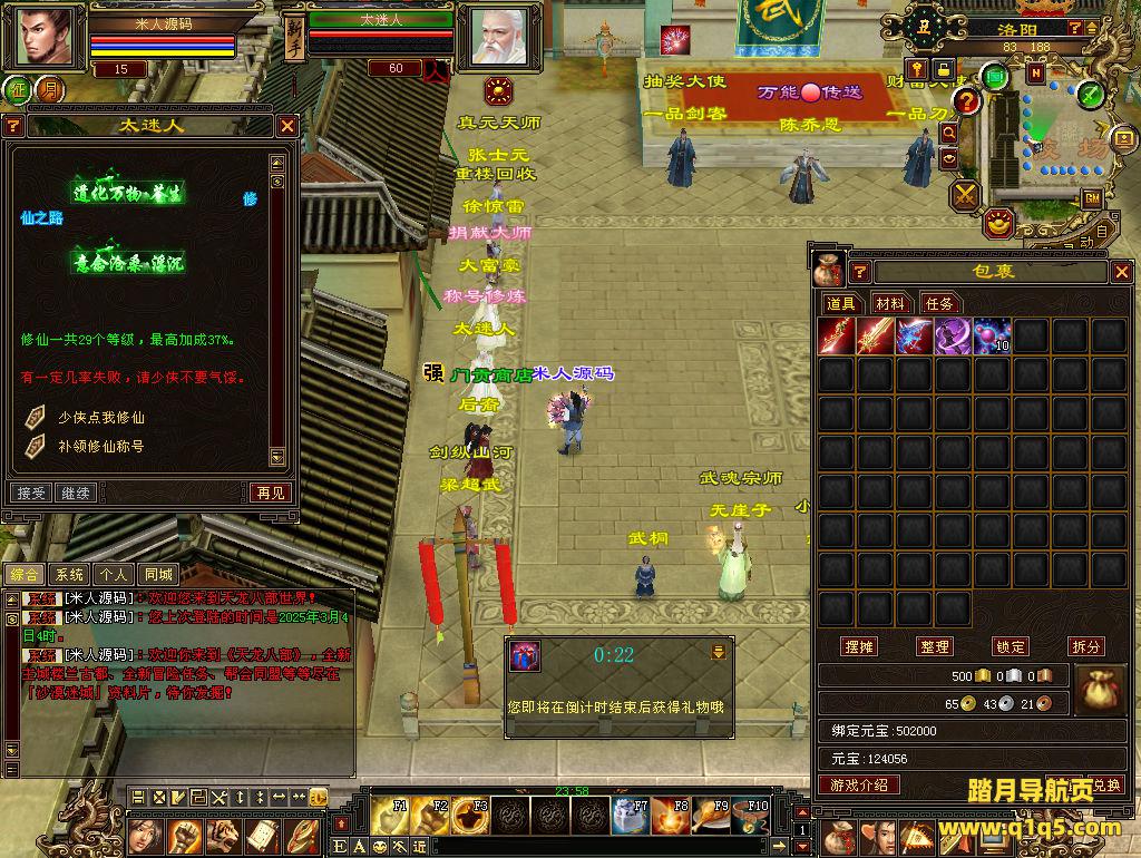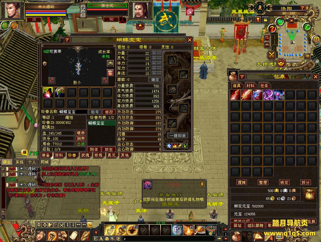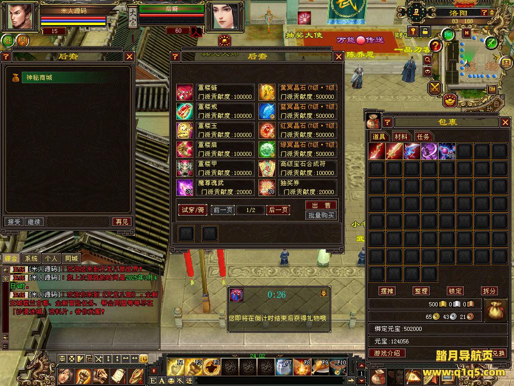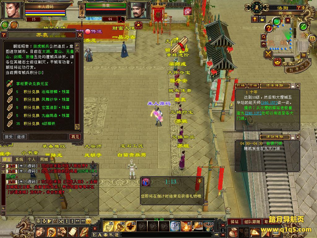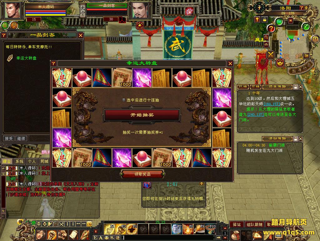 下面我们测试下游戏里的功能看看。好了,其他功能就自行测试吧。更多的游戏资源可以访问www.q1q5.com下载,我们每款游戏资源均单独制作了独立的视频架设教程,让小白也可以快速上手游戏架设,快来体验自己做GM的乐趣吧!