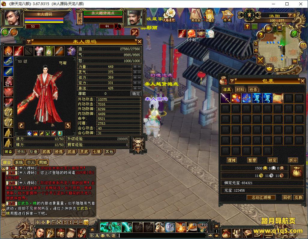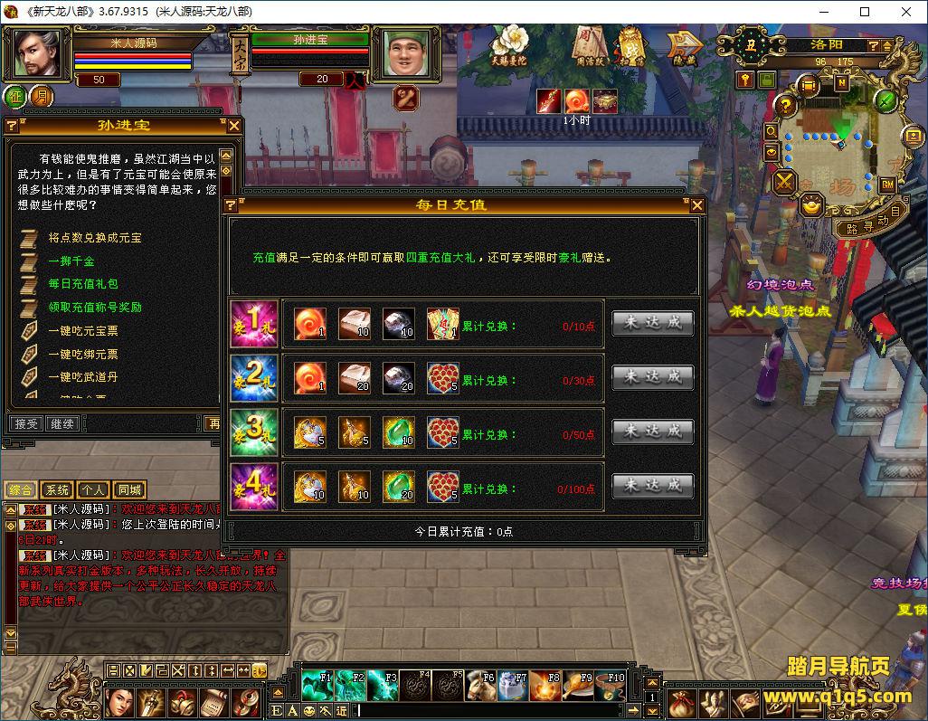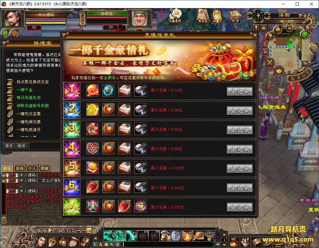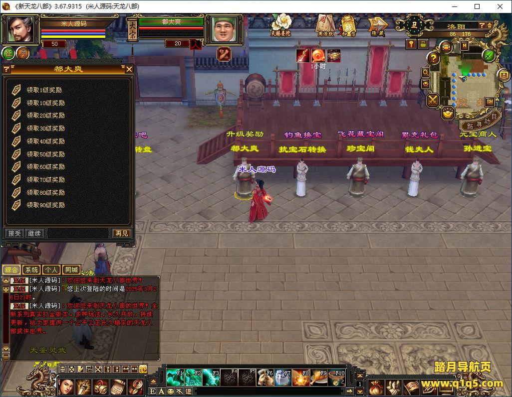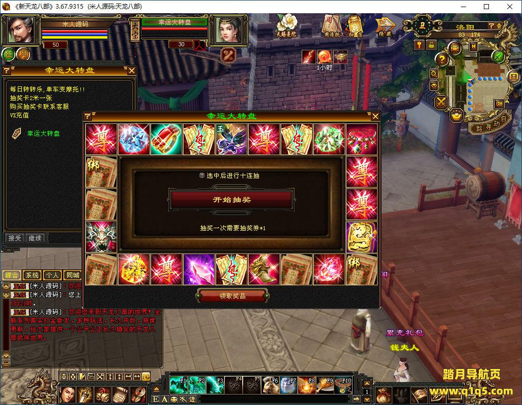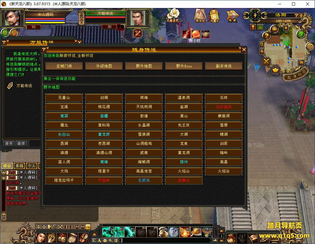 下面我们测试下游戏里的功能看看。好了,其他功能自行测试吧。更多的游戏资源可以访问www.q1q5.com下载,我们每款游戏资源均单独制作了独立的视频架设教程,让小白也可以快速上手游戏架设,快来体验自己做GM的乐趣吧!