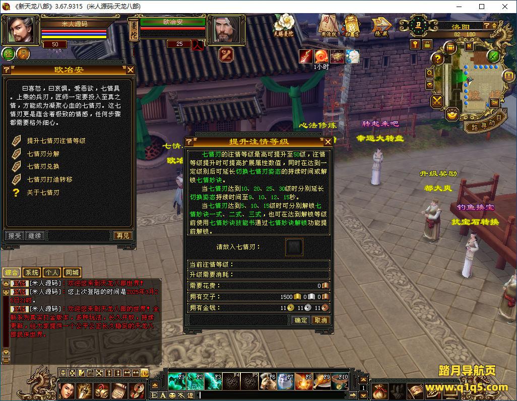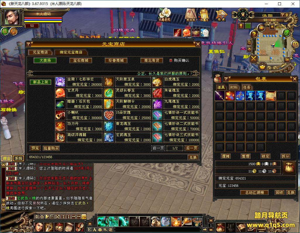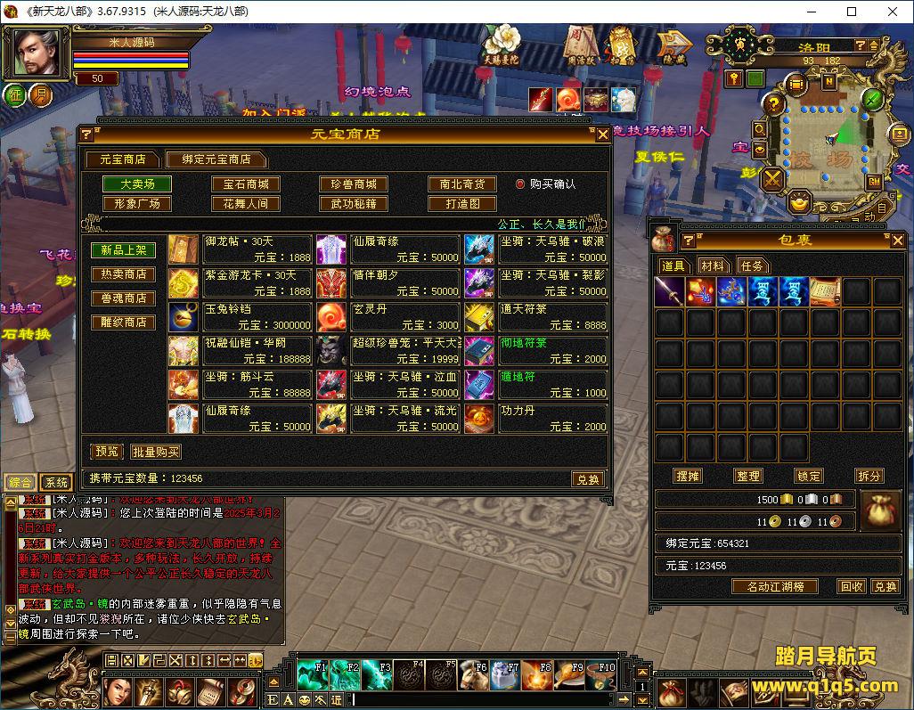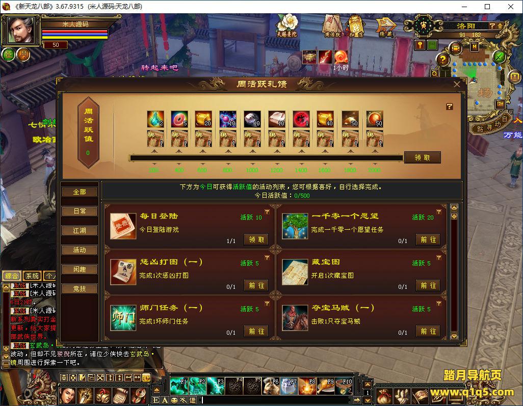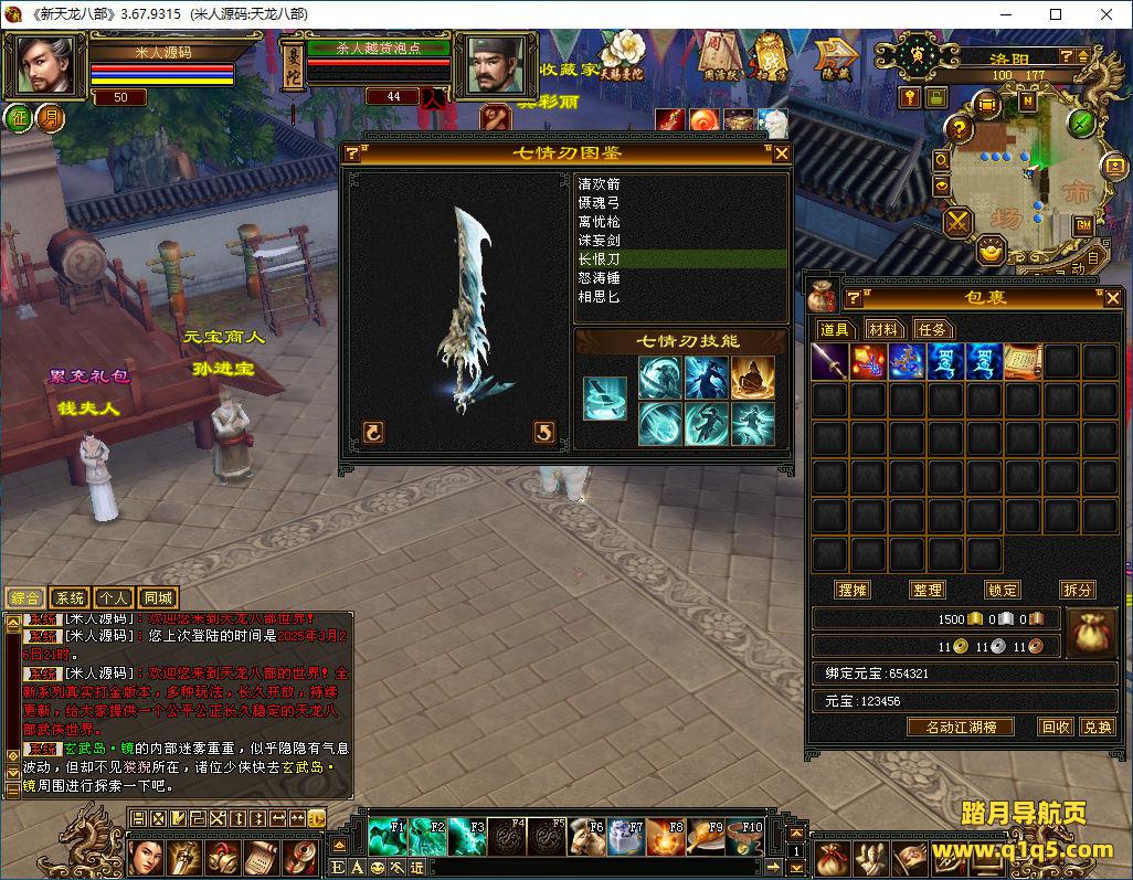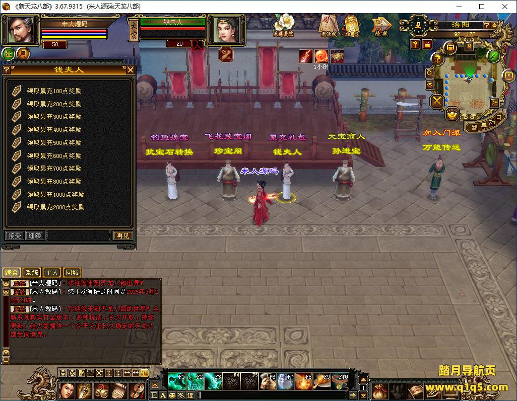 下面我们测试下游戏里的功能看看。好了,其他功能自行测试吧。更多的游戏资源可以访问www.q1q5.com下载,我们每款游戏资源均单独制作了独立的视频架设教程,让小白也可以快速上手游戏架设,快来体验自己做GM的乐趣吧!