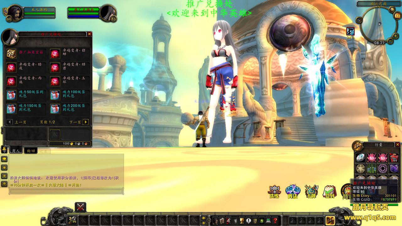下面我们来测试下游戏里的功能看看吧。好了,其他功能就自行测试吧。更多的游戏资源可以访问www.q1q5.com下载,我们每款游戏资源均单独制作了独立的视频架设教程,让小白也可以快速上手游戏架设,快来体验自己做GM的乐趣吧!