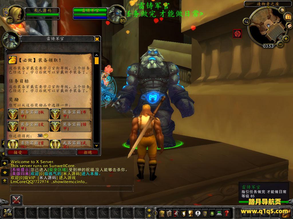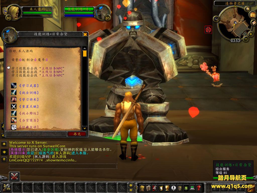 下面我们来测试下游戏里的功能看看。好了,其他功能就自行测试吧。更多的游戏资源可以访问www.q1q5.com下载,我们每款游戏资源均单独制作了独立的视频架设教程,让小白也可以快速上手游戏架设,快来体验自己做GM的乐趣吧!