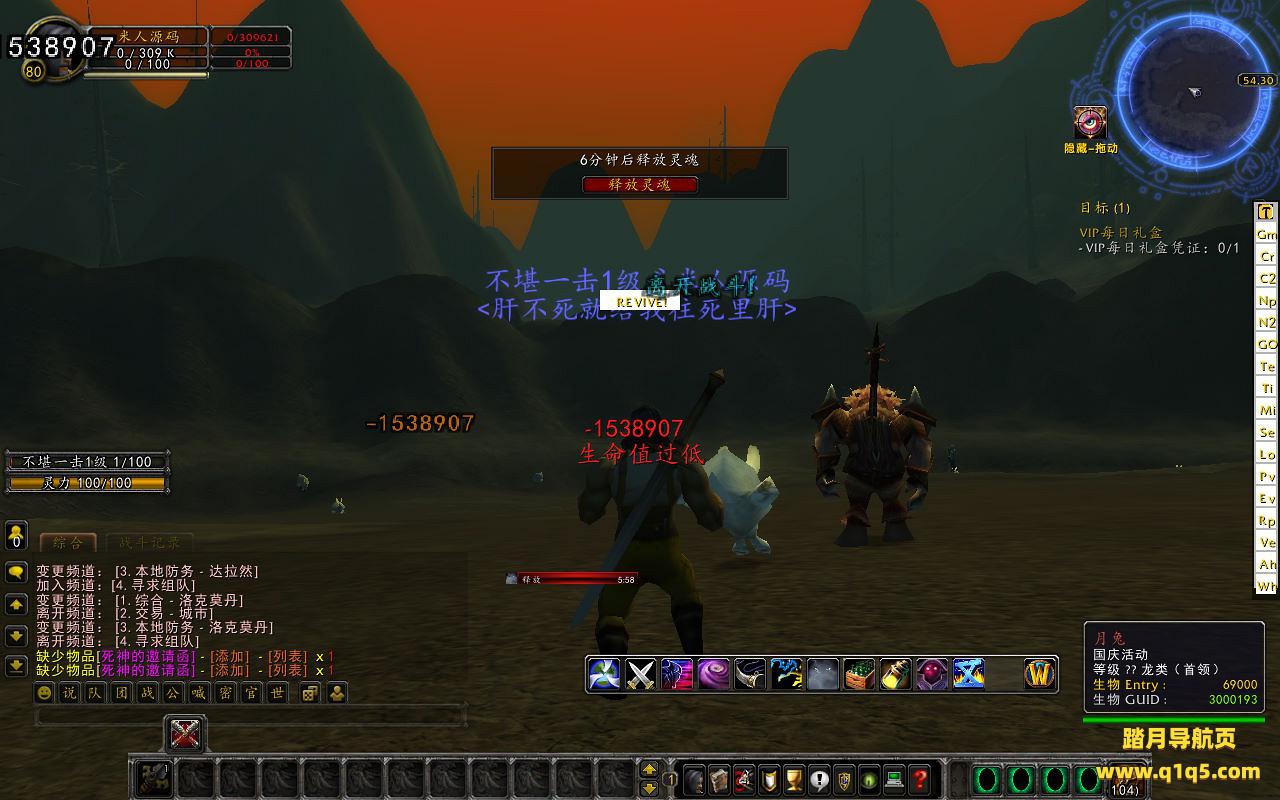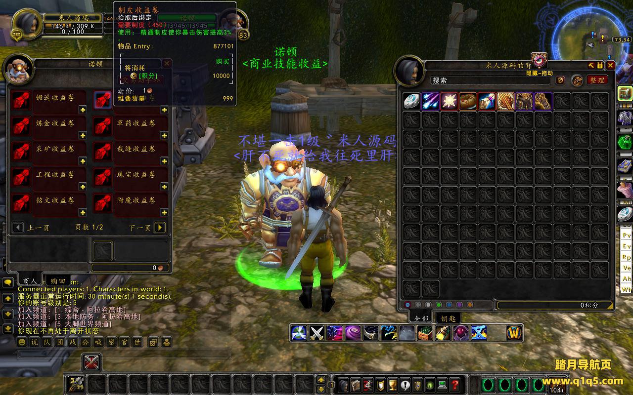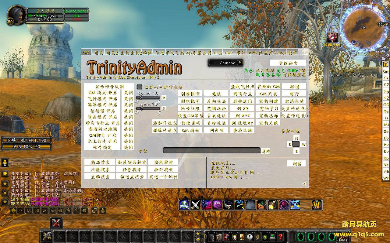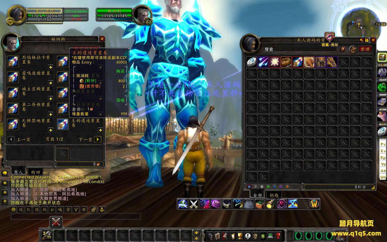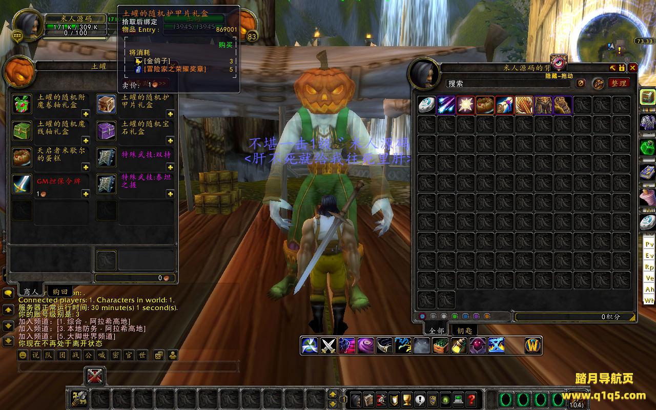 下面我们测试下游戏里的功能吧。好了,其他功能就自行测试吧。更多的游戏资源可访问www.q1q5.com下载,我们每款游戏资源均单独制作了独立的视频架设教程,让小白也可以快速上手游戏架设,快来体验做GM的乐趣吧!