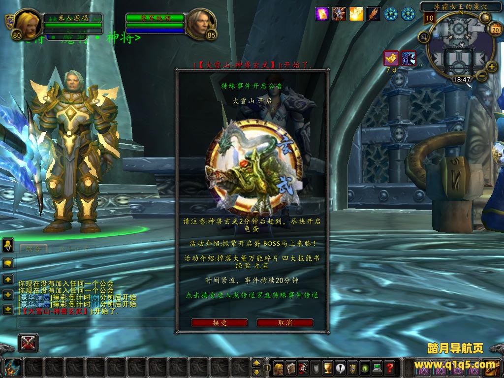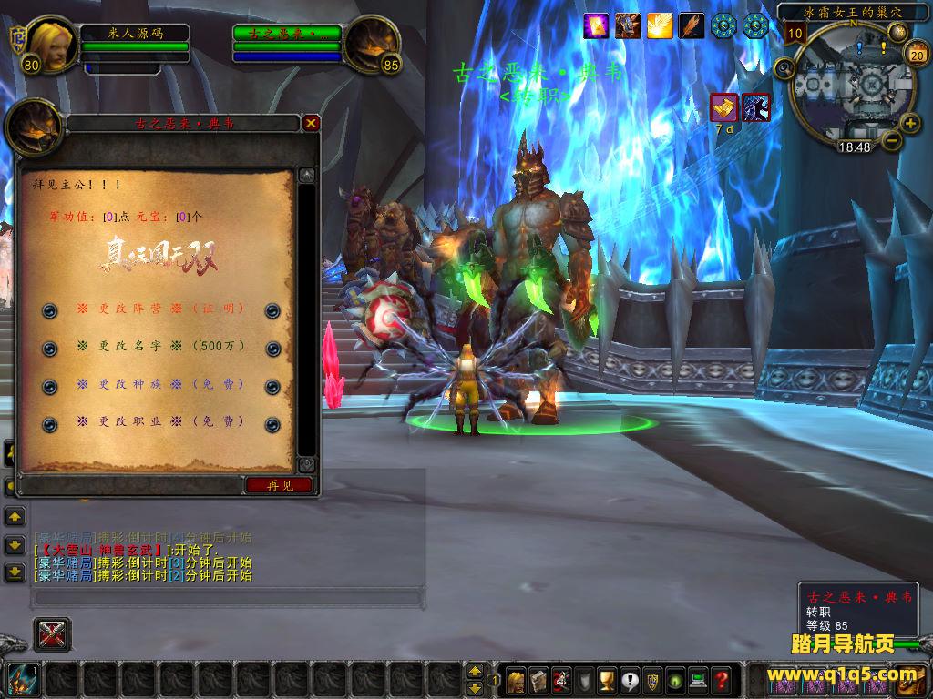 下面我们来测试下游戏里的功能看看。好了。其他功能自行测试吧。更多的游戏资源可以访问www.q1q5.com下载,我们每款游戏资源均单独制作了独立的视频架设教程,让小白也可以快速上手游戏架设,快来体验自己做GM的乐趣吧!
