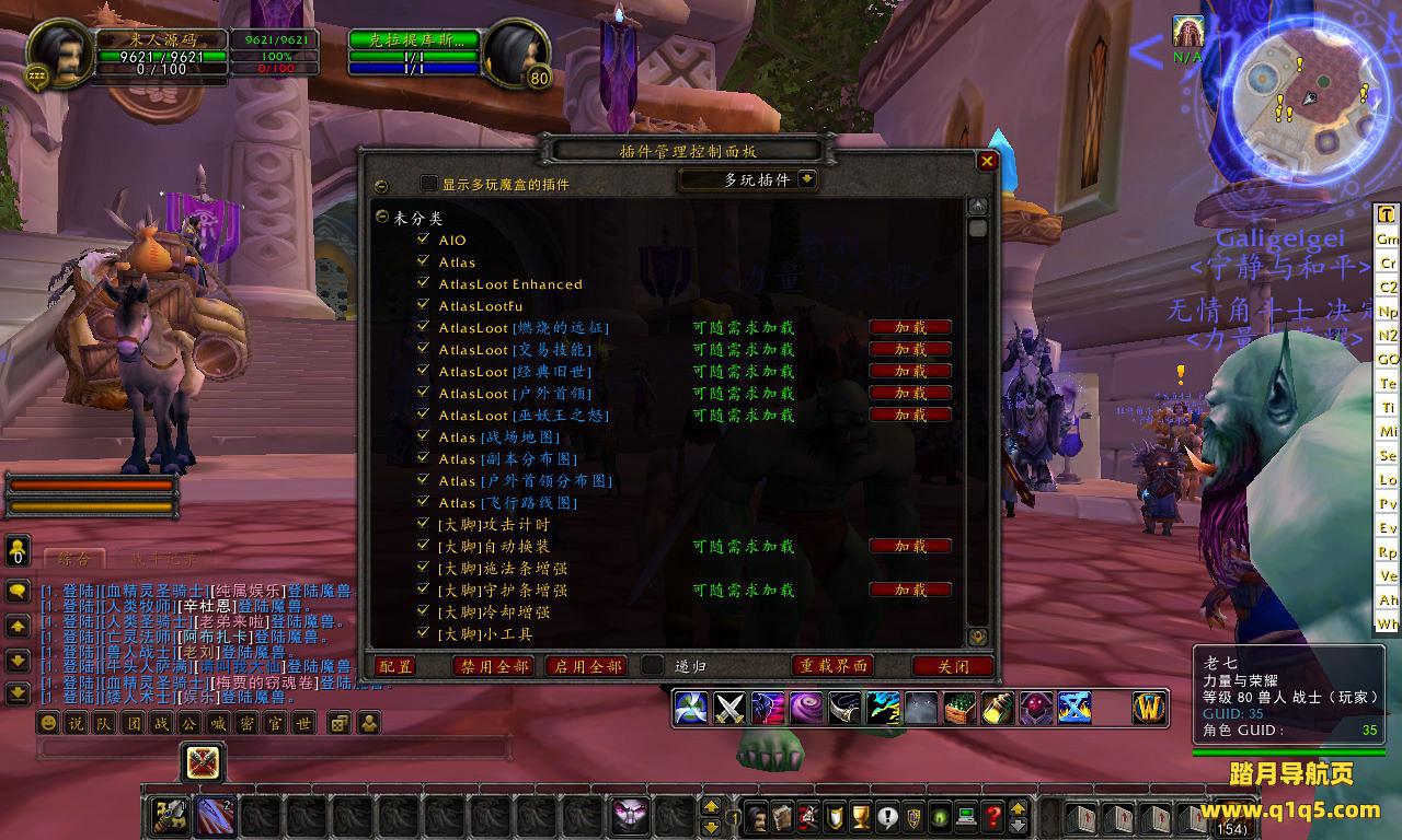 进去游戏,摁一下键盘上的退出键Esc,进入插件管理,找到[大脚]物品信息,前面打勾√并加载