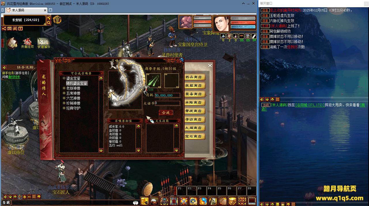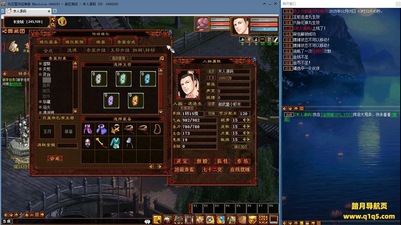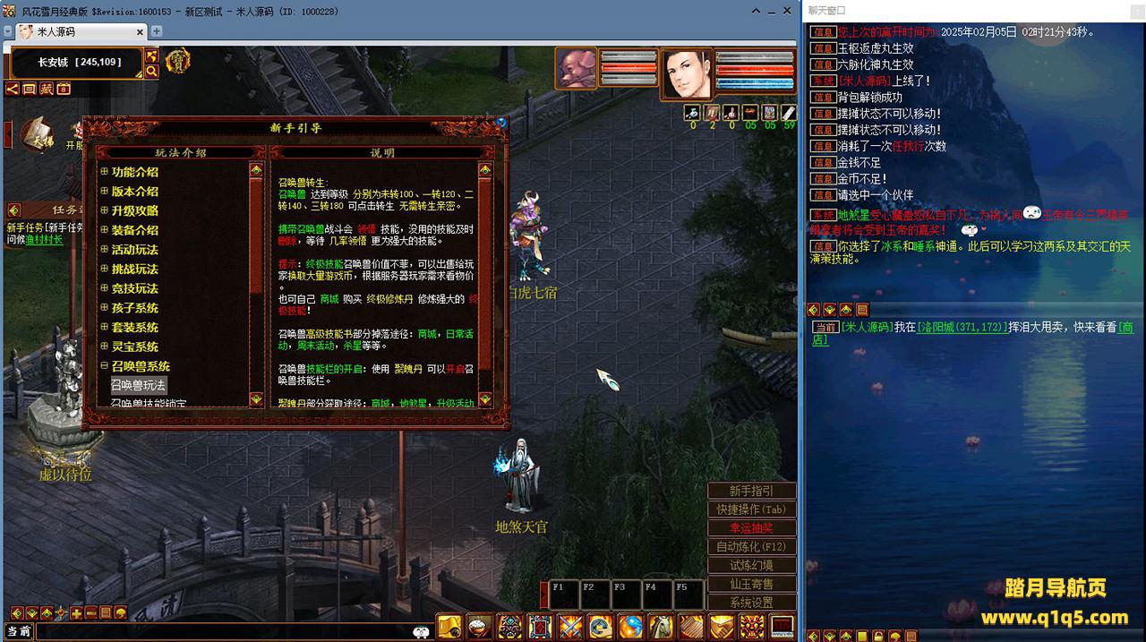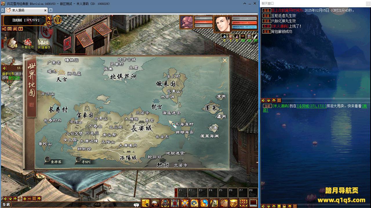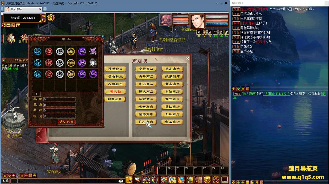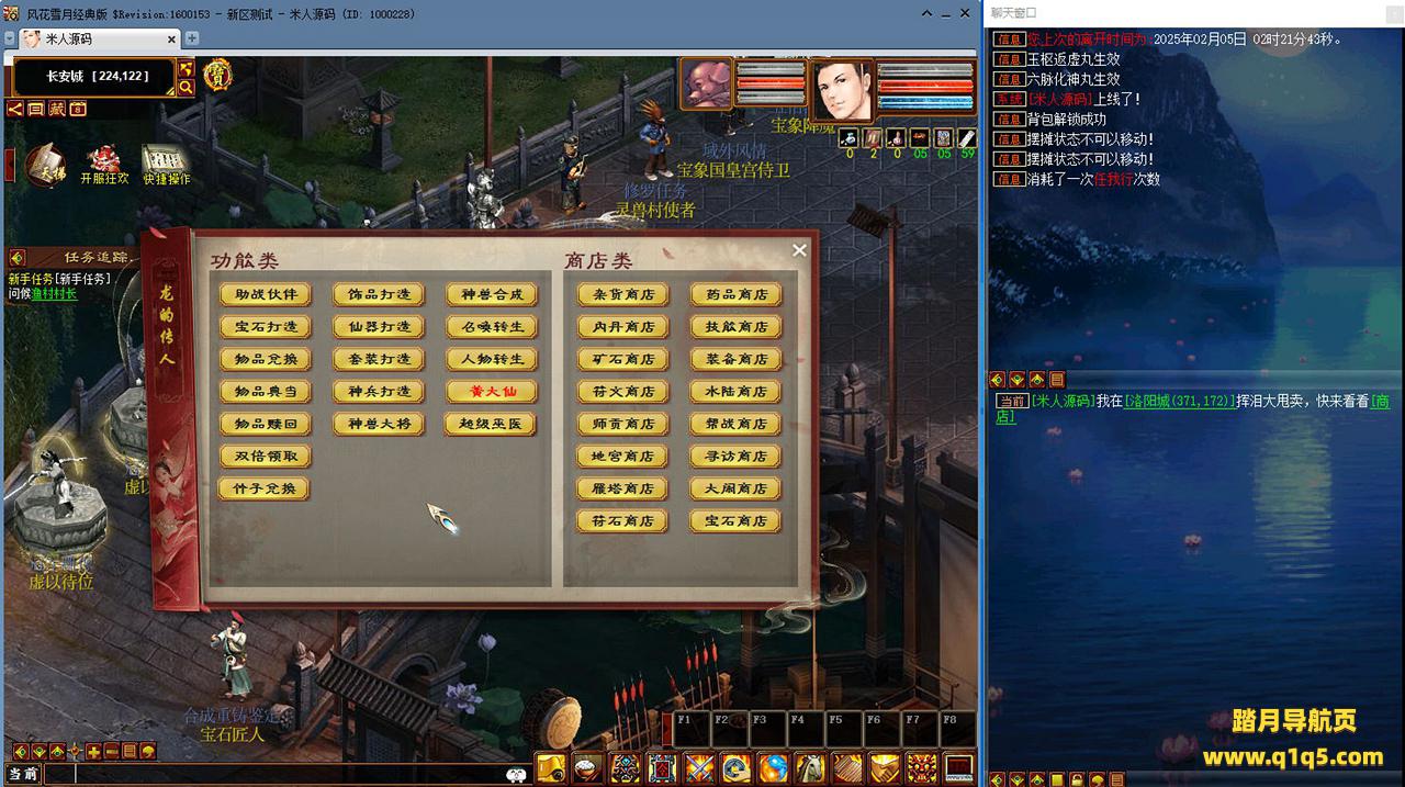 好了,下面我们来测试下游戏里的功能看看吧。摆摊的位置下来自己找找吧。好了,基本上就是这样了,其他的功能自行测试吧。更多的游戏资源可以访问www.q1q5.com下载,我们每款游戏资源均单独制作了独立的视频架设教程,让小白也可以快速上手游戏架设,快来体验自己做GM的乐趣吧!