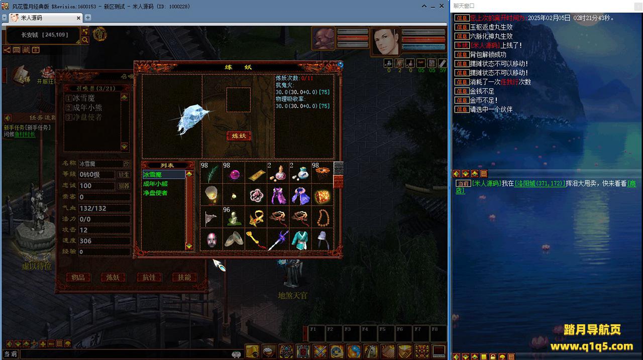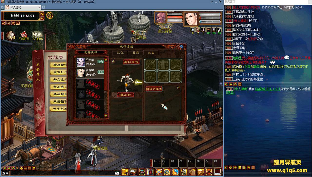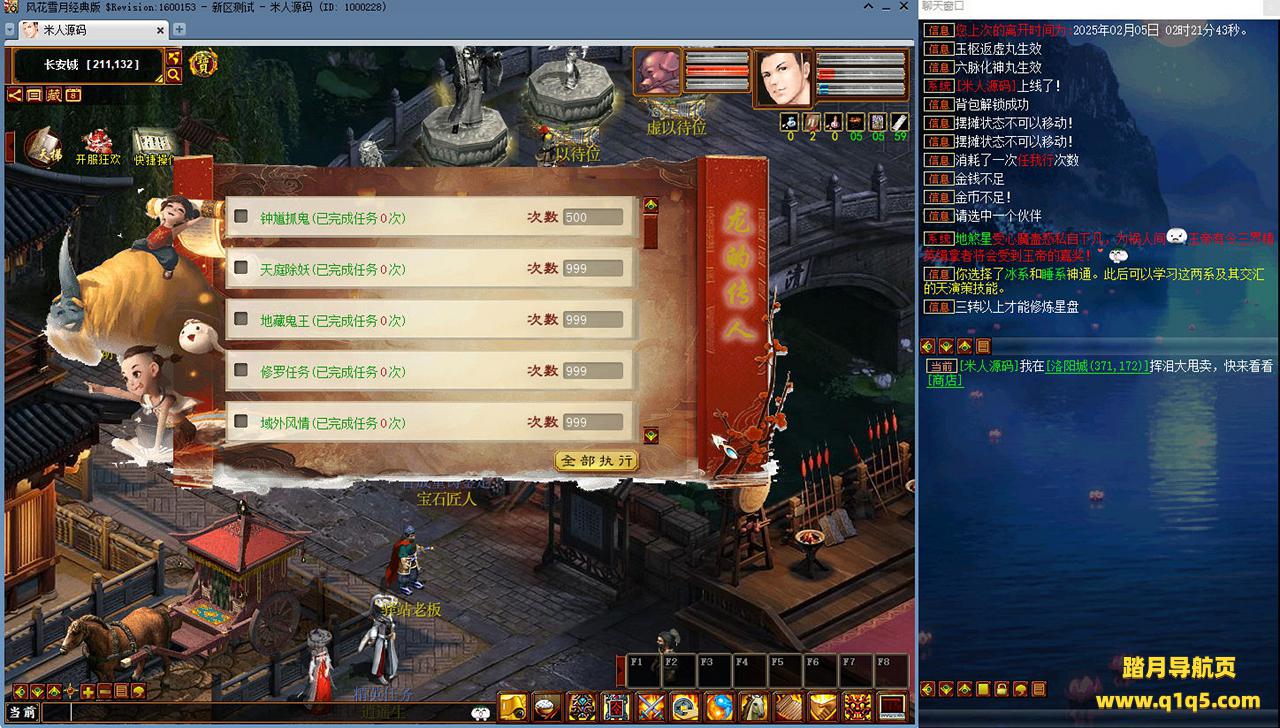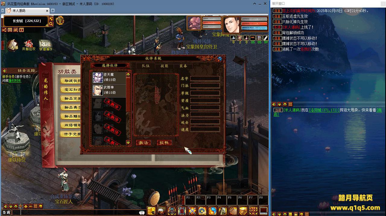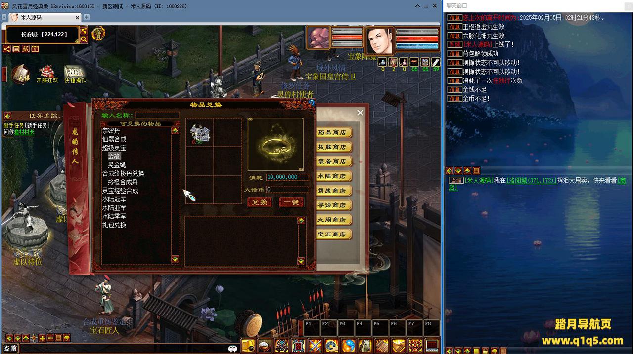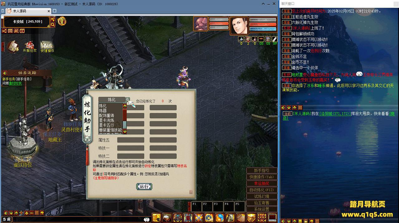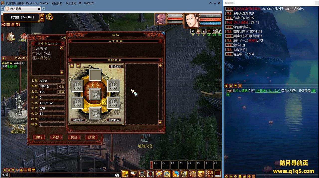 好了,下面我们来测试下游戏里的功能看看吧。摆摊的位置下来自己找找吧。好了,基本上就是这样了,其他的功能自行测试吧。更多的游戏资源可以访问www.q1q5.com下载,我们每款游戏资源均单独制作了独立的视频架设教程,让小白也可以快速上手游戏架设,快来体验自己做GM的乐趣吧!