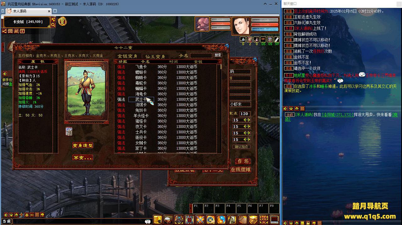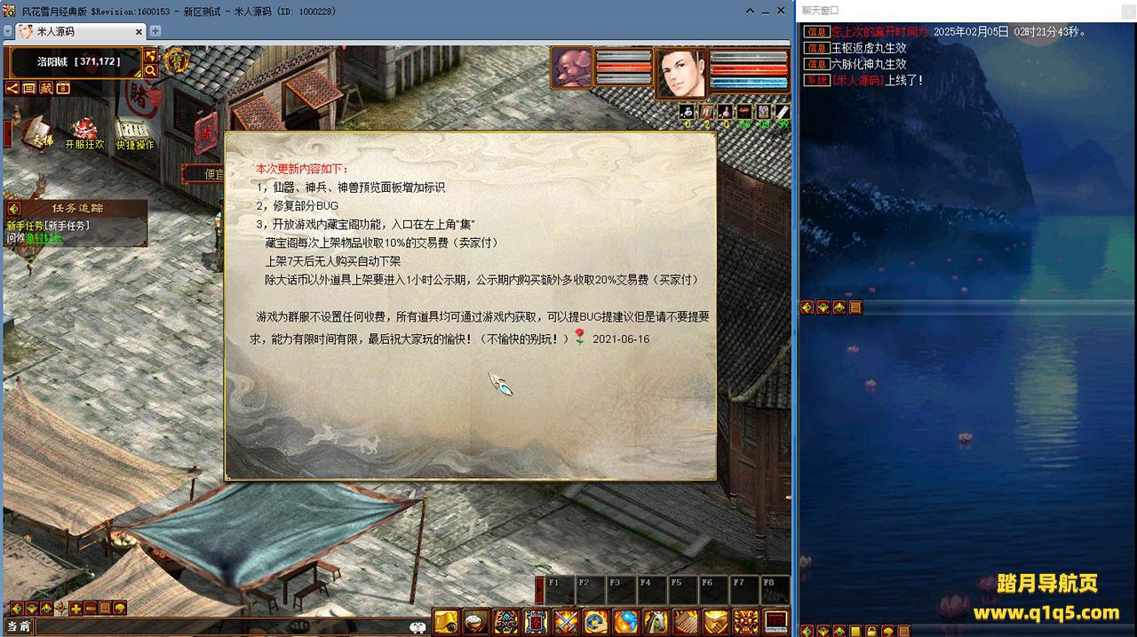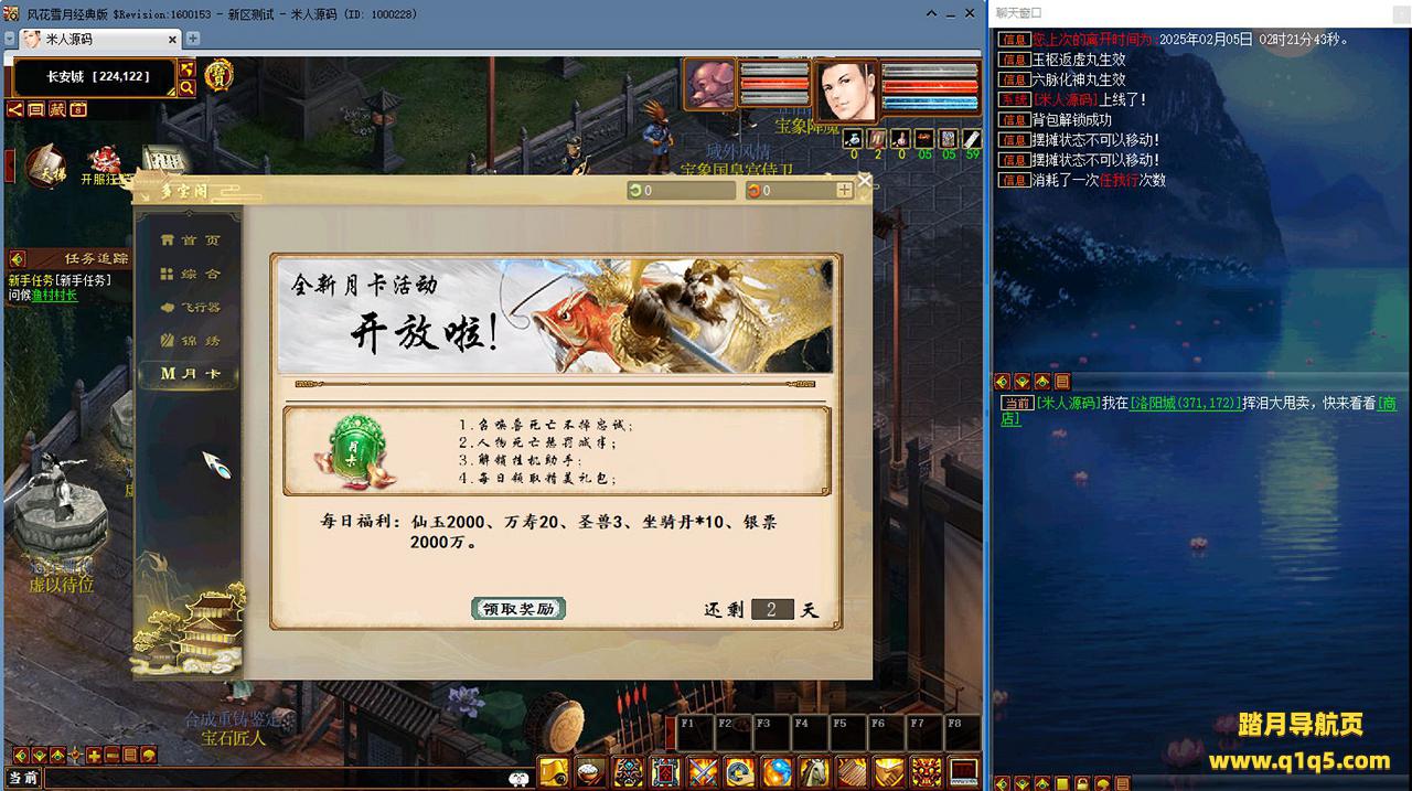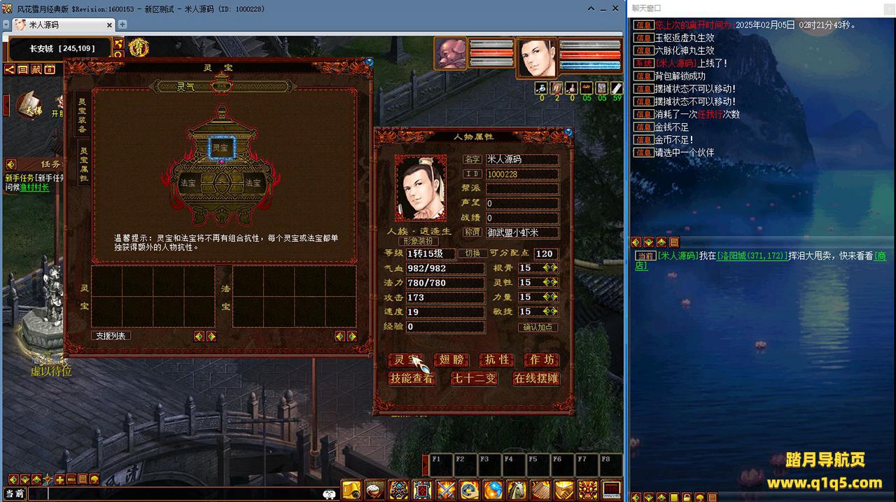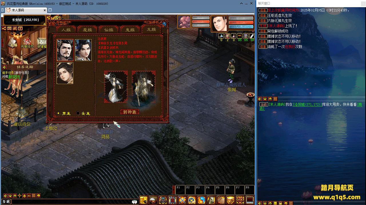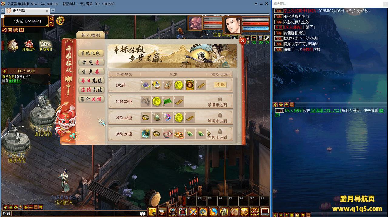 好了,下面我们来测试下游戏里的功能看看吧。摆摊的位置下来自己找找吧。好了,基本上就是这样了,其他的功能自行测试吧。更多的游戏资源可以访问www.q1q5.com下载,我们每款游戏资源均单独制作了独立的视频架设教程,让小白也可以快速上手游戏架设,快来体验自己做GM的乐趣吧!