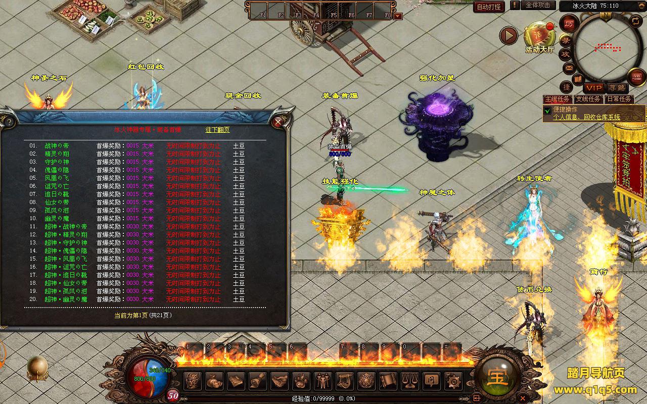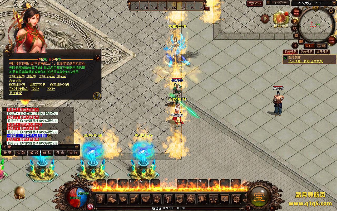 下面我们来测试下游戏里的功能看看。好了,其他功能就自行测试吧。更多的游戏资源可以访问www.q1q5.com下载,我们每款游戏资源均单独制作了独立的视频架设教程,让小白也可以快速上手游戏架设,快来体验自己做GM的乐趣吧!