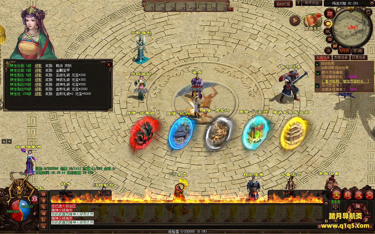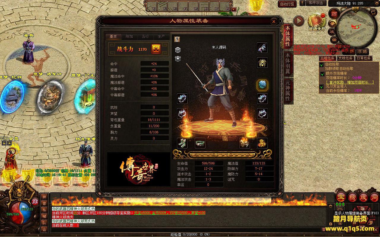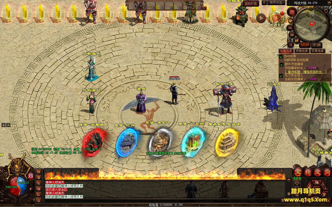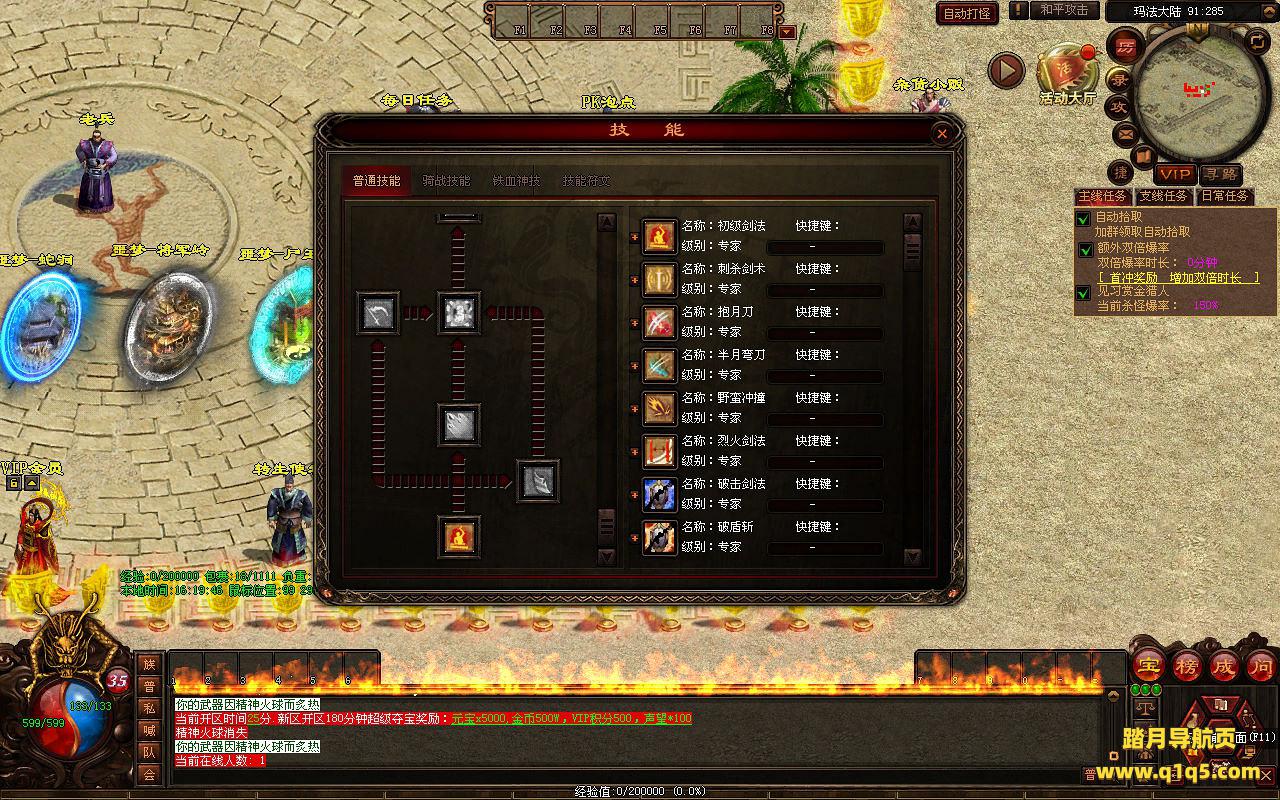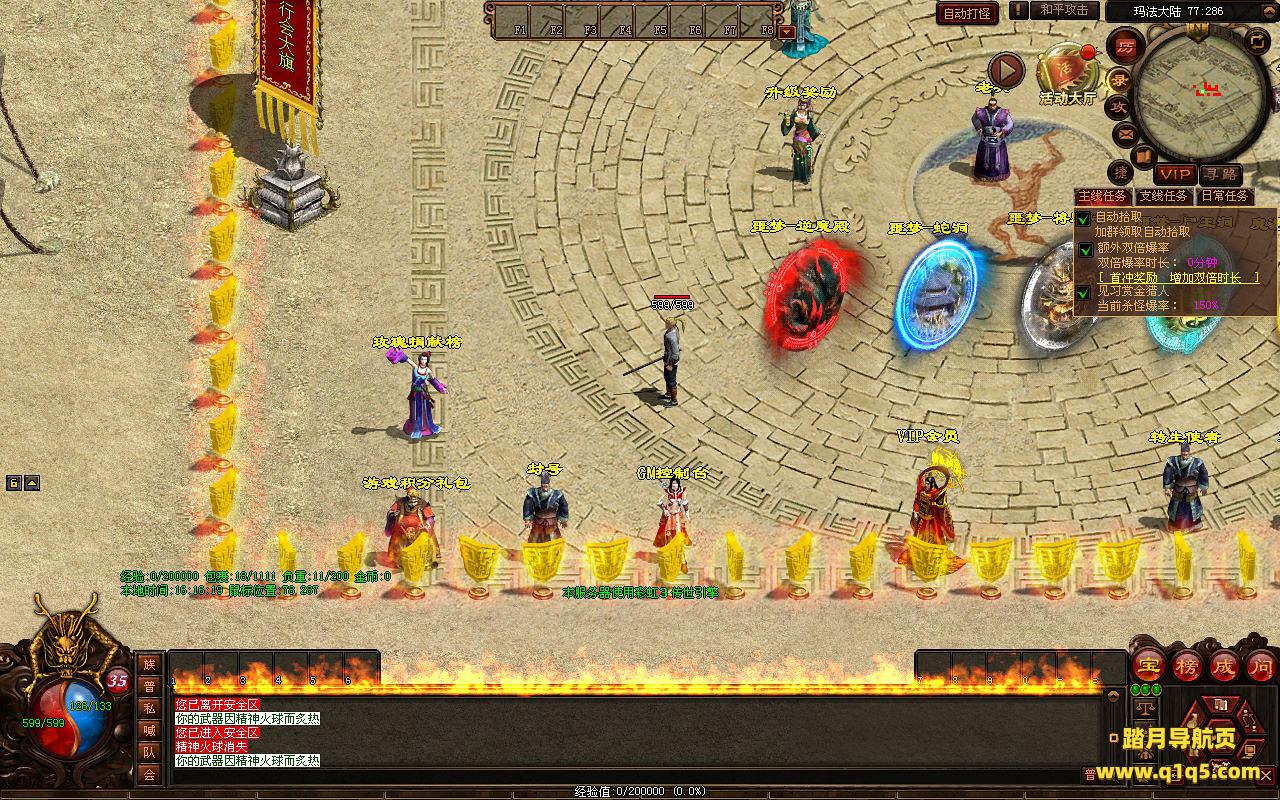 下面我们来测试下游戏里的功能看看。好了。其他功能就自行测试吧。更多的游戏资源可以访问www.q1q5.com下载,我们每款游戏资源均单独制作了独立的视频架设教程,让小白也可以快速上手游戏架设,快来体验自己做GM的乐趣吧。