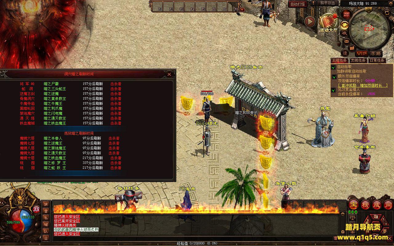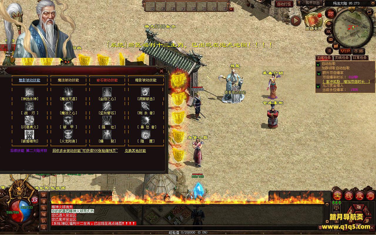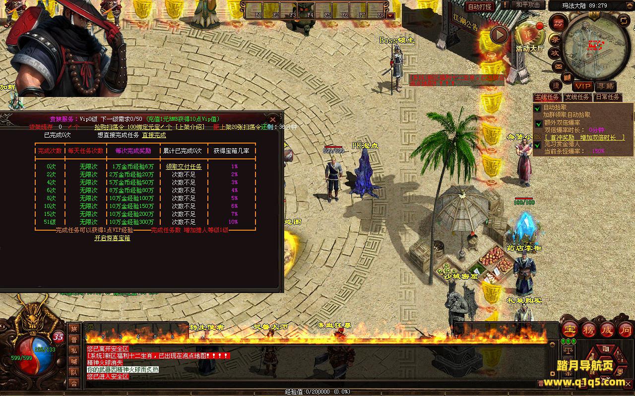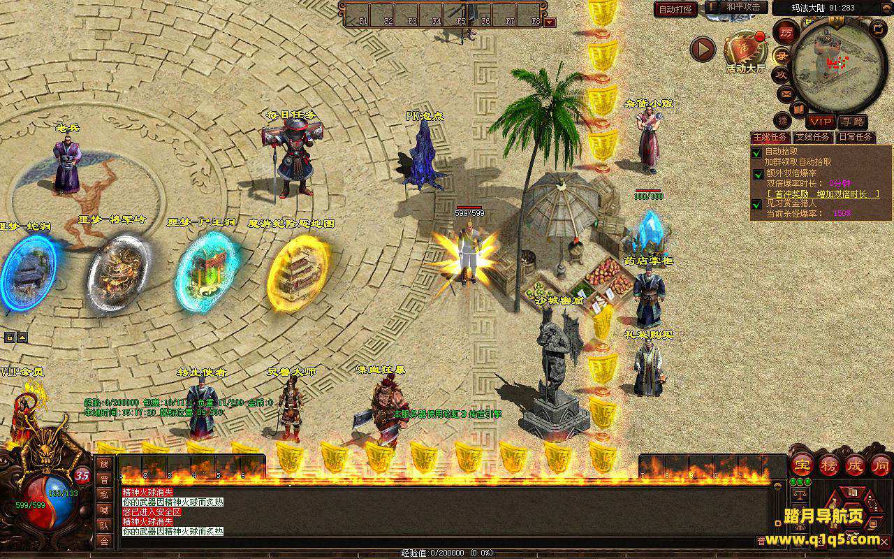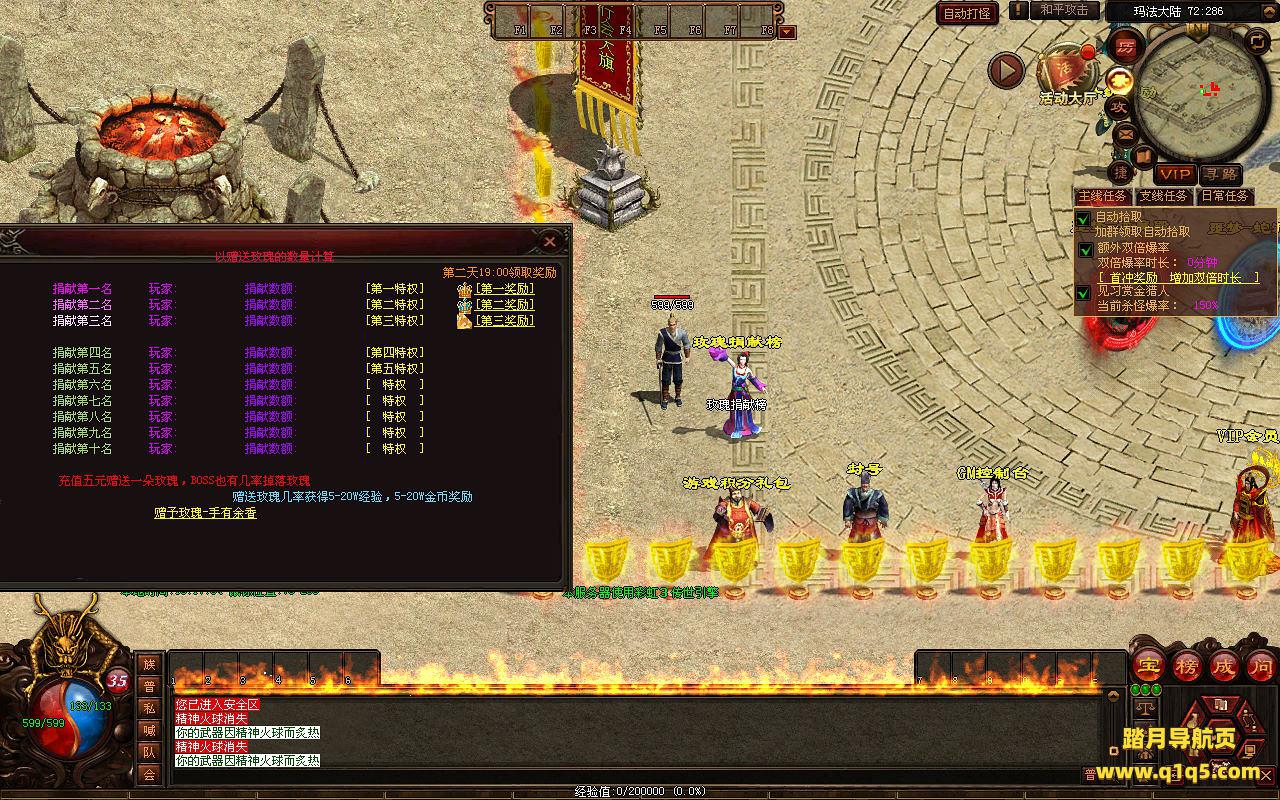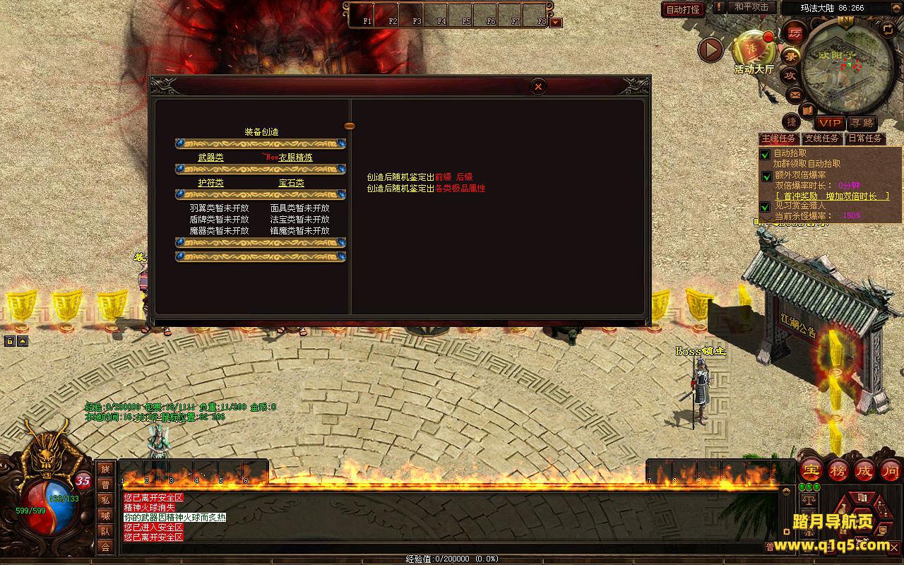 下面我们来测试下游戏里的功能看看。好了。其他功能就自行测试吧。更多的游戏资源可以访问www.q1q5.com下载,我们每款游戏资源均单独制作了独立的视频架设教程,让小白也可以快速上手游戏架设,快来体验自己做GM的乐趣吧。