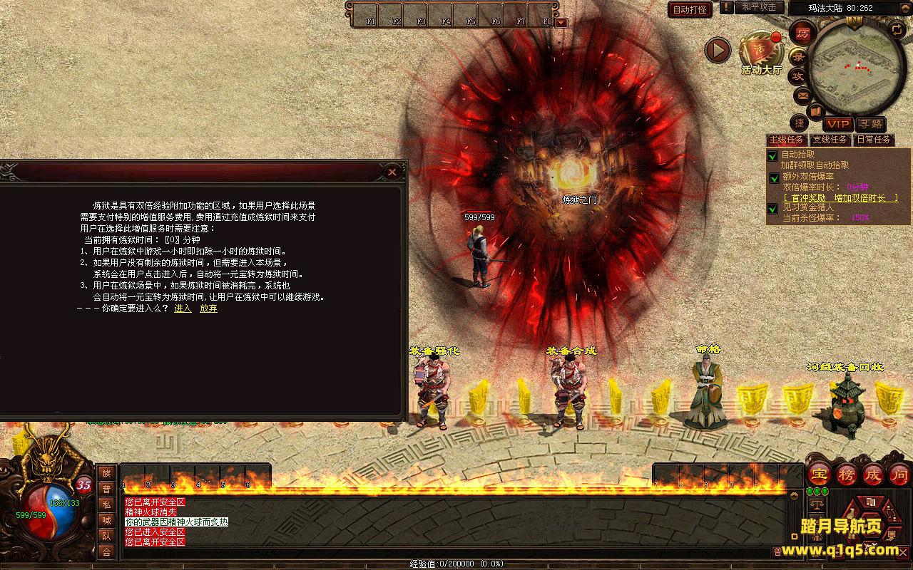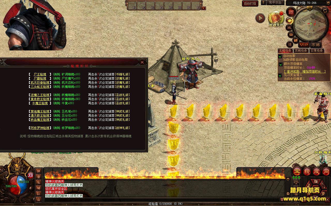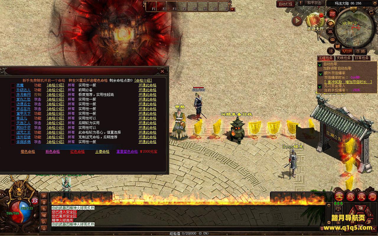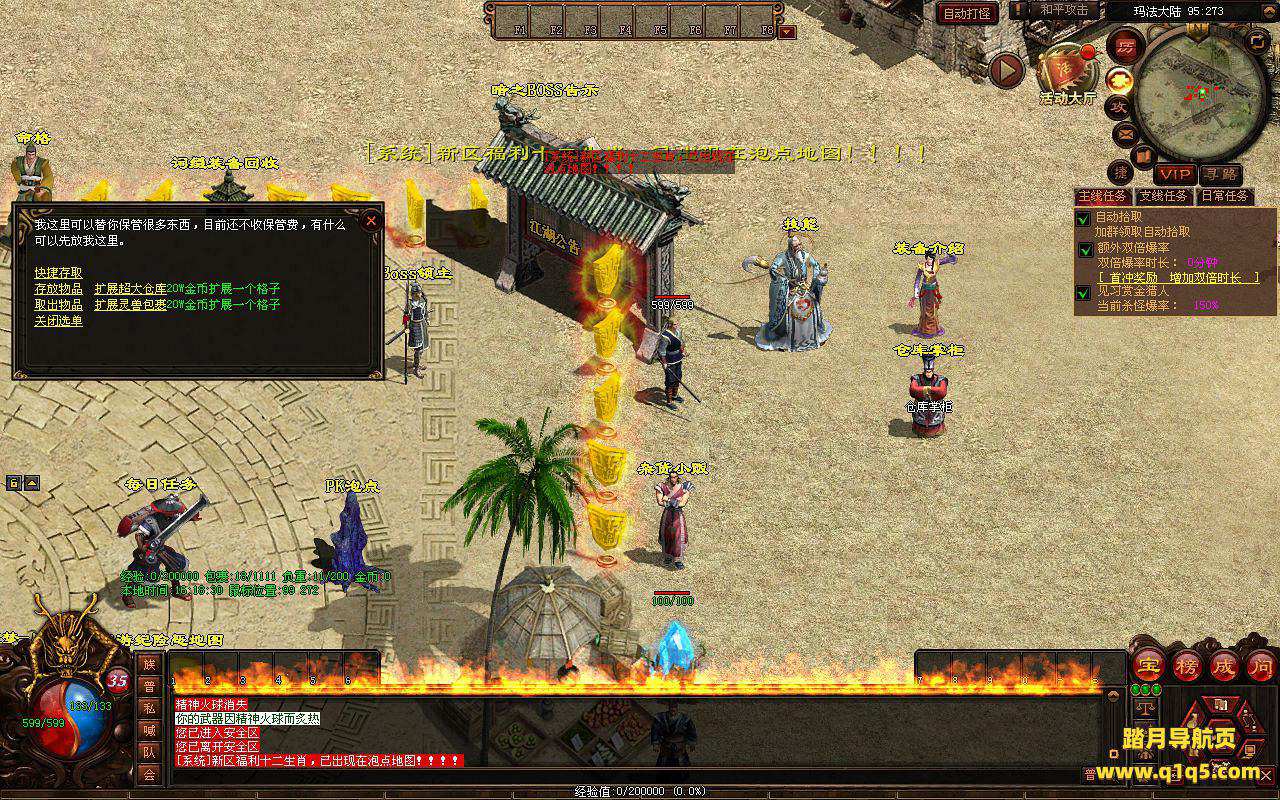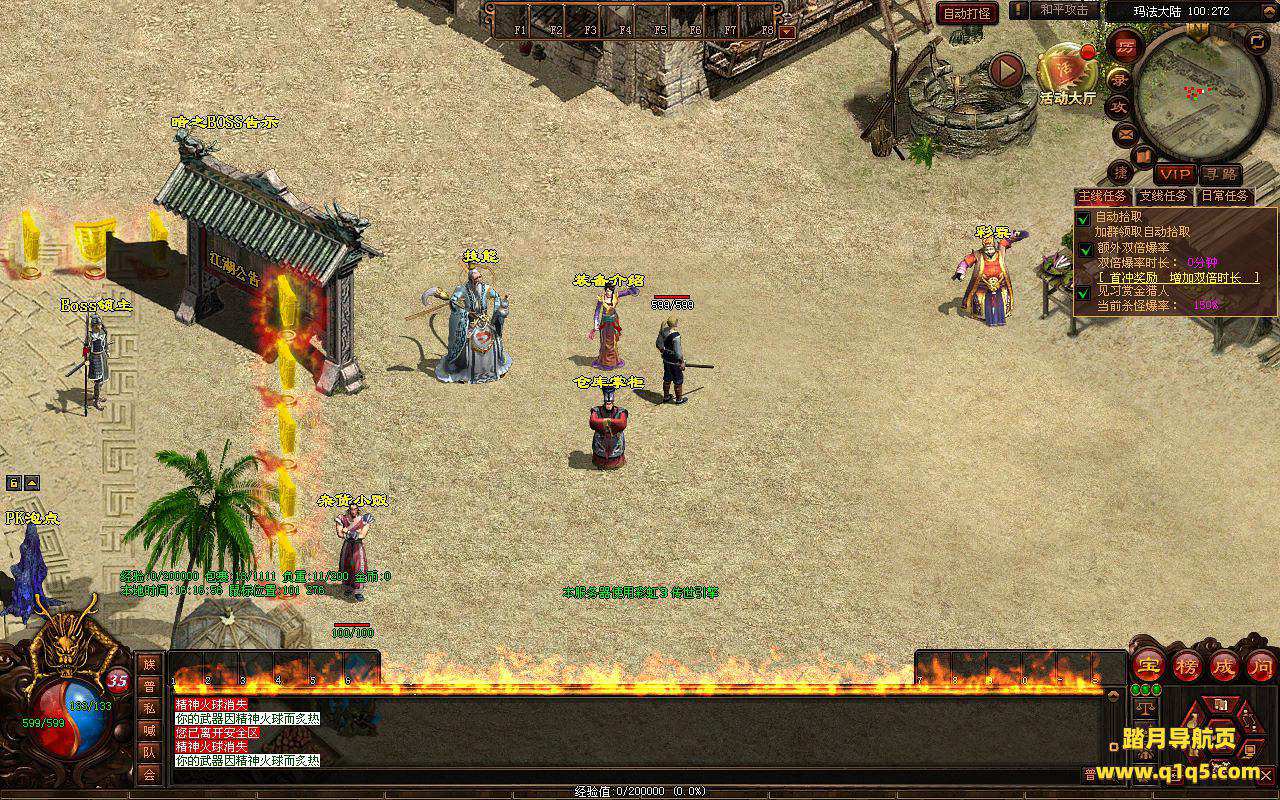 下面我们来测试下游戏里的功能看看。好了。其他功能就自行测试吧。更多的游戏资源可以访问www.q1q5.com下载,我们每款游戏资源均单独制作了独立的视频架设教程,让小白也可以快速上手游戏架设,快来体验自己做GM的乐趣吧。