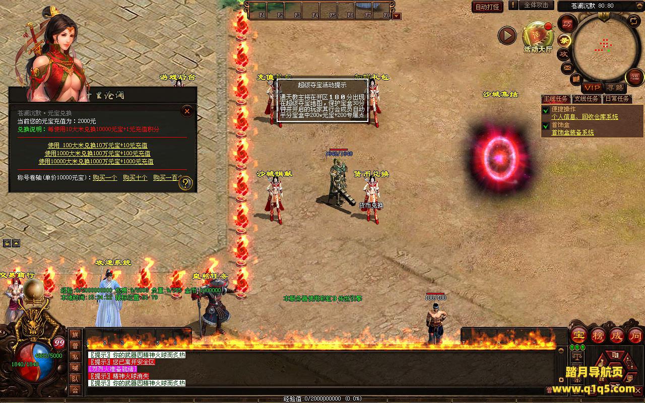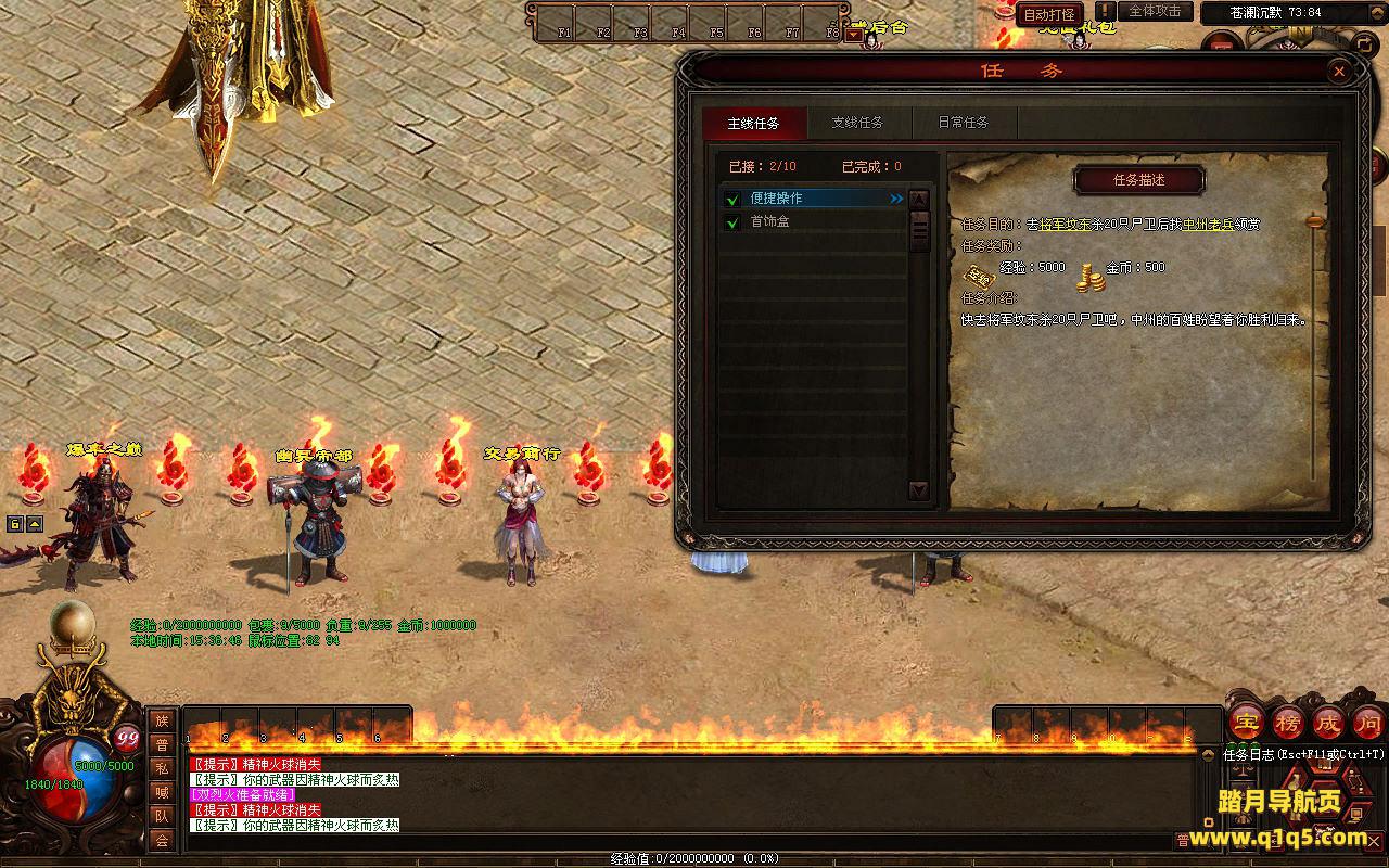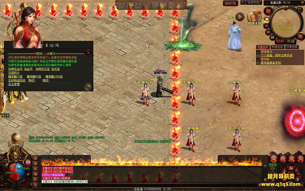 下面我们来测试下游戏里的功能看看。好了,其他功能就自行测试吧。更多的游戏资源可以访问www.q1q5.com下载,我们每款游戏资源均单独制作了独立的视频架设教程,让小白也可以快速上手游戏架设,快来体验自己做GM的乐趣吧!
