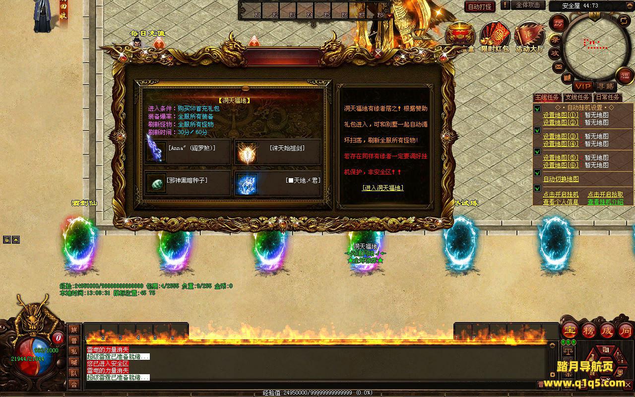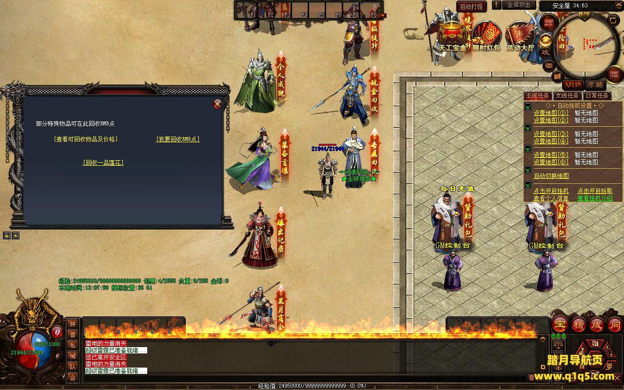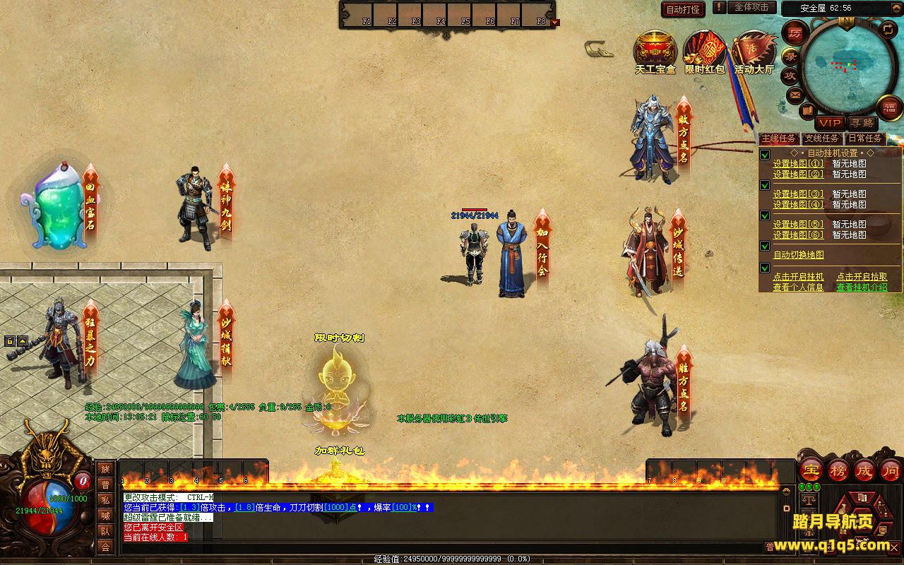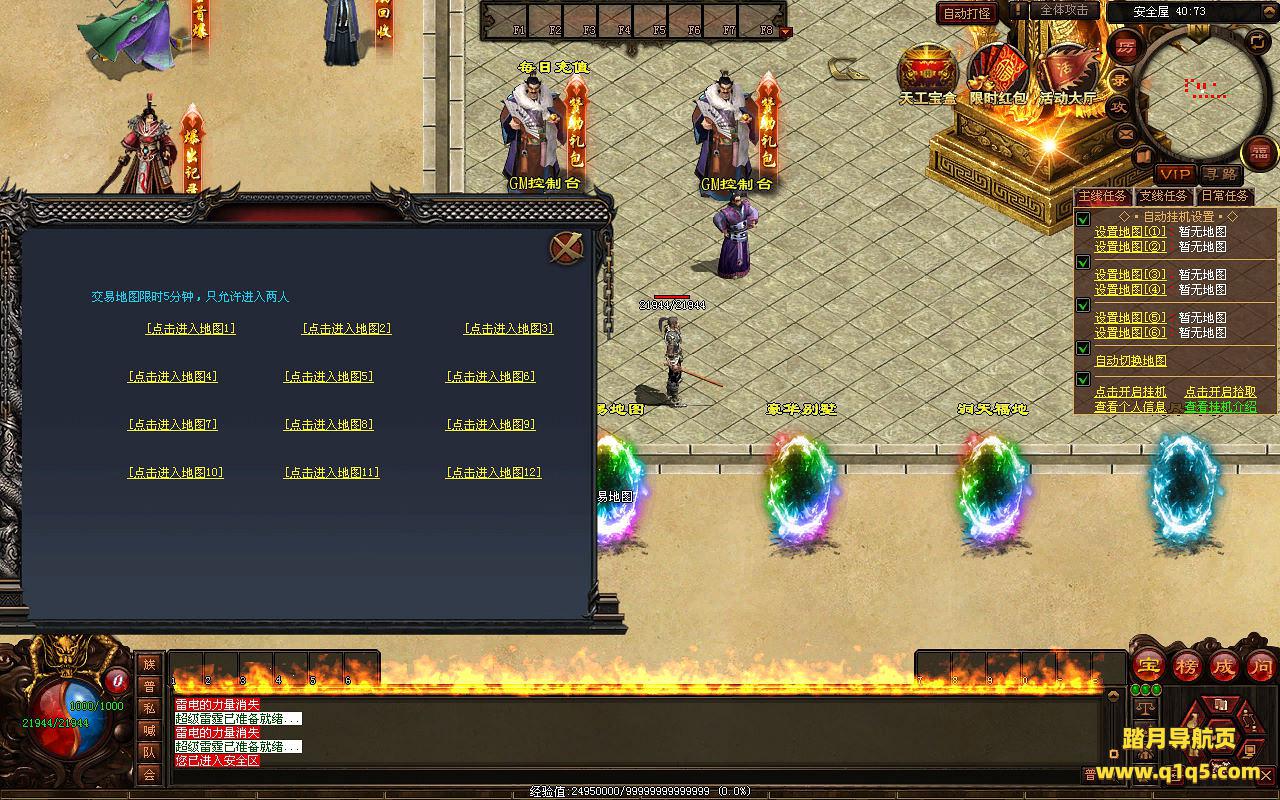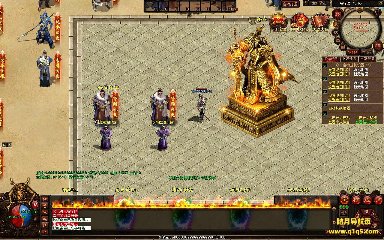 下面我们来测试下游戏里的功能看看。好了,其他功能就自行测试吧。更多的游戏资源可以访问www.q1q5.com下载,我们每款游戏资源均单独制作了独立的视频架设教程,让小白也可以快速上手游戏架设,快来体验自己做GM的乐趣吧!