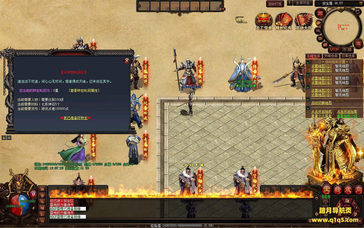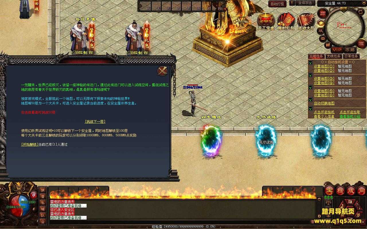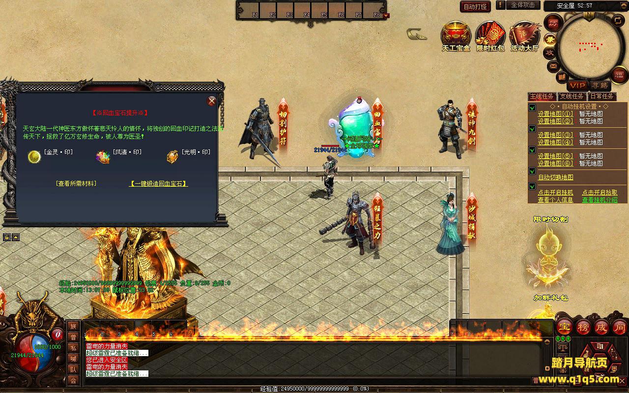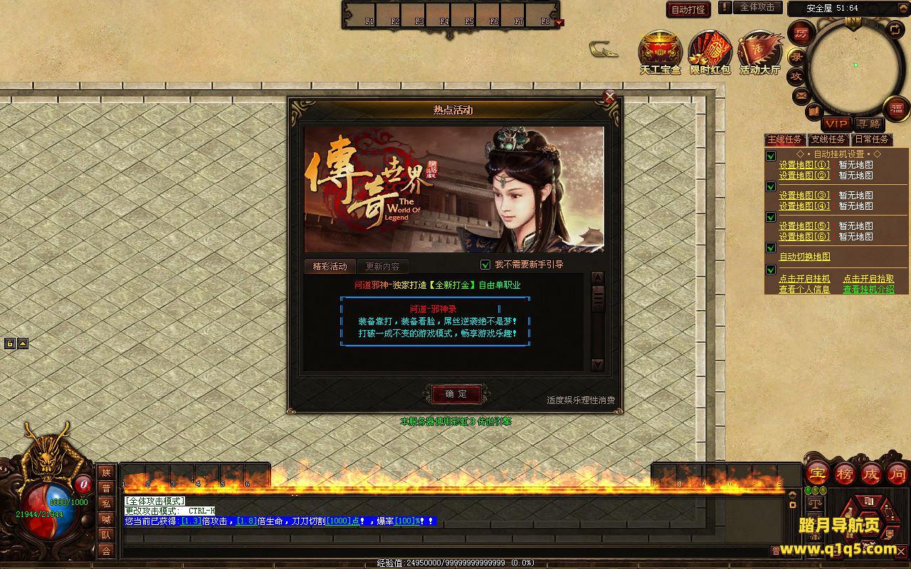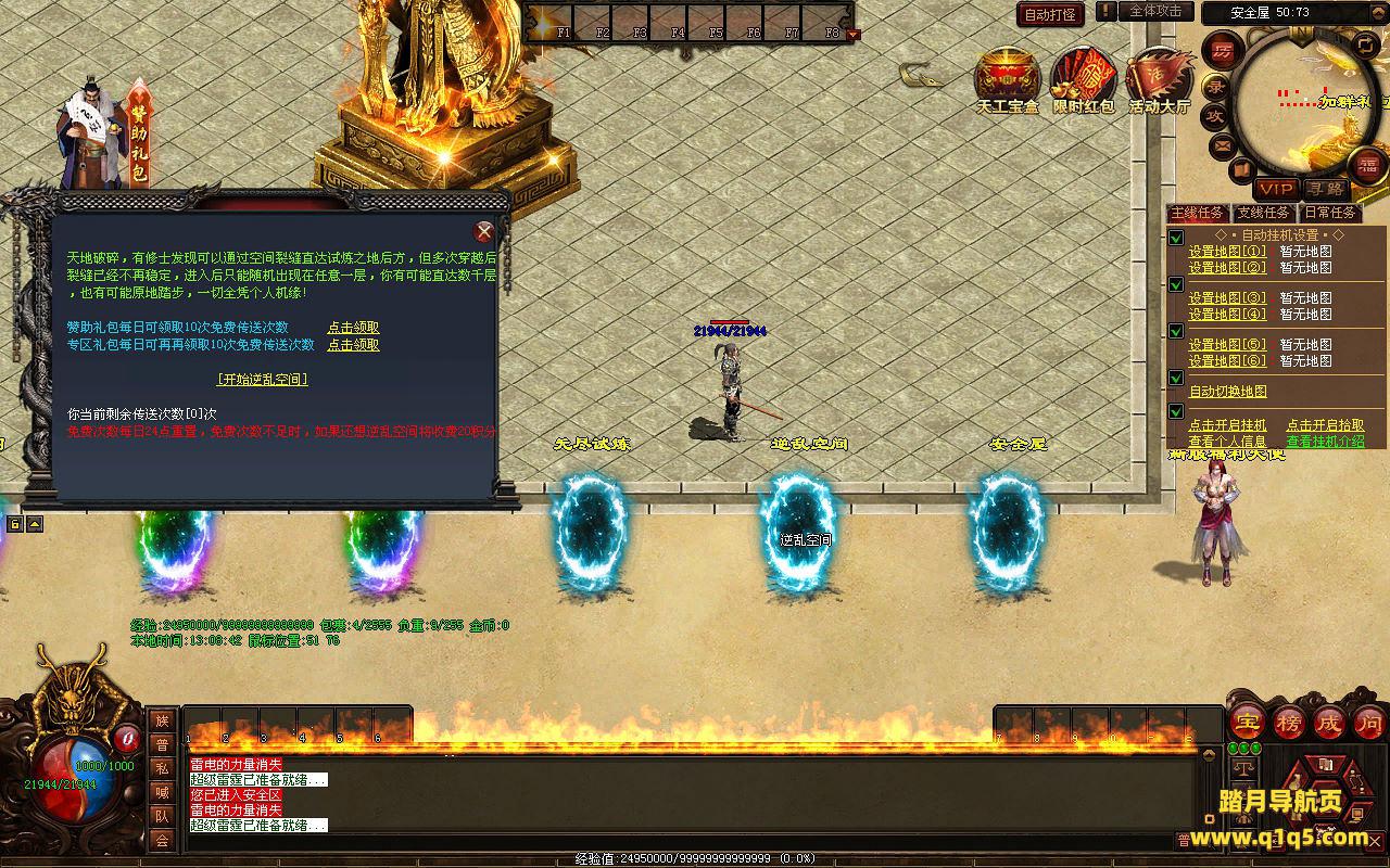 下面我们来测试下游戏里的功能看看。好了,其他功能就自行测试吧。更多的游戏资源可以访问www.q1q5.com下载,我们每款游戏资源均单独制作了独立的视频架设教程,让小白也可以快速上手游戏架设,快来体验自己做GM的乐趣吧!