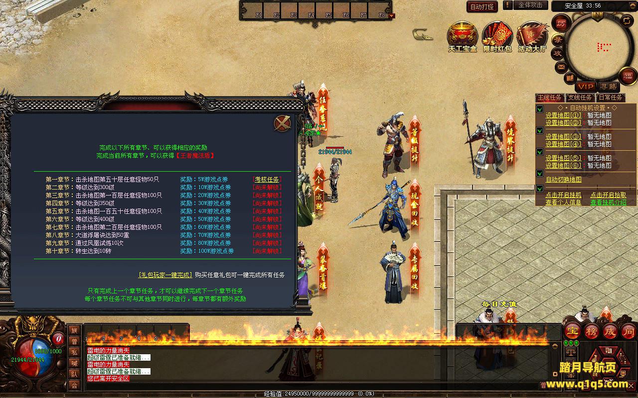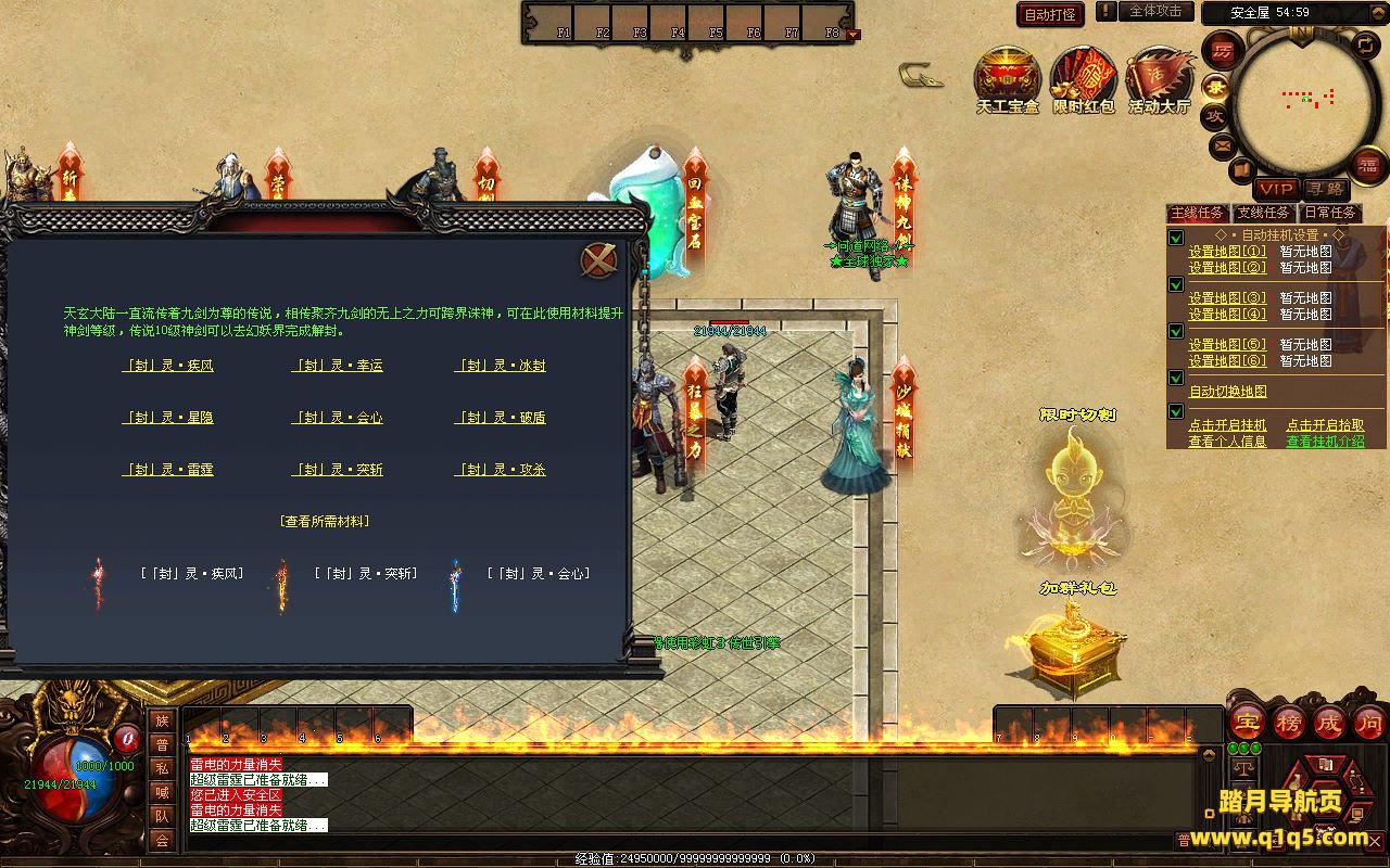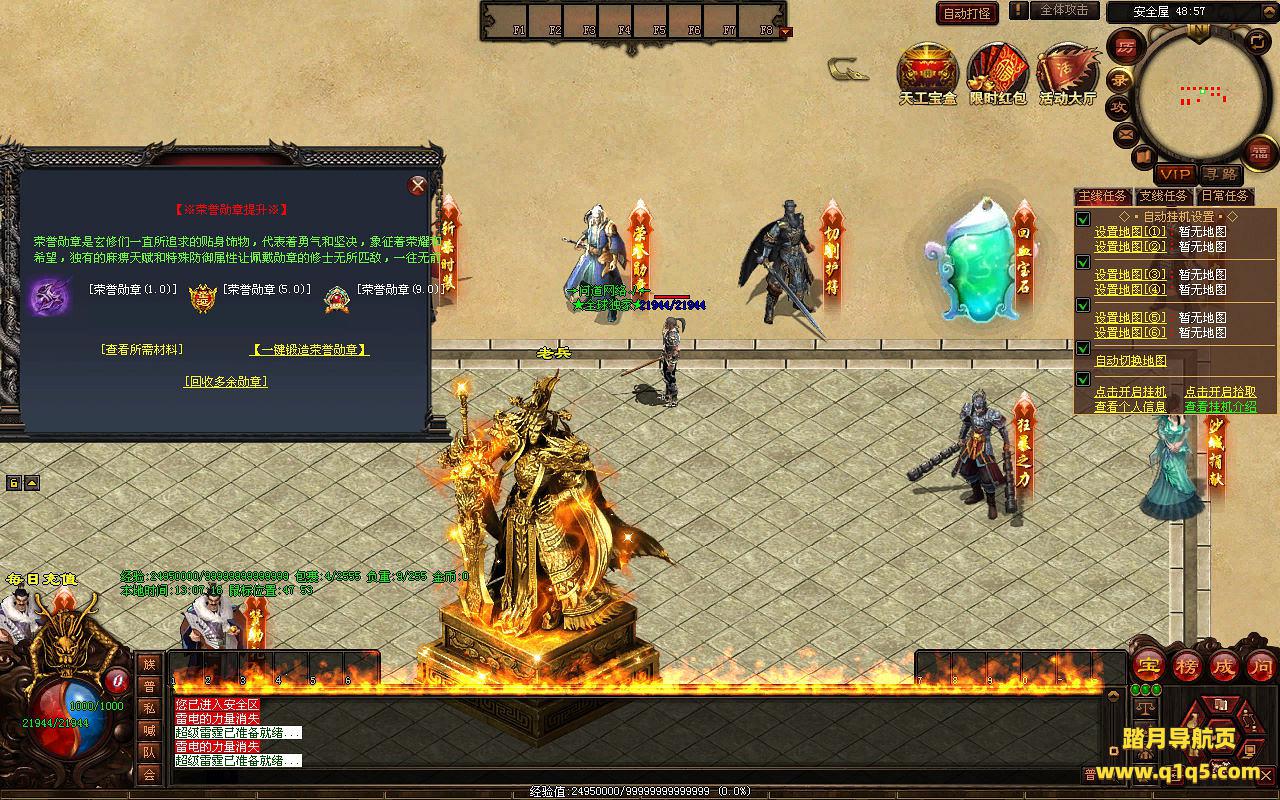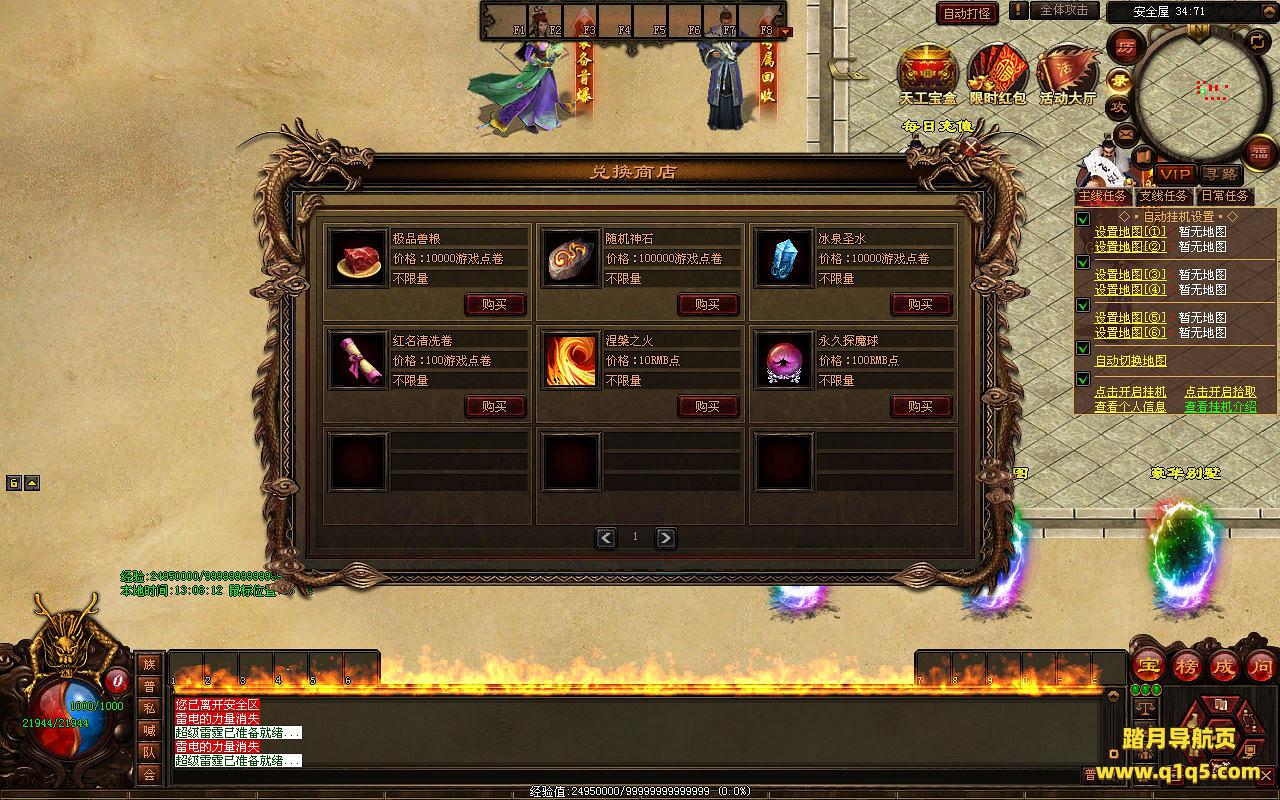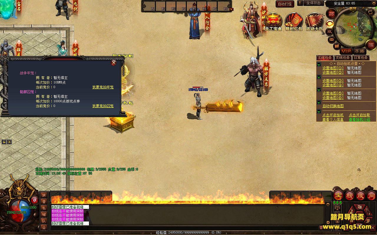 下面我们来测试下游戏里的功能看看。好了,其他功能就自行测试吧。更多的游戏资源可以访问www.q1q5.com下载,我们每款游戏资源均单独制作了独立的视频架设教程,让小白也可以快速上手游戏架设,快来体验自己做GM的乐趣吧!