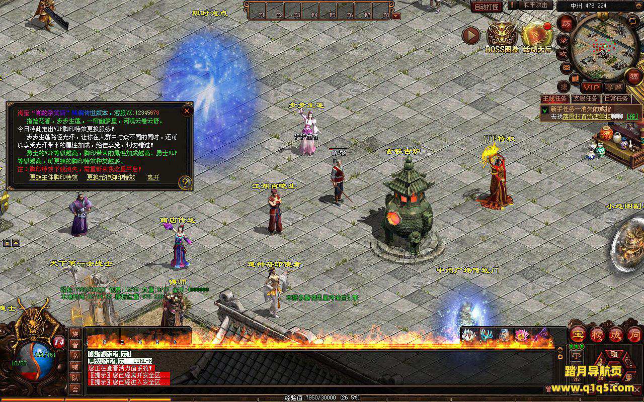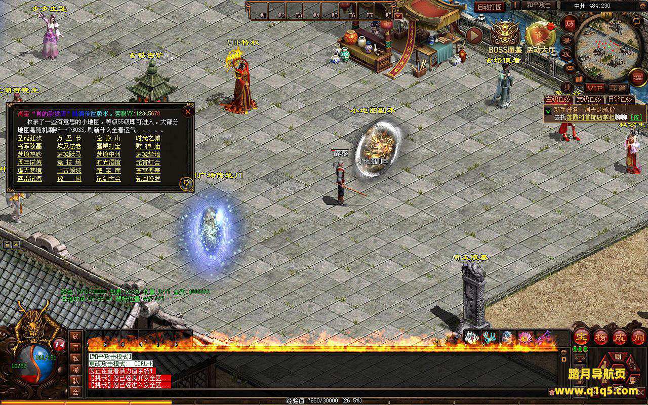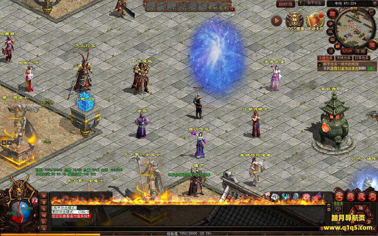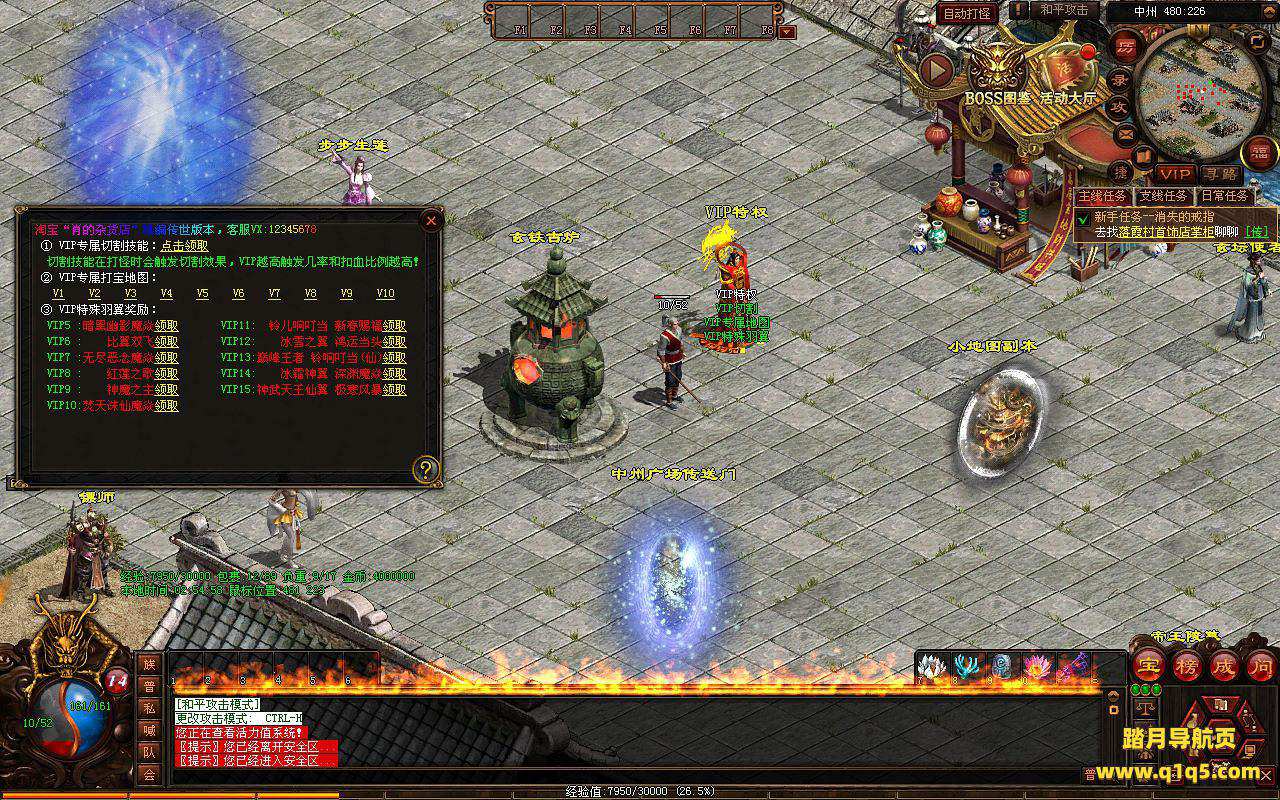 下面我们进入游戏测试看看。好了,其他功能就自行测试吧。更多的游戏资源可以访问www.q1q5.com下载,我们每款游戏资源均单独制作了独立的视频架设教程,让小白也可以快速上手游戏架设,快来体验自己做GM的乐趣吧!