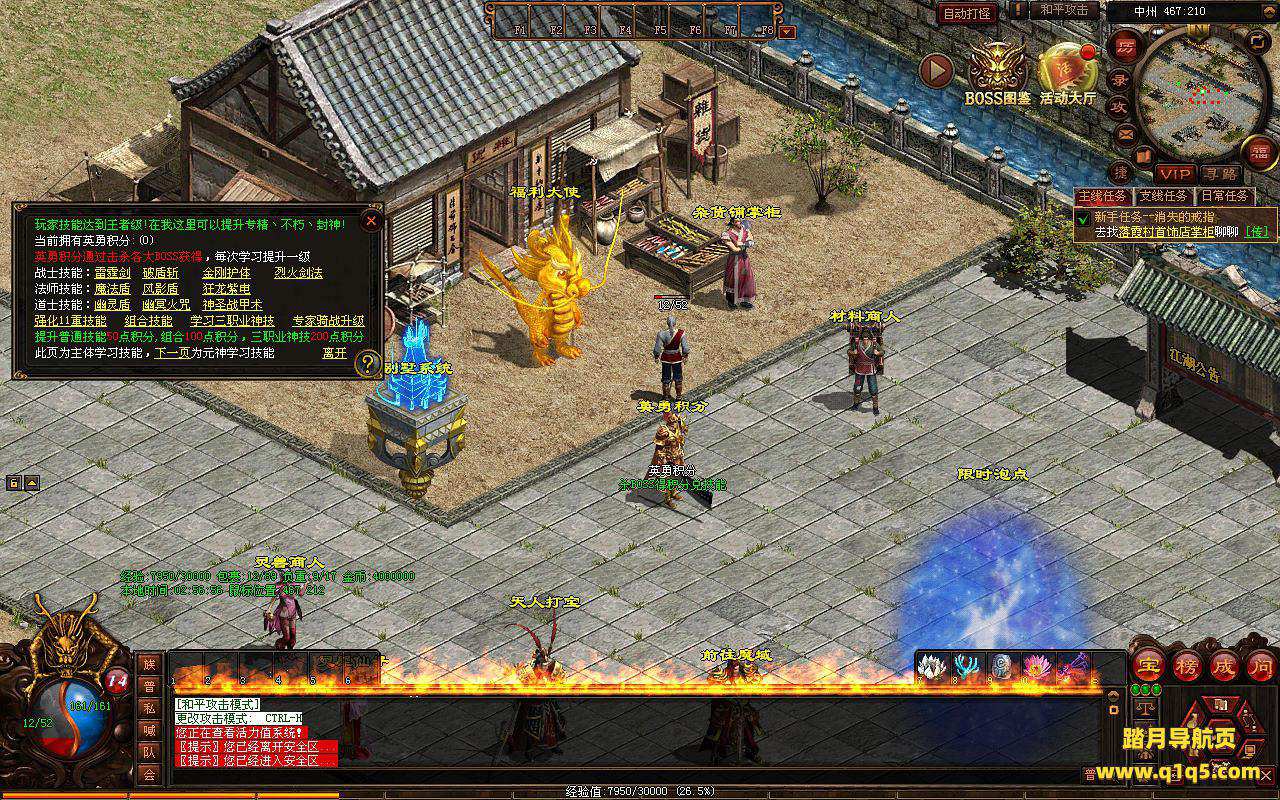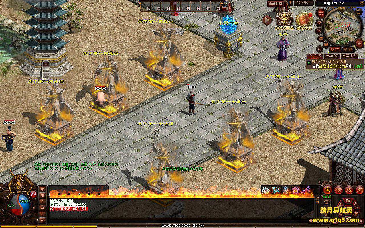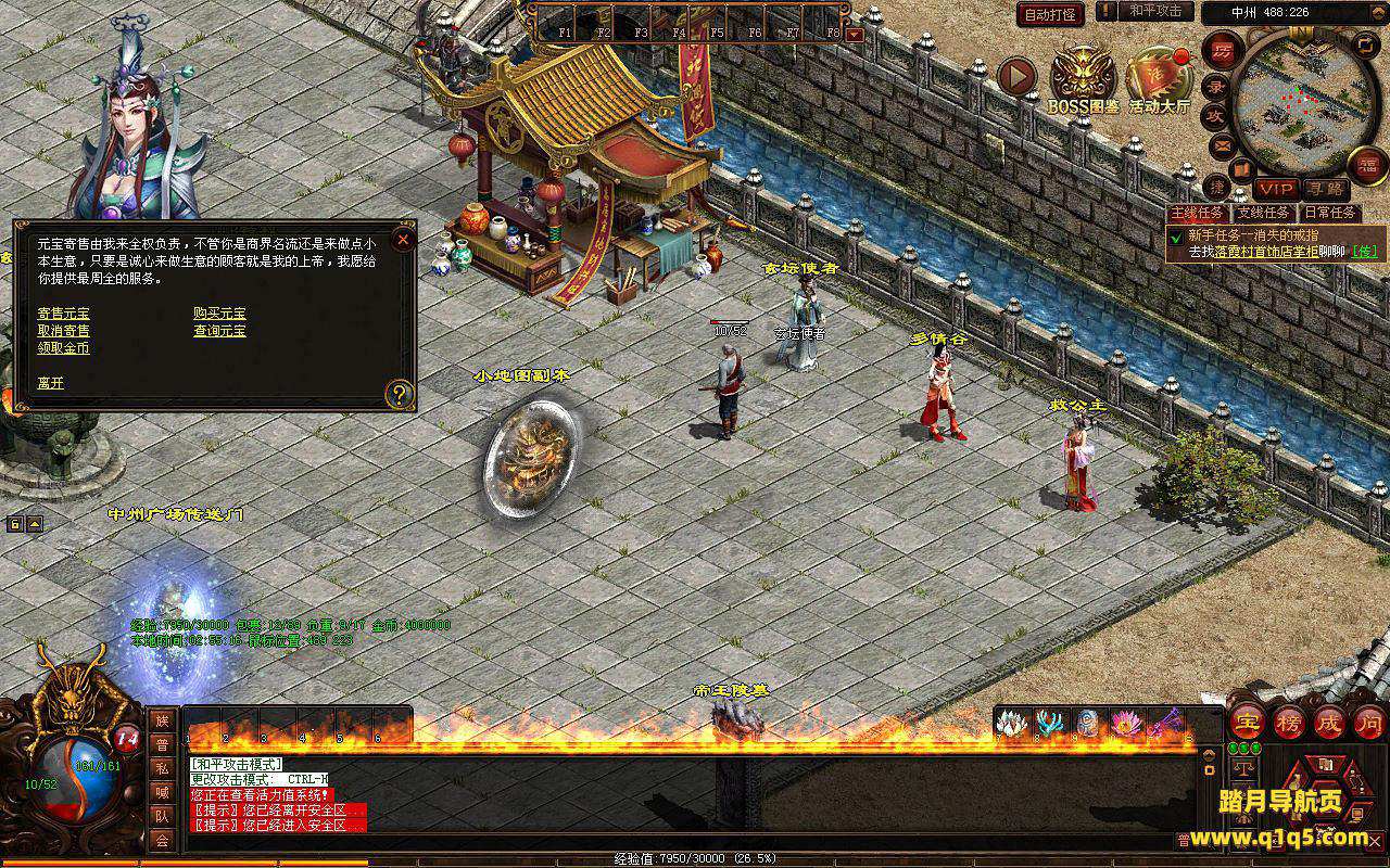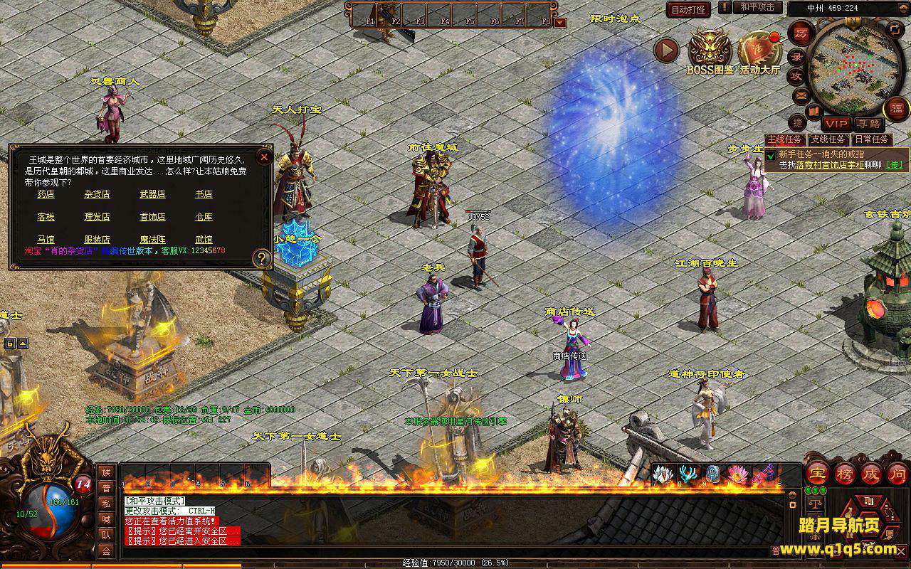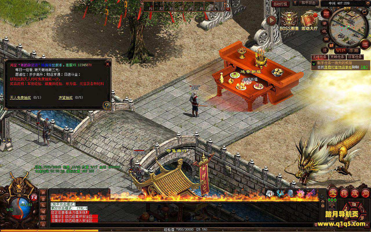 下面我们进入游戏测试看看。好了,其他功能就自行测试吧。更多的游戏资源可以访问www.q1q5.com下载,我们每款游戏资源均单独制作了独立的视频架设教程,让小白也可以快速上手游戏架设,快来体验自己做GM的乐趣吧!
