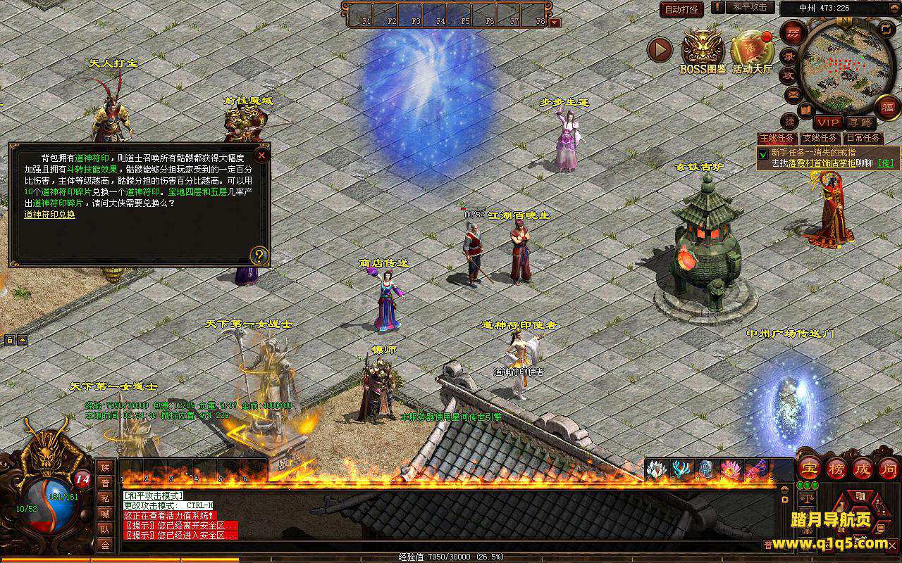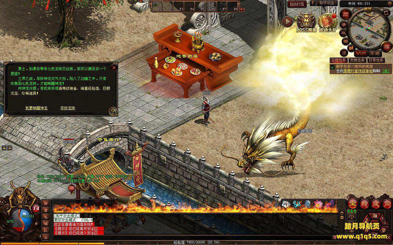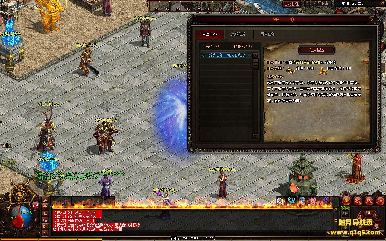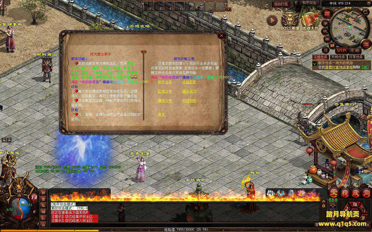 下面我们进入游戏测试看看。好了,其他功能就自行测试吧。更多的游戏资源可以访问www.q1q5.com下载,我们每款游戏资源均单独制作了独立的视频架设教程,让小白也可以快速上手游戏架设,快来体验自己做GM的乐趣吧!