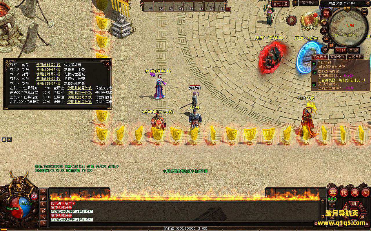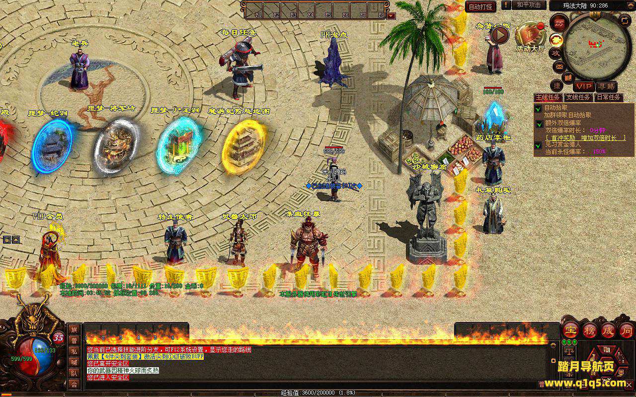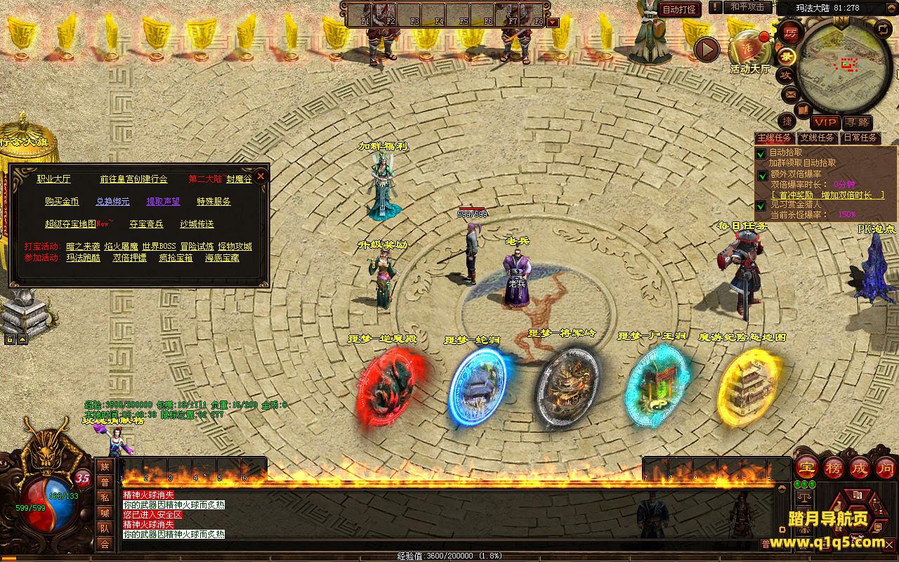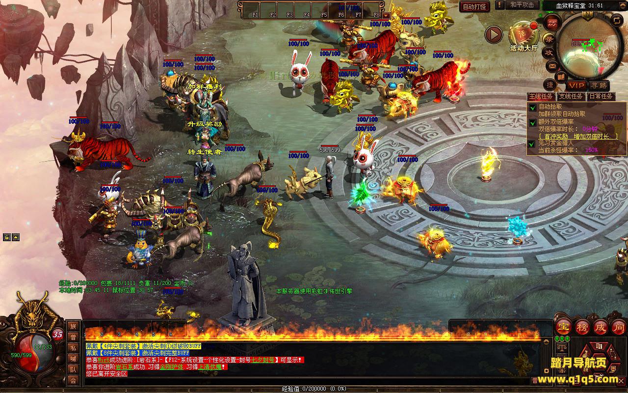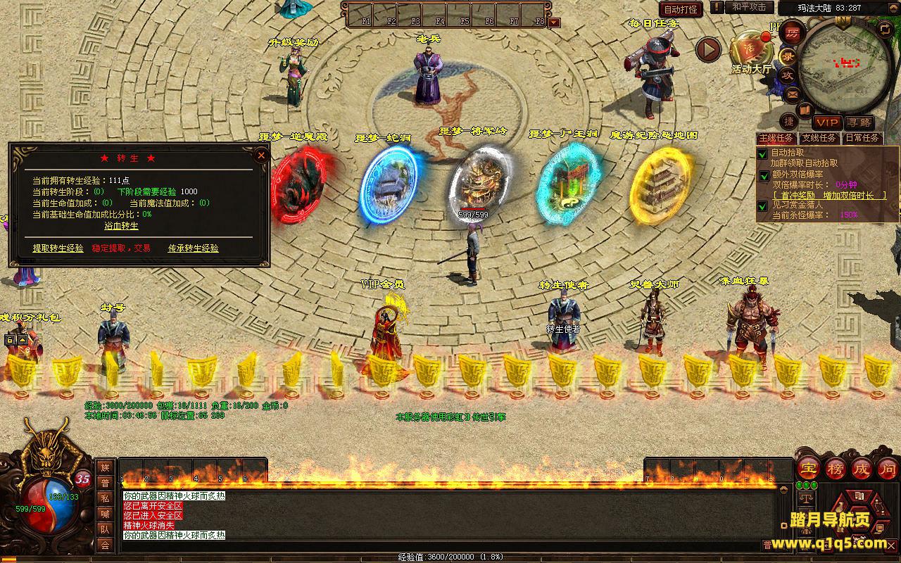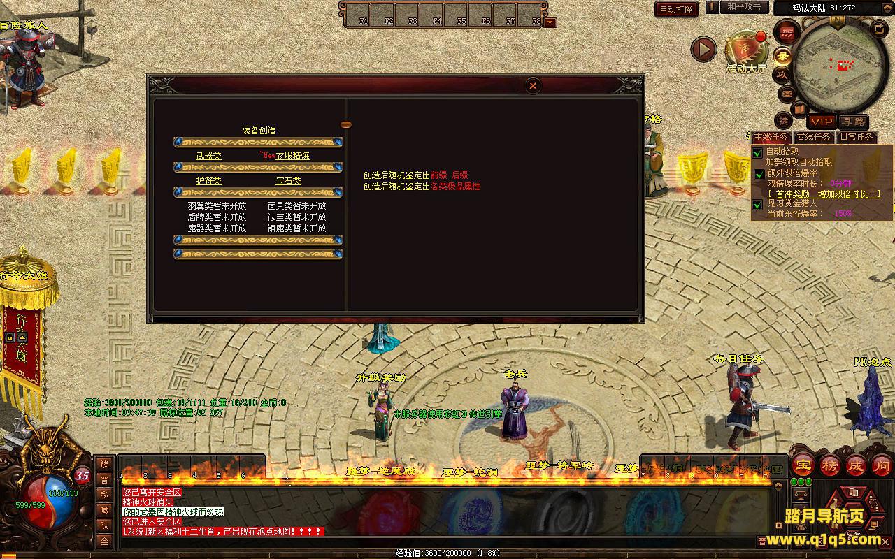 下面我们进入游戏测试看看游戏里的功能。好了,其他功能就自行测试吧。更多的游戏资源可以访问www.q1q5.com下载,我们每款游戏资源均单独制作了独立的视频架设教程,让小白也可以快速上手游戏架设,快来体验自己做GM的乐趣吧!