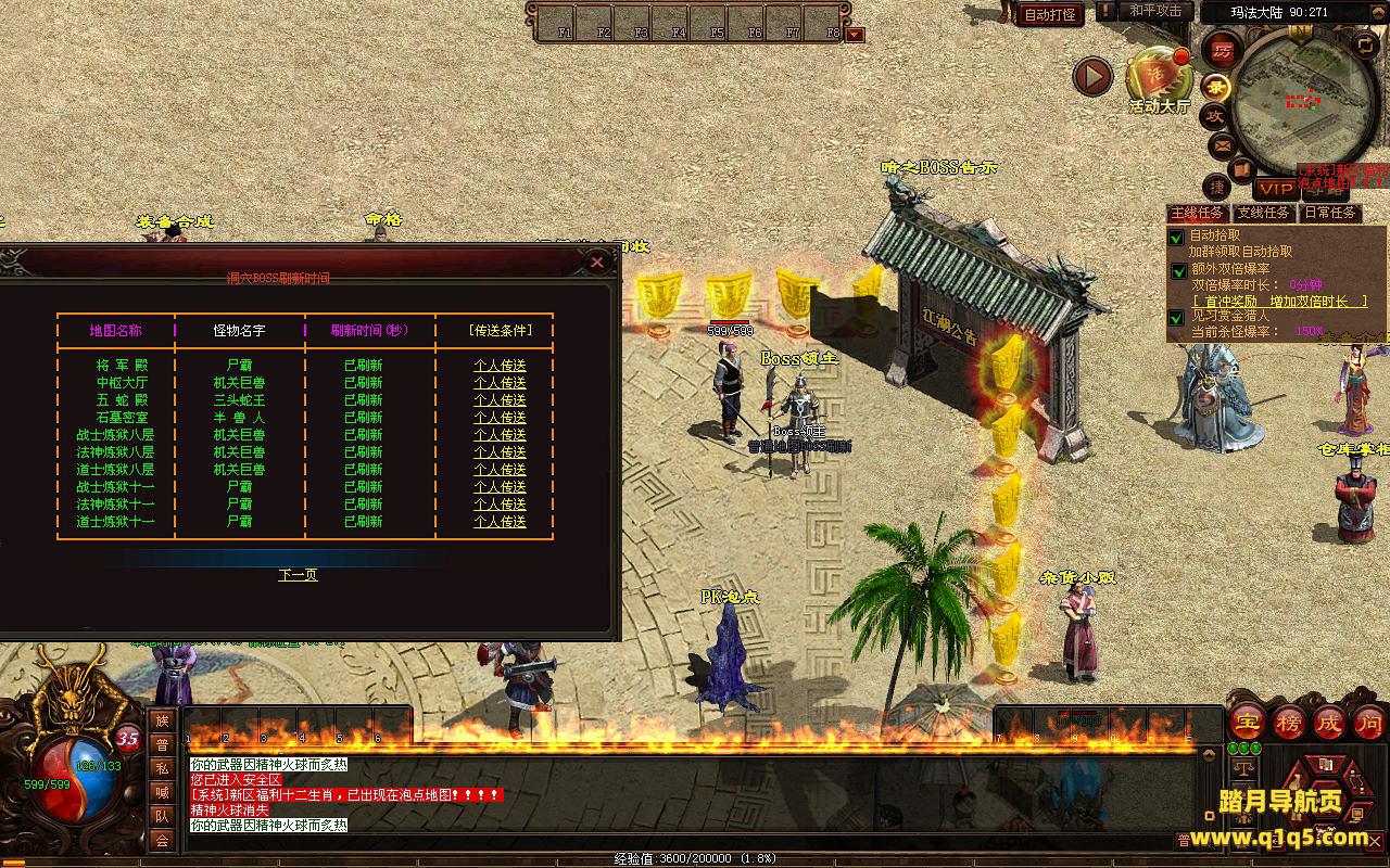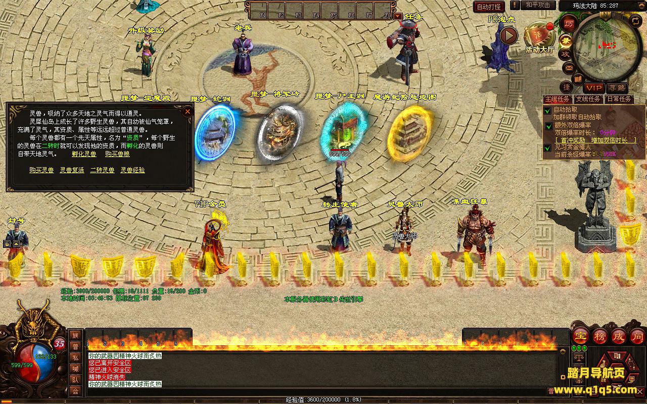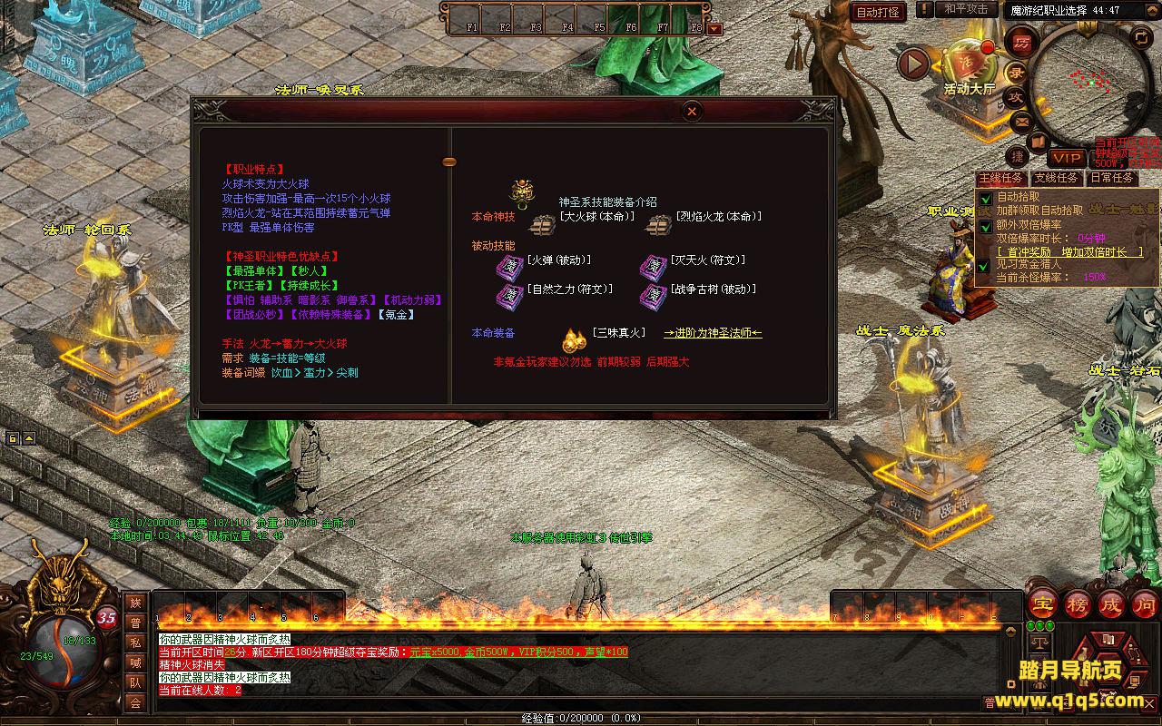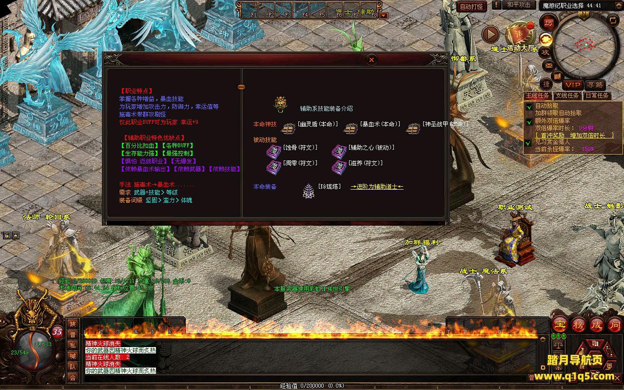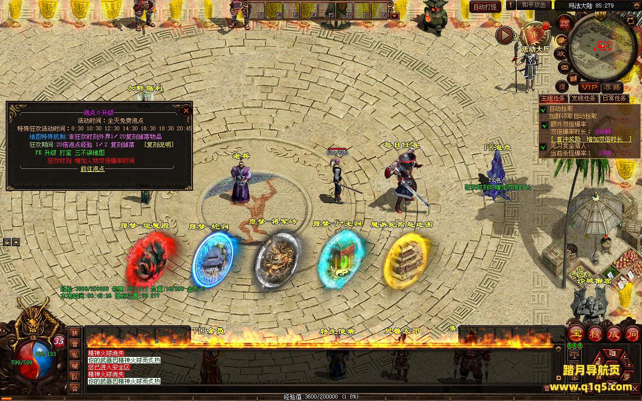 下面我们进入游戏测试看看游戏里的功能。好了,其他功能就自行测试吧。更多的游戏资源可以访问www.q1q5.com下载,我们每款游戏资源均单独制作了独立的视频架设教程,让小白也可以快速上手游戏架设,快来体验自己做GM的乐趣吧!