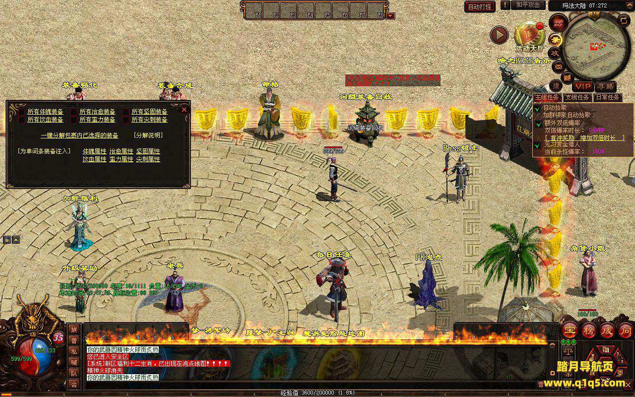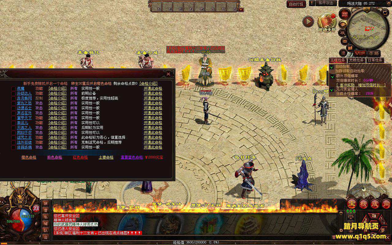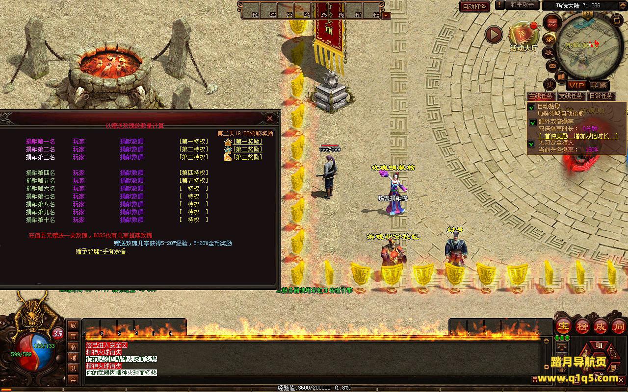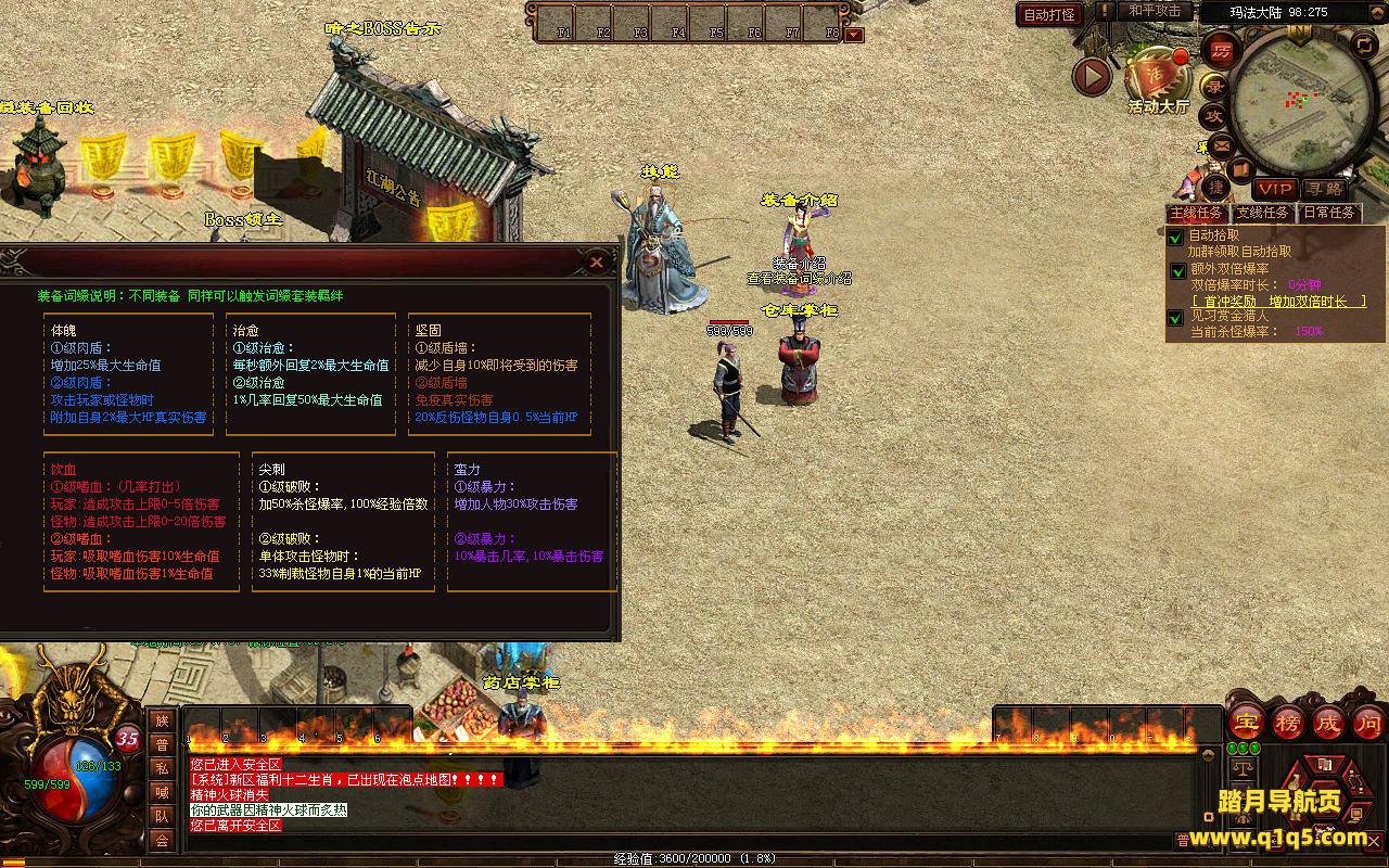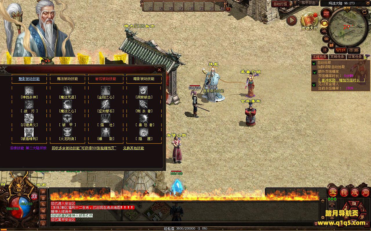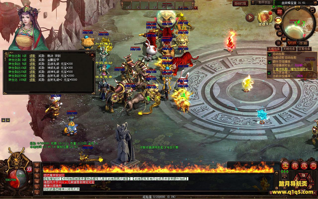 下面我们进入游戏测试看看游戏里的功能。好了,其他功能就自行测试吧。更多的游戏资源可以访问www.q1q5.com下载,我们每款游戏资源均单独制作了独立的视频架设教程,让小白也可以快速上手游戏架设,快来体验自己做GM的乐趣吧!