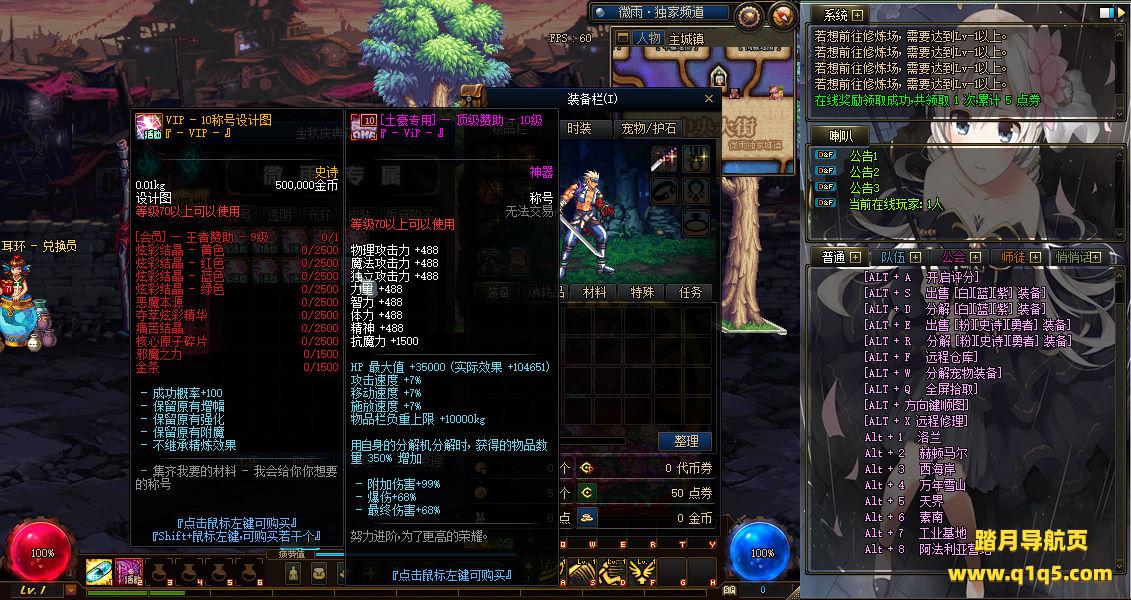 经典冒险闯关DOF端游【70微雨精修定制版】最新整理学习版本pvf+客户端+等级补丁