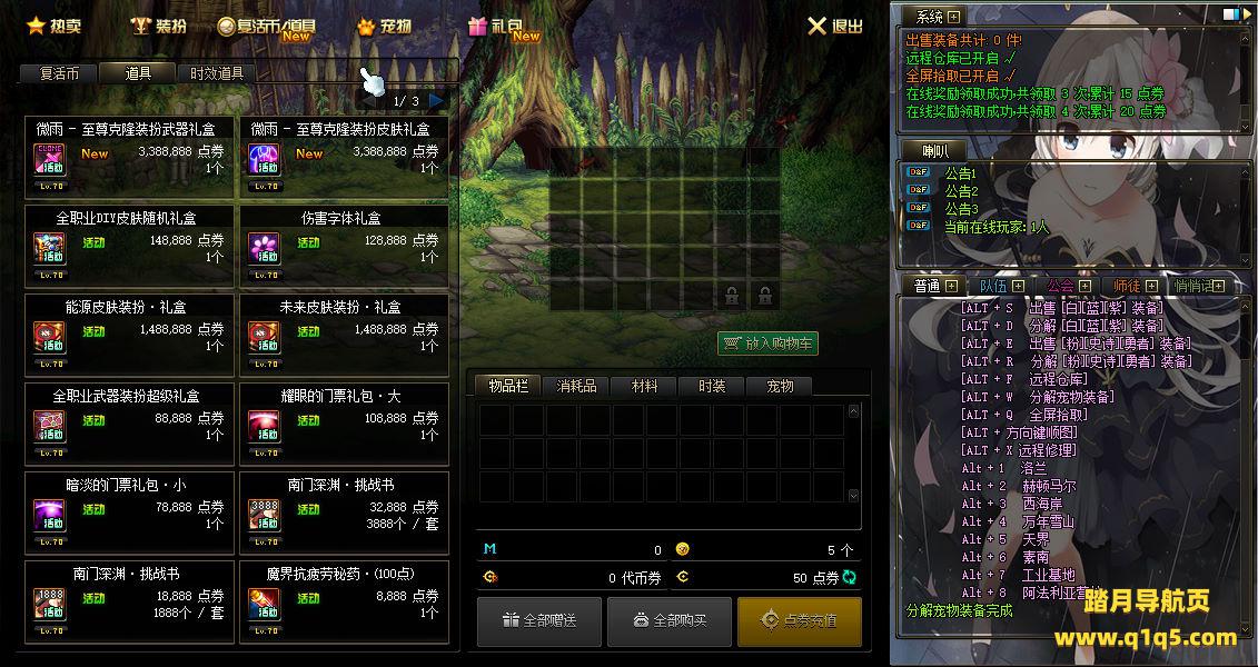 好了,其他功能自行测试吧。更多的游戏资源请访问www.q1q5.com下载,我们每款游戏资源均单独制作的有独立的视频架设教程,让小白也可以快速上手游戏架设,体验做GM的乐趣!
