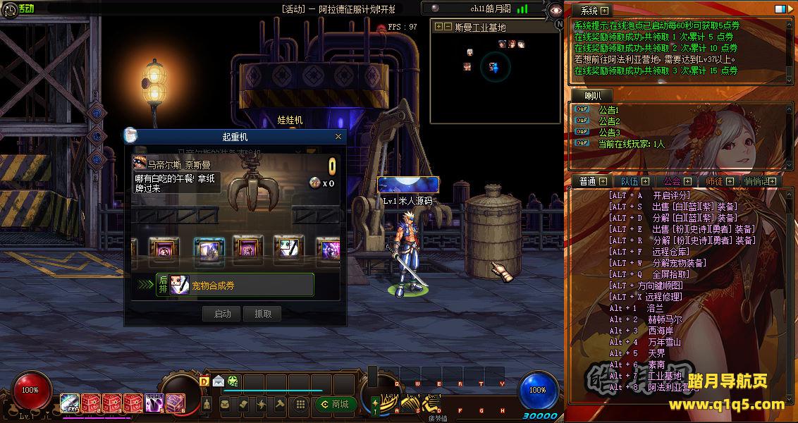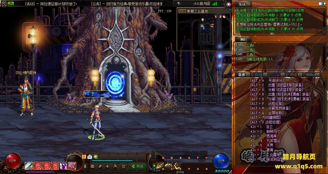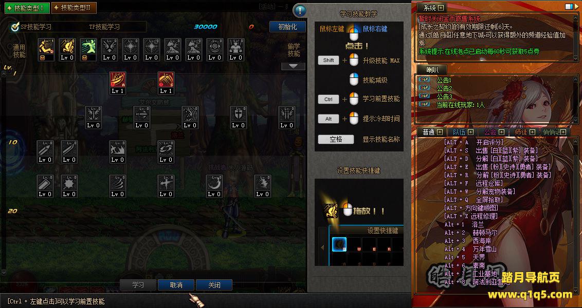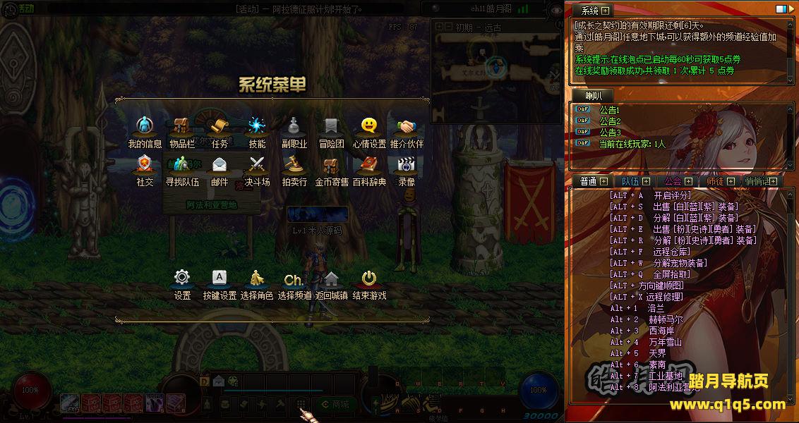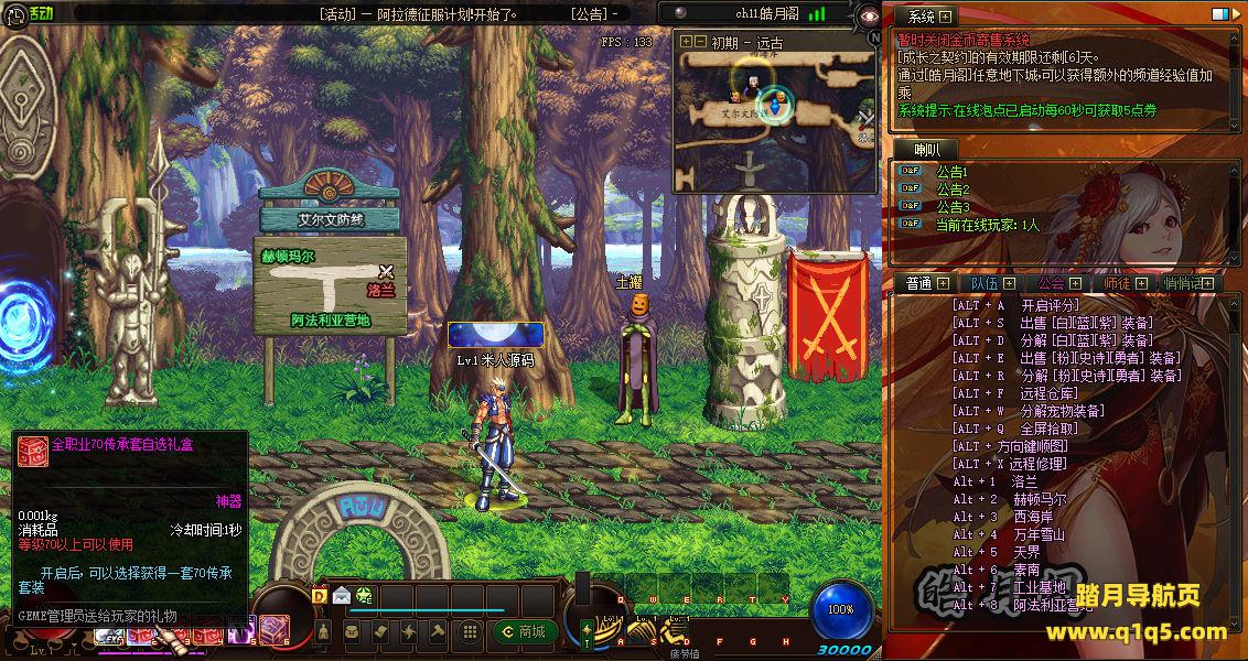 下面我们测试下游戏里的功能。好了。其他功能就自行测试吧。跟多的游戏资源请访问www.q1q5.com下载,我们每款游戏资源都单独制作的有独立视频架设教程。让小白也可以快速上手游戏架设。快来体验做GM的乐趣吧!