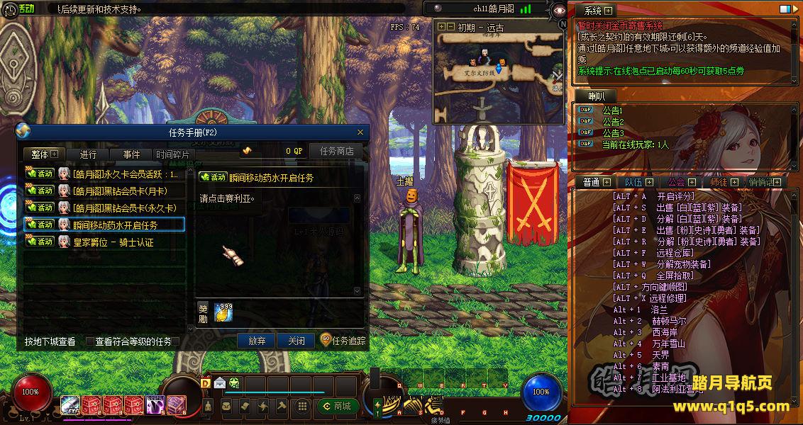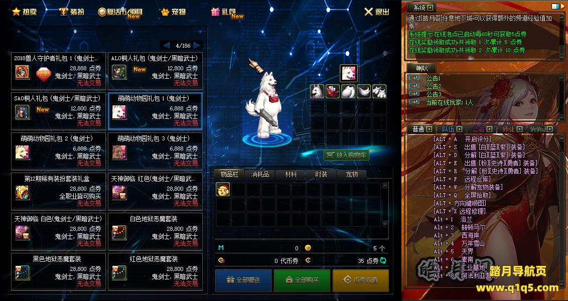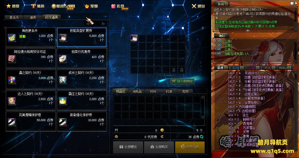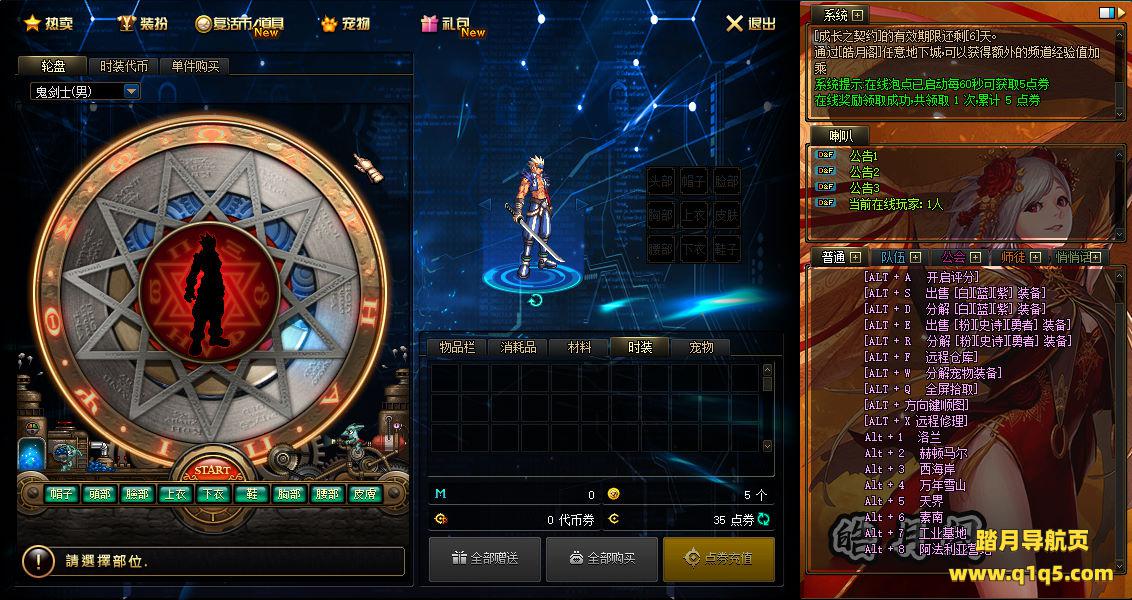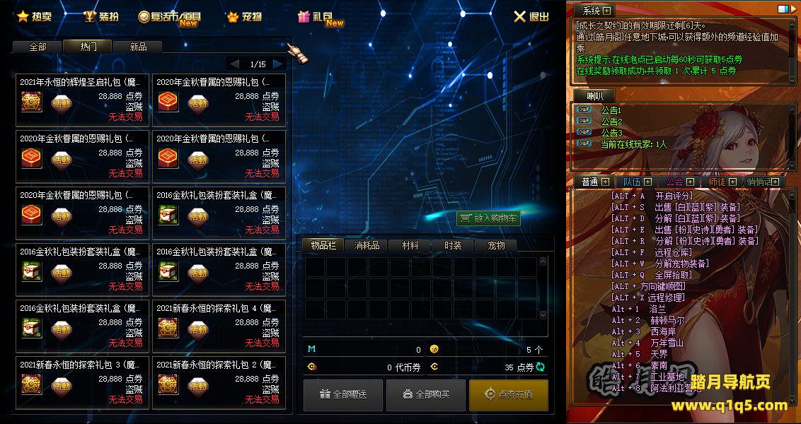 下面我们测试下游戏里的功能。好了。其他功能就自行测试吧。跟多的游戏资源请访问www.q1q5.com下载,我们每款游戏资源都单独制作的有独立视频架设教程。让小白也可以快速上手游戏架设。快来体验做GM的乐趣吧!