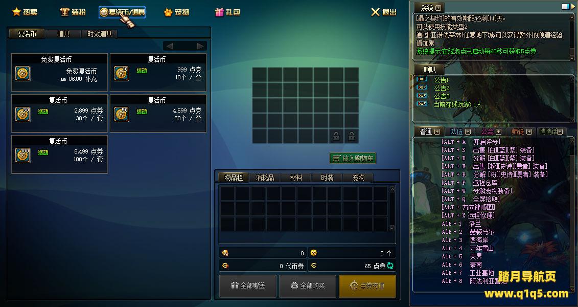 可以了,下面我们测试下游戏里的功能看看。好了,其他功能就自行测试吧。更多的游戏资源可以访问www.q1q5.com下载,我们每款游戏资源均单独制作了独立的视频架设教程,让小白也可以快速上手游戏架设,快来体验自己做GM的乐趣吧!