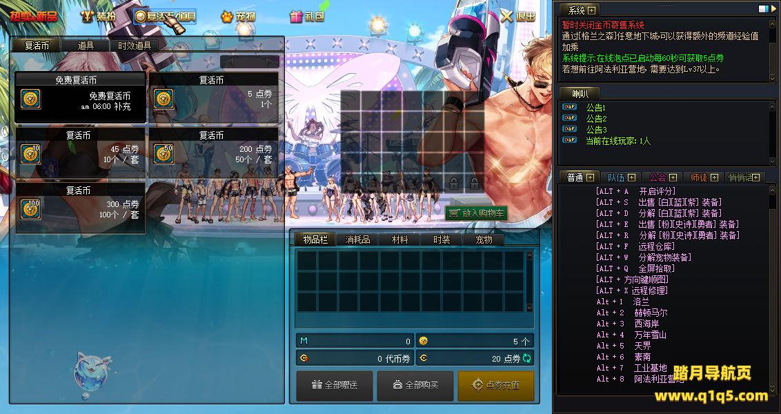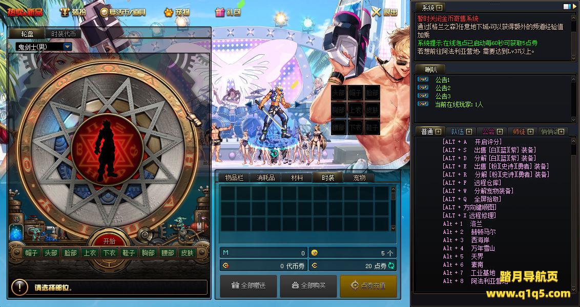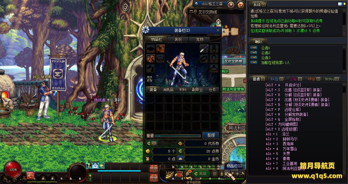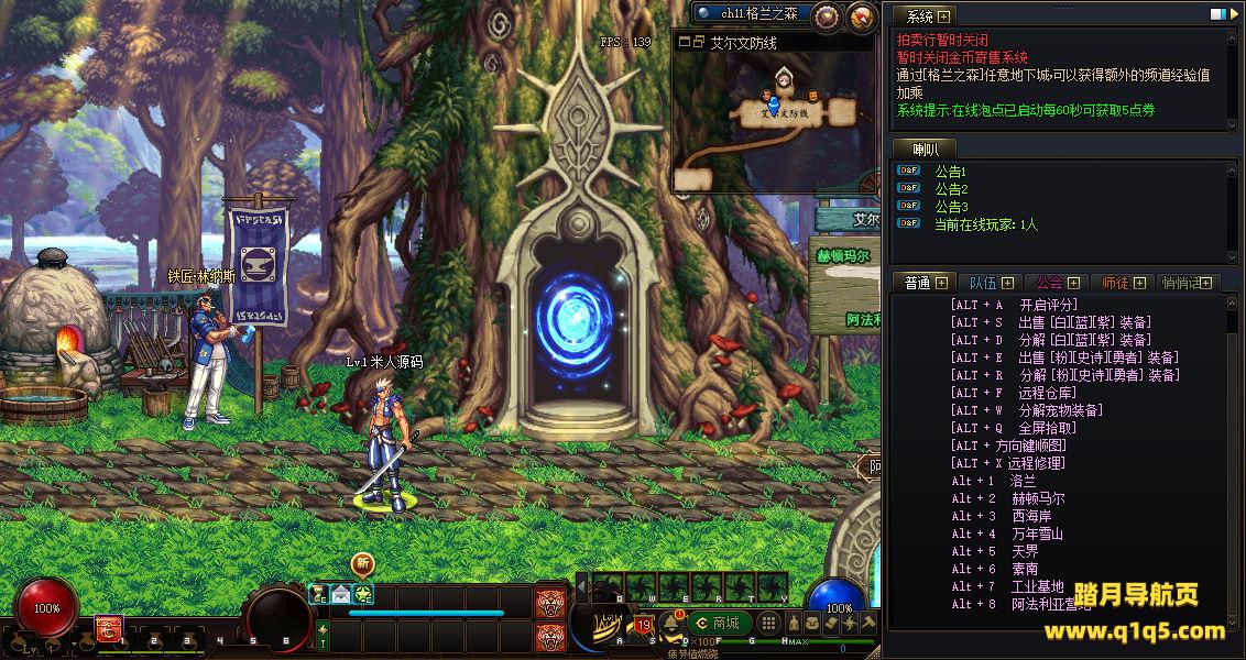 然后我们在打开登陆器进入游戏试试看。好了,其他功能就自行测试吧。更多的游戏资源可以访问www.q1q5.com下载,我们每款游戏资源均单独制作了独立的视频架设教程,让小白也可以快速上手游戏架设,快来体验自己做GM的乐趣吧!